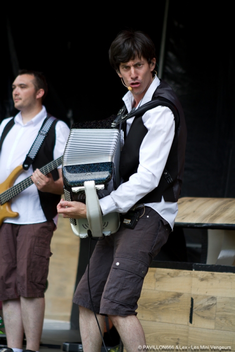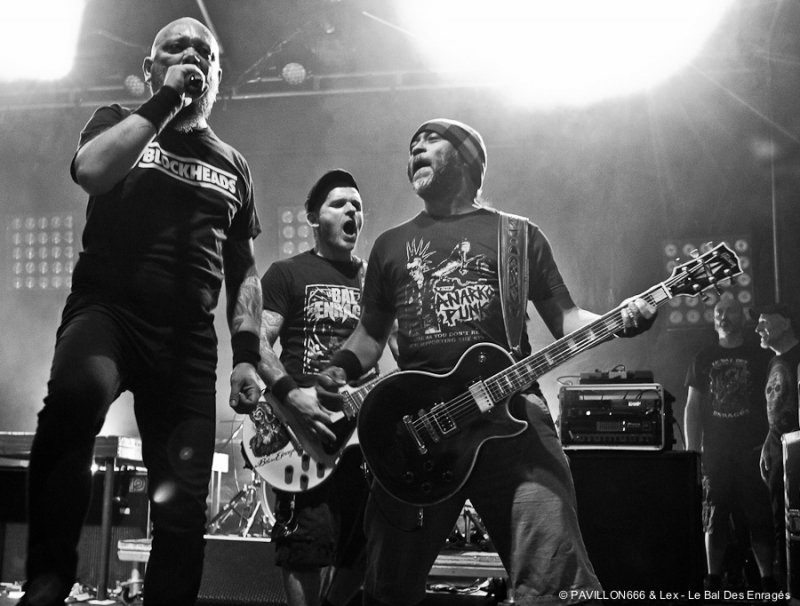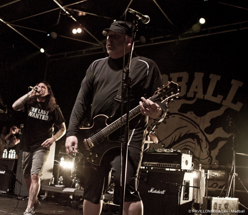Il y a encore très peu de monde : les bénévoles, quelques photographes et les quelques spectateurs venus spécialement voir les Mini Vengeurs. Qu’à cela ne tienne, les Mini Vengeurs ne se laissent pas décourager pour autant. Ils jouent pour chacun des enfants, petits et grands, comme s’ils ne jouaient que pour chacun d’eux individuellement. Leurs chansons sont marrantes et entrainantes. Leur générosité et humour donne le ton pour le reste de la journée pour ce festival, joyeux et détendu, tenu dans un très joli lieu arboré, les remparts de Longwy, où les artistes connus et moins connus se baladent parmi les spectateurs en toute simplicité pour profiter du festival comme tout le monde. Le groupe suivant est une agréable surprise. Snap Border est un groupe de Nancy qui allie rock, metal avec un peu de groove. Le chanteur, Franck, a une voix puissante et douce à la fois qui ne laisse pas indifférent (n’est-ce pas mesdames?) et qui fera certainement encore parler d’eux. Arrive le tour de Seyminhol qui pour bon nombre n’est plus à présenter de par ses (presque) 25 années de bons et loyaux services dédiés au métal. Ils nous balancent un power heavy épique teinté de pointes symphoniques. En toute impartialité je peux dire que leur musique est puissante, mélodique et juste. Tout est techniquement irréprochable et force l’admiration, que l’on aime ce style musical ou pas. The Last Wanted est un groupe belge dont le style, à la base purement punk rock qui a évolué vers le hardcore old school, m’a beaucoup plu. D’ailleurs, ils passent à 14h, au moment où les festivaliers commencent à entrer, et c’est à partir de là que l’ambiance prend une tournure plus festive. Le groupe est sympathique et sait mettre l’ambiance. Le public se réchauffe tout doucement. Heureusement d’ailleurs, car Oil Carter, qui devait suivre, doit malheureusement déclarer forfait, suite à une panne à 200 bornes de la destination finale. Dommage. J’espère que j’aurai l’occasion de vous parler de ce groupe dans une autre chronique à l’avenir. Burning Heads doit donc meubler et nous fait le plaisir de jouer un peu plus longtemps. Ce groupe de punk rock qui n’est plus tout jeune, puisqu’ils se sont formés en 1988 et ont tourné avec les plus grands (comme Noir désir par exemple), joue toujours avec une grande simplicité et passion, ce qui les rend fort sympathiques. Leur set commence sérieusement à mettre le feu à ce festival. On change tout à fait de style avec Nitrogods, ce groupe allemand de hard rock n’ roll qui s’inspire de Motorhead. Quand ils commencent à jouer, on cherche les motos…tant leur musique respire de pots d’échappement et de cheveux dans le vent. Du ‘No bullshit Rock ‘n roll’ comme ils le définissent eux-mêmes. Inspector Cluzo est un groupe de rock formé en 2008 par deux gentlemen farmers originaires de Mont-de-Marsan. Deux virtuoses de la musique qui ont un style bien à eux. Ils ne savent pas trop comment ils ont atterri dans un festival de metal, mais ça les fait bien rire et ils ne manquent pas d’humour. Ils jouent du groove, du funk, du rock…en fait, tout ce qui leur passe par la tête. Certains parlent même d’une rencontre entre Rage against the machine et les Jacksons. Rien n’est prédéfini, rien n’est écrit, tout est improvisé. Et c’est génial. Les deux virtuoses font tout eux-mêmes et tiennent à leur indépendance. C’est le genre de rock qu’on a envie d’entendre et de soutenir. D’ailleurs, j’écoute leur dernier album, Rockfarmers, alors même que je vous écris. Lorsque The Inspector Cluzo quitte la scène, la foule est chaude et fin prête pour le charisme et l’énergie de Dagoba. Le groupe n’est plus à présenter et sa popularité ne fait aucun doute aux vues de l’enthousiasme du public. Tout le monde se réveille, circle pit et pogos, et la sécurité s’affole. Mais c’est bon enfant, et comme le reste du festival, que du bonheur. Depuis le mois de juin, la formation du groupe a changé et les deux nouveaux membres s’y intègrent parfaitement. Le show est bien rôdé et professionnel et Shawter a une relation très complice avec son public. Shawter a beau être charismatique, rien n’est plus charmant que la présence sur scène de Cristina Scabbia (comment ça « Pas très objectif de ma part » ?!). Le groupe joue de nombreux titres de son avant dernier album, Broken Crown Halo, et du nouveau Delirium dans lequel le talent vocal de la chanteuse est encore plus mis en avant. Durant le concert, Cristina nous présente le nouveau guitariste officiel du groupe, l’excellent Diego Cavalotti, et en profite pour nous faire l’annonce d’une tournée européenne à la rentrée. Fans de Lacuna Coil, tenez-vous prêts ! Si la sécurité est déjà toute ébouriffée de son aventure avec Dagoba, elle n’est pas du tout, mais alors pas du tout préparée à Madball…les photographes non plus d’ailleurs. Prendre en photo le chanteur de ce vieux groupe de hardcore New Yorkais, Freddy Cricien, revient à essayer d’attraper une puce avec des baguettes chinoises. Ils ont beau de ne plus être tous jeunes, quelle énergie ! Un show qui annonce le chaos, mais qui reste tout de même très propre et carré. La foule est en délire et n’a pas d’autre choix que de suivre l’enthousiasme débordant de la scène. Preuve que le public présent au festival était là surtout pour la scène punk et hardcore. La journée se termine avec l’excellent Bal des Enragés. En dehors d’un super groupe, c’est juste un groupe de 18 copains (Tagada Jones, Lofofora, Damny de la Phaze, Vx de Punish Yourself, Stéphane Buriez de Loudblast…), qui s’éclatent sur scène. Les artistes font la queue dans les coulisses, et entrent en alternance. C’est l’Orchestre du Splendide, du cabaret, version métal et c’est diablement efficace ! Le groupe enchaine les reprises et o