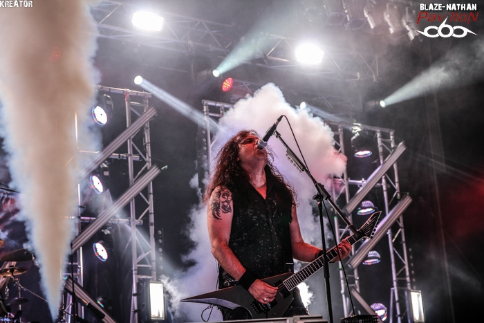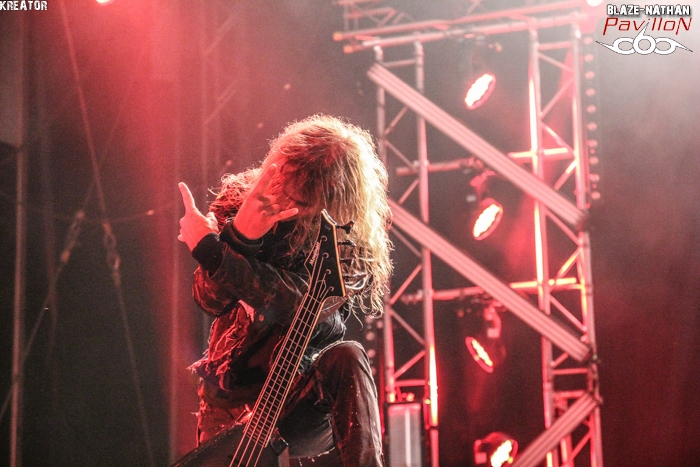 Démarrage du « shooting » devant la mainstage à 14heures45 avec le hard n’heavy de BOMBUS en provenance de Göteborg en Suède bien sûr, mais, pas pour du death-mélodique (sic). Le quatuor nous offre du bon vieux hard aux ambiances heavy-metal avec de bons riffs accrocheurs ma foi, mais sans plus. Et puis au fil de la set-list la voix du frontman semble se fatiguer, alors ce sera dur a écouter, bof, bof, bof ! Sorry les gars. Direction la seconde scène, pour voir les parisiens de NEMOST (faute avouée est à moitié pardonnée pour les habitants de paris !). Et bien leur death n’est pas mal du tout en tous cas, bonne surprise. Deux albums riches au compteur, alors vont-ils concrétiser sur la scène du metaldays ce mercredi, Oui, car le chanteur tient la route dans différents registres avec une facilité déconcertante, les musiciens lâchent des riffs d’une rare efficacité et nous remarquons bien sûr la variété de leurs compositions bien travaillées au demeurant qui sortent de l’ordinaire avec un penchant progressif notoire. Bref, ce fut pour moi une découverte très intéressante. Nemost en live accroche et nous lui souhaitons que du bons pour l’avenir. Retour à la mainstage sous les gouttes de pluie afin d’apprécier le grind/gore/death des belges d’ABORTED qui semblentn avoir la frite (facile celle là !). Svencho a su s’entourer depuis quelques années d’un nouveau line-up qui assure la continuité brutale de la boucherie musicele de ce combo sans concession. Avec un nouvel album sanguinolent à l’artwork de couverture remarqué, le fameux « retrogore », Aborted appuie toujours là où ça fait mal et par moment nous pensons bien sûr à leurs amis de BENIGHTED. Mais les belges marquent leur territoire avec des lsoli techniques tout en ettant accrocheurs et des accelerations époustouflantes. Les grognements de svencho sont toujours aussi impressionants et l’équipe actuelle assure de plus en plus tous riffs dehors. Alors Aborted semble avoir actuellement le vent en poupe car après tant d’années, la sauvagerie des débuts est toujours présente, en mieux pourrait-on dire. Aborted ne lâche rien donc et nous découpe la cervelle sans problème dans son abattoir archaïque (sic). Ah, voilà maintenant sur cette mainstage un groupe pionnier du mélange hardcore et metal (je n’ai pas dit metalcore). Voici les vétérans de PRO-PAIN avec leur indéboulonnable leader Gary Meskil qui tient le combo à bout de bras depuis 25 années déjà. Malgré les changements, de line-up, nombreux, le groupe a su conserver intacte un son qui lui est propre et qui est reconnaissable entre mille avec notamment une rythmique implacable qui vous colle contre les murs et un mur de guitare à rapprocher du thrash de nos aïeux. Avec 17 Albums au compteur, le groupe n’a jamais failli à son devoir métallique et son penchant hardcore burné et revendicatif. Pro-pain est donc un modèle de longévité et sa recette gagnante fait toujours fureur en dérapant de ci et de là vers le thrash donc mais aussi vers le punk. Et cet après-midi en Slovénie les New-Yorkais ont envoyé la sauce sans bavure pour notre plus grand plaisir, un grand moment tout simplement. A 17 heures 50, DYING FETUS prend la suite sur la mainstage. Ce trio de death/grind du maryland emmené par le charismatique chanteur/guitariste John Gallagher nous envoie toujours des soli travaillés et ciselés, des riffs violents amplifiés par un duo basse-batterie de tueurs. C’est donc toujours avec un plaisir morbide que nous assistons à leur démonstration implacable de maitrise dans un style qui ne fait pas dans la dentelle vous l’aurez compris. Je n’avais pas prévu de me rendre vers la sconde scène, mais une fois devant, j’ai décidé de shooter et de chroniquer ce groupe appelé GLORYFUL. Alors qu’est-ce donc, on dirait du heavy, mais oui, c’est du heavy-metal avec un frontman au look punk-hardcore en provenance de germanie. Sur scène règne une bonne énergie et les teutons envoient la sauce bien comme il faut. Et pourtant il y a peu de monde devant la scène, pourtant il est 18heures et l’heure de la sieste à la plage est passée, dommage ! Oui dommage car peu de groupes osent se lancer dans ce style épique ou, règnent (régnaient) Manowar ou encore Running Wild. Alors groupe à revoir dans une meilleure ambiance, ce n’est pas de votre faute les gars ! A 19 heures 15 sur la grande scène c’est l’heure du bon vieux rock/blues burné avec GRAVEYARD qui surfe sur la vague revival actuelle comme par exemple Blues Pills. Ces Suédois mine de rien ont déjà sous leurs bras quatre albums enregistrée en huit années, dont le dernier « Innocence et Decadence » paru l’an dernier. Au menu, du hard-rock teinté de blues avec bien entendu pas mal de groove. Alors, on se laisse envoûter par ces fils spirituels de Led Zep qui ont tout comprit au filme des 70’s, et le public semble adorer, pourquoi pas ! Surprise à 19 heures sur la seconde scène avec ROSSOMAHAAR, groupe de folk/black/thrash qui compte en son sein les musiciens russes d’Arkona. Et pourtant, cette formation existe depuis une vingtaine d’années et sa musique est plutôt sombre même si un certain côté symphonique à la Dimmu Borgir se fait jour (nuit pardon !). C’est le genre de groupe underground qui peut facilement devenir culte mais sur scène en festival le rendu n’est pas aussi prenant qu’en album. A voir et écouter dans la nuit d’une salle de concert par exemple. Les pères fondateurs du grindcore NAPALM DEATH vont investir à 20 heures 40 la mainstage devant un public très présent et conséquent. En effet la bande à Barney a le don de rassembler à ses concerts, métalleux extrêmes, death-métalleux, punks et « coreux » de tous poils pour des sets incroyables d’efficacité et d’engagement. Et ce soir à Tolmin c’est la même, la même énergie, la même puissance dénonciatri