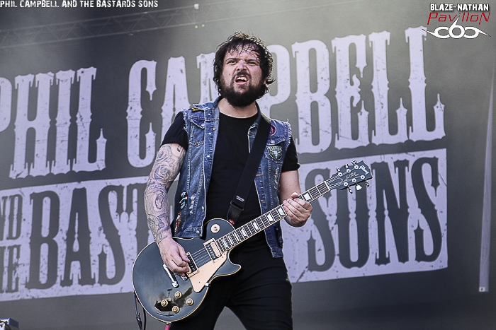 Une heure plus tard, sur la même scène, ce sont PHIL CAMPBELL & THE BASTARDS SONS qui nous envoient leur hard-rock. Phil et ses trois fils + Neil Starr au chant, c’est une fine équipe british pour du rock, du hard-blues, et ça marche ! Bien sûr papa Campbell (ex-Motörhead) n’est plus à présenter dans ses œuvres à la guitare et à la composition. Il a su s’entourer de sa famille pour ce projet labellisé rock n’roll. Le résultat est très bon en live, on apprécie fortement je vous le dis et personne je pense ne me contredira.