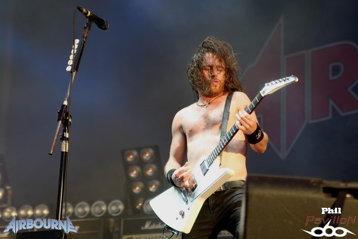 La renommée scénique des Australiens n'est plus à faire. Malgré un son poussif sur le démarrage, vite revenu dans l'ordre, le groupe met un vent de panique, une tempête sur Clisson. Sans artifices, sans extravagances, le quartette envoi les brûlots à la force des poignets et des gimmicks maintes fois usités. Bien que ces derniers soient connus, attendus et surtout peu inattendus, on a plaisir de voir Joel O'Keeffe grimper sur la structure de scène , guitare en bandoulière, de le voir ouvrir des canettes de bière sur son crâne, de le voir headbanguer comme ses compères. Durant tout ce set, seules les compositions prennent le dessus de toutes expressions scéniques. Sans retenues, en toute modestie et humilité, les musiciens délivrent une prestation riche, intense et captivante. Airbourne est prêt pour la relève.