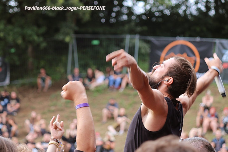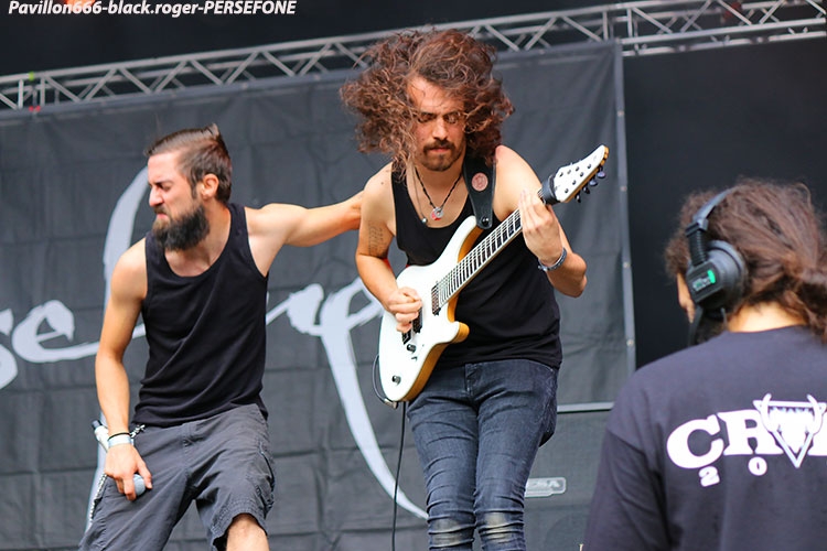 Grand groupe dans un petit pays, voici PERSEFONE de la principauté d’Andorre située entre la France et l’Espagne. Leur death/ prog va faire mouche avec la présence incroyable du chanteur Marc Martins, mais pas que. En effet que dire du travail précis des instrumentistes qui arrivent à faire passer leurs tricotages musicaux inspirés qui rallient sans problème les fans de death-mélodique tout court. Prestation mouvementée et haute en couleurs progressives, nous avons passé un excellent moment en compagnie de ces Andorrans, la classe tout simplement.