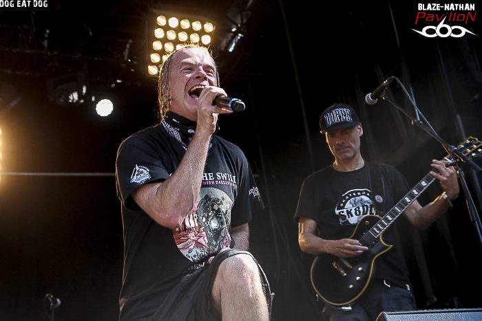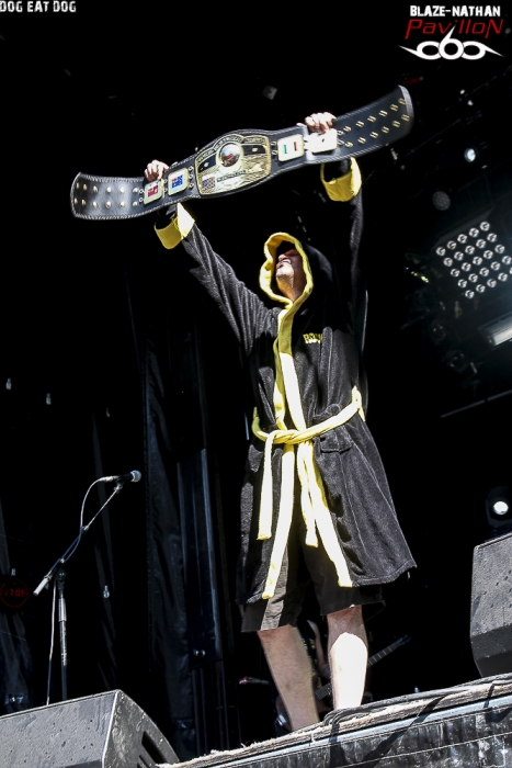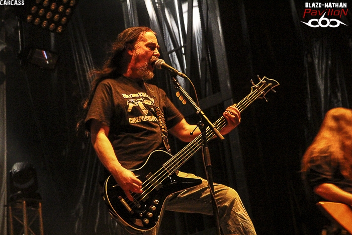 Arrivée en retard sur les lieux, l’ équipe de pavillon666 n’a pu voir les prestations des deux premières formations à savoir BUY JUPITER et GOATFATHER, mais ce n’est que partie remise pour ces groupes locaux. SVART CROWN A 13 heures 35, ce sont les brutes frenchies de SWART CROWN qui ouvrent le feu sur un public déjà conséquent. Rien de tel que du bon black/death pour accélérer la digestion et l’on sait que nos amis sudistes ne vont pas décevoir, c’est certain. En ce moment ce quatuor qui tourne afin de promouvoir son dernier album « abreaction » gravit un par un les échelons d’une notoriété bien méritée, en France mais aussi au niveau Européen. JB le Bail, maitre à penser donne le ton d’un metal aux furieuses accélérations, aux passages pachydermiques et aux envois tribaux. Alors fatalement nous ne pouvons qu’adhérer à leur démonstration de force, mais aussi de créativité. Résultat un excellent show donné ce Dimanche au Sylak qui a mis tout le monde d’accord. REGARDE LES HOMMES TOMBER Nous continuons dans l’excellence avec le set de REGARDE LES HOMMES TOMBER. Les nantais nous offrent un certain post-black metal d’une rare intensité, d’une rare originalité et épique à souhait. Remarqués lors de la sortie de leur premier album éponyme de 2013, ils enfoncent le clou avec le second intitulé « exile ». A base d’une certaine lourdeur de blasts et de désespoir ils vous tiennent à la gorge et ne vous lâchent plus, comme cet après- midi au Sylak avec une certaine quête de l’infiniment dark et l’on aime forcément. Comment voulez-vous faire autrement ? ABORTED A 16 heures 45 les Belges d’ ABORTED ouvrent leur « archaic abattoir » afin de nous présenter leur nouvel enregistrement « retrogore », mais pas que. La bande à Svencho a toujours la frite (sic) et va durant 40 minutes nous retourner la cervelle et le reste à l’aide de son gore-grind-death brutal et sans concession. N’ayant pu apprécier pleinement leur set au printemps dernier lors du show en ouverture de Kreator à Grenoble, je suis pleinement satisfait ce Dimanche. Ne manquait plus qu’un duo avec Julien frontman de Benighted, et ce fut chose faite, aargh ! DOG EAT DOG Le chien emblème du Sylak n’a qu’à bien se tenir s’ il ne veut pas être mangé par les Américains de DOG EAT DOG. Ces New-Yorkais vont créer un aparté dans cette affiche du Dimanche en nous proposant un show définitivement différent de tout le reste. Au menu du rap-metal-hardcore-hip-hop qui va plaire, ou pas, au public gavé de brutalité depuis ce midi. En effet leur fusion bien admise depuis plus de 20 ans est bien particulière, mais au final après avoir hésité un moment, je suis resté devant la scène en me surprenant moi-même, peut-être le saxo… Bref ce show bien chaud à fait mouche aujourd’hui, il fallait oser. TROLLFEST Place maintenant au « true norwegian balkan metal » avec les inénarrables nordiques d’Oslo. Vous avez aimé leur dernier opus en date « helluva », alors vous allez apprécier leur show oh combien festif aujourd’hui au Sylak. D’ailleurs le public ne s’y est pas trompé et a fait largement la fête avec eux au son des guitares bien sûr mais aussi du saxo et de l’accordéon, le folk-metal avec orchestre carnavalesque, ça marche ! CROWBAR Plus sérieux le sludge boueux de Louisanne avec à sa tête l’indéboulonnable guitariste/chanteur Kirk Windstein, CROWBAR va maintenant nous présenter un set habituel de gros riffs bien pesants, bien écrasants mais toujours bien inspirés. Alors les amateurs dégustent une nouvelle fois et les autres écoutent cette démonstration sortie tout droit de la Nouvelle Orléans. BRUJERIA Nos mexicains préférés du death-grind, BRUJERIA, sont maintenant là devant nous, machette au côté de l’un des deux chanteurs et démarrent le set avec leur fameux titre « brujerizmo ». Toujours la même puissance dans les riffs, chant thrash/death guttural avec provocations incessantes antireligieuses notamment. Mais le public répond peu, dommage ! Vus ce printemps à Genève il y avait un échange de bon aloi en Mexicain devant la scène ce qui avait permis d’instaurer une bonne ambiance que je n’ai pas retrouvée ce soir au Sylak. Le final avec « marijuana » et les coups de machette sur les retours de scène ont un peu rattrapé le coup. ABBATH Entrée spectaculaire d’ABBATH en scène avec le craché de feu annonciateur d’une prestation très attendue de l’ex-Immortal. Le trio de Bergen devenu quartette en live va durant une heure de set déployer tout son art noir à la Immortal et dark-metal à la Abbath. Une certaine continuité pour le chanteur/guitariste à la voix reconnaissable entre mille. Le Norvégien Abbath de son vrai nom Olve Eikemo va encore une fois nous offrir un show incontournable et unique. Certains aiment, que dis-je adorent, d’autres n’apprécient pas sa présence en le traitant notamment de grotesque. En ce qui me concerne j’ai encore dans la tête les images de sa prestation donnée dernièrement au Metaldays en Slovénie et je n’aurai pour rien au monde raté celle du Sylak, une énorme prestation, une prestation « immortelle » tout simplement. CARCASS Qui pouvait le mieux clôturer cette soirée du Dimanche et du festival en même temps ? Bien évidemment c’était CARCASS. Carcass le légendaire groupe de Liverpool (UK) avec les non moins légendaires chanteur/bassiste Jeff Walker et guitariste Bill Steer. Alors ce soir place au death-grind de nos amis britishes qui avaient remis le couvert en 2012 après la séparation en fin des 90’s. Ici tout n’est que finesse chirurgicale dans des envois véloces, rapides, hargneux et agressifs aussi. Alors cette petite heure passée en leur compagnie ne fut qu’un déluge de bonheur pour tous les métalleux extrêmes, et les autres pourquoi pas ! Toujours un must en live, on aime bien entendu. Ainsi se ter