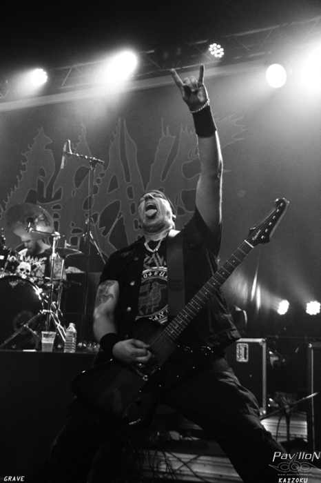 C'est Shotgun Logic qui va lancer cette seconde édition avec leur thrash metal des familles. Existant depuis un an dans le paysage musical lyonnais, Shotgun Logic offre un voyage dans le temps et nous ramène à la belle époque des coiffure bouffante et frisées et des jean déchirés près du corps. Ce qu'incarne parfaitement Kim, le chanteur avec sa voix puissante qui nous plonge dans l'univers de Megadeth, Judas Priest ou encore Kreator, mais avec une touche moderne de la jeunesse qui en veut. Le tout est parfaitement en place. Arpentant la scène entre ses camarades Kim a l'habitude d'en fouler et semble habité par l'âme de ses prédécesseurs dont Shotgun Logic est le digne héritier. Première découverte alléchante donc, le festival démarre sur les chapeaux de roue. On reste ensuite dans le vaste paysage musical lyonnais mais on part sur du melodic death metal. Le groupe créé par Olivier Girard, Aesmah il y a presque 10 ans se balade dans un univers atmosphérique et épique qui appelle l'émotion, le voyage vers un monde onirique. Le tout teinté de groove énergique qui prend aux tripes. Des changements de rythmes qui font penser à une influence progressive, ce qui rend ce set d'autant plus intéressant musicalement. On aura même droit à un solo de batterie entre deux chansons, ce qui est malheureusement assez rare sur ce genre de scène. Bref, Aesmah réussissent à mettre leur histoire dans leurs compos et à donner de l'originalité au genre. En attendant la sortie prochaine de leur dernier album, ce fut encore une belle découverte pour moi. Les festivaliers se font de plus en plus nombreux au fur et à mesure que l'heure avance. On s'éloigne un peu de Lyon en passant par Mâcon avec le fier groupe de symphonic black death, Sangdragon. Oyez, oyez la symphonie épique que nous jouent ces troubadours sortis tout droit d'un Moyen-Âge onirique. Le décor est planté et toute la panoplie est déployée. Peintures guerrières, armure de cuir, épée brandie au-dessus du public, chœurs lyriques, instruments d'un autre temps. Une histoire contée par Vincent Urbain et sa bande, à cheval entre cet autre temps, cet autre monde, et le présent dans lequel nous ramènent des riffs métal puissants. Un univers tout entier à portée d'un large public. Un mélange qui fonctionne plutôt pas mal tant qu'on se concentre sur le décorum épique et que le groupe reste dans le domaine de la composition et dans cet univers qui lui est propre. Une reprise aléatoire du générique d'une série épique très très en vogue depuis quelques années clôturera ce set en laissant un goût d'inachevé. Malgré tout les Mâconnais ont réussi à nous embarquer dans leur épopée et à nous faire voyager. La violence des guerriers des temps passés n'a rien à voir avec la violence des guerriers contemporains de In Arkadia. Un vent de fureur s'abat sur la scène du Trait d'Union. Les Lyonnais, forts d'un public fidèle et d'une énergie à faire pâlir une tornade enflamment la salle dès les premières notes avec leur blackcore ravageur. Je n'avais pour ma part encore jamais vu le tank In Arkadia en action mais leur prestation est à la hauteur de leur réputation. Une machine bien huilée qui démarre au quart de tour et ne s'arrête qu'une fois le set terminé et le public en furie. Alix, Mike, Mirfin, Jiben, Boti et Florent savent y faire, ils ont l'habitude de la scène et ça se sent. Ça gueule, ça saute, ça appelle au pogo, le tout bien ficelé, carré et travaillé. Le duo de chanteurs fonctionne parfaitement et donne encore plus de substance aux compos du groupe qui en est à son 3ème album. Lions est sorti en 2017 et rien que le nom de l'album les caractérise parfaitement ! Il n'y a pas de doute que In Arkadia fait la fierté du public lyonnais et qu'après avoir ouvert pour ne nombreux groupes tels Napalm Death, foulera de grandes scènes en tête d'affiche d'ici quelques temps. Comme les organisateurs de ce beau festival ne s'arrêtent pas à la frontière de l'hexagone dans leur programmation, les italiens de Necrodeath. Un des groupes pionnier du black/thrash en Italie qui a traversé les décennies depuis les mid eighties nous offre toute sa folie et son énergie à réveiller les morts dont ils parlent tant ! La géométrie variable du groupe et le temps n'ont en rien entaché la qualité de la musique. En tournée pour présenter leur douzième album, « The Age Of Dead Christ », les italiens nous montrent qu'il savent naviguer entre thrash et black avec dextérité et plaisir. Et du plaisir on en prend en les écoutant et en les regardant car l'ambiance sur scène, malgré le fil rouge macabre de leurs chansons, et vraiment joviale et entraînante. Necrodeath n'a plus rien à prouver, ils envoient et profitent à fond pour notre plus grand ravissement. On franchi à nouveau les Alpes pour se retrouver du côté de Grenoble avec Nightmare. Né en 1979 le groupe a vécu moult péripéties et changements, avec une pause entre 1987 et 1999 et semble stabilisé depuis 2015 où la chanteuse Maggie Luyten et le batteur Olivier Casula ont rejoint les rangs. Entre le heavy et le power metal, le groupe navigue et nous régale de mélodies enivrantes et pêchues. Ayant souvent du mal avec les voix féminines dans le métal (goût totalement personnel), il n'en est absolument rien ici. La surprise de la puissance vocale et de la présence scénique incroyable de Maggie Luyten est totale et m'embarque instantanément. Une énergie épique et positive se dégage du côté de la scène pour se transmettre partout dans le public et c'est bon. Nightmare est un superbe exemple de groupe qui a ressuscité de ses cendres pour revenir encore plus beau et plus fort. Encore un groupe de qualité dans ce festival.. Et ce n'est pas fini.. On enchaîne ensuite avec Loudblast, un des groupes pionniers du death français formé en 1985 (la meilleure année en toute objectivité). Les Lillois 