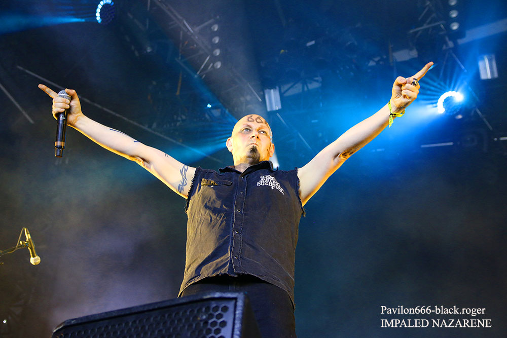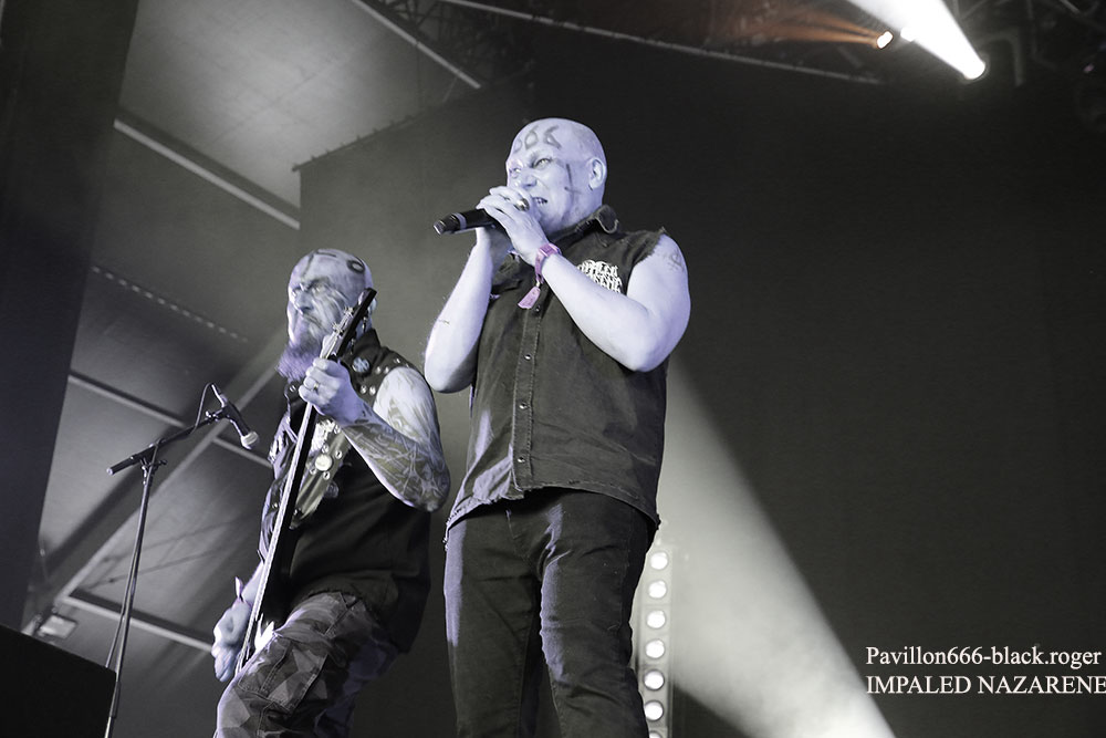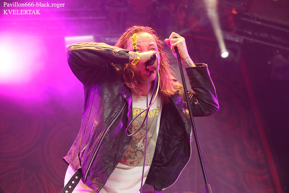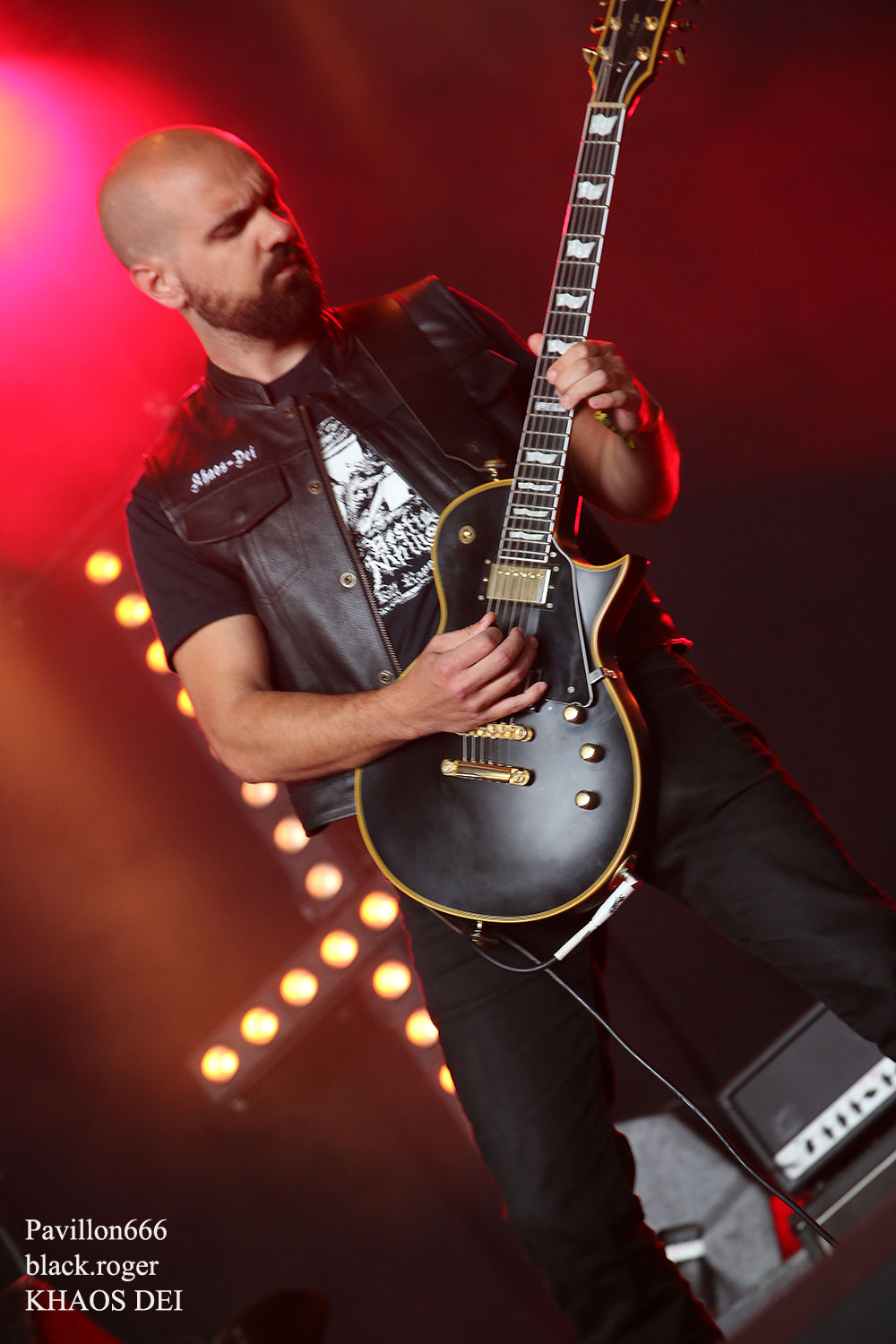 Pavillon666 avait délégué deux chroniqueurs/photographes afin de couvrir cette fête du rock/metal/hardcore/punk et plus si affinité. Voici tout d’abord la chronique et les photos de black-roger pour la journée du Vendredi 21 Juin ; Jean-Philippe vous fera part de ses impressions et photos sur un autre post, alors bonne lecture ! KHAOS DEI – 11 heure 05 – Temple Je commence cette journée du Vendredi avec du black-metal frenchie, Khaos dei ayant frappé les esprits avec son second « méfait » intitulé « catechism », une ode à Satan, un Satan guerrier. Ici pas de compromis ni de carton-pâte, le black du trio part en guerre avec un chant guttural parfois, crié aussi pour des compositions bien travaillées sur des paroles en français SVP, la noirceur est là bien palpable. SUBLIME CADAVERIC DECOMPOSITION – 11 heure 40 – Altar Sur la scène à côté de la Temple, l’Altar, on nous propose du grindcore, mais pas n’importe lequel, celui de Sublime Cadaveric Décomposition. Le trio « parigot » n’est pas venu au Hellfest pour enfiler des perles c’est certain. Alors que ce soit en petit club ou sur une grande scène SCD est à l’aise et vous emmène dans son « porno-gore » mâtiné de black, bien épais, bien « crade », sans concession. SCD sublime le grindcore, c’est sans appel, alors fatalement on aime sans faux semblant. GLORYHAMMER – 12 heure 15 –Mainstage 1 Et puis hop, en passant devant la mainstage 1 nous ne pouvons que nous arrêter et apprécier (ou pas) les aventures spatiales, « heroïc fantasy » et power-metal de Gloryhammer qui nous présente en live son nouvel opus « legends from beyond the galactic terror vortex », mais pas que ! Voyage intersidéral coloré garanti en live. UADA – 13 heure 35 – Temple Retour à la Temple pour du black à nouveau, celui de UADA venu de Portland, Oregon, afin de nous brutaliser avec du B.M 90’ classique mais d’une efficacité redoutable. Ces encapuchonnés ont tout comprit au film de l’agressivité entrecoupée de mélodies empoisonnées. Du coup en live on déguste ce mix bien agencé techniquement et visuellement, on aime tout simplement. DAUGHTERS – 14 heure 20 – Altar Après 8 ans de silence radio, Daughters remet les pendules du rock nerveux à l’heure. En effet ils ne nous offrent pas seulement du binaire, mais du mathcore et de la noise à vous coller au plafond de votre salon. Et en live c’est une autre histoire, le quatuor se déchaine et le frontman suivi de ses acolytes sort le plus souvent sur les « crash-barrières » et dans le public, alors c’est complètement dément, jouissif et violent en même temps, quelle baffe mes amis pour un retour fracassant sur les planches ! POWER TRIP – 16 heure 00 – Altar Même scène que Daughters, même combat, si j’ose m’exprimer ainsi avec les « ricains » de Power Trip qui vont nous infliger une « raclée » crossover/thrashcore pas piquée des vers. Power trip en live met tout le monde d’accord, que vous soyez métalleux dans l’âme ou « coreux » en casquette, ça fait mal, très mal (enfin ça fait du bien quoi !). L’an dernier à Genève j’avais pris une baffe sur la joue droite et aujourd’hui à Clisson j’en ai pris une sur la joue gauche. Mais je suis prêt à les revoir encore et encore, la classe quoi ! PESTILENCE – 17 heure 40 – Altar Voici donc des death métalleux mythiques spécialistes des séparations/reformations depuis 1986. Alors en cette fin d’après-midi du vendredi nous profitons de la prestation des Hollandais toujours emmenés par l’incontournable Patrick Mameli. Pestilence, l’un des groupes fondateurs du death-metal Européen continue sur sa lancée nous offrant son death, certes old-school et technique, mais innovant dorénavant avec des touches plus modernes. Bref, ce fus un set excellent donné à Clisson pour les amateurs du genre. IMPALED NAZARENE – 18 heure 35 – Temple Ce sont des blackeux peut-être, des punks sûrement, des extrémistes purs et durs et provocateurs, enfin quoi ! Ces Finlandais incontrôlables et incontrôlés. Impaled Nazarene nous propose donc son « nuclear metal » depuis l’an 1990 et reste fidèle à son style, si style il y a bien entendu. De toutes façon avec eux c’est rapide, tranchant et répétitif à souhait ; et on en ressort pas indemne à la fin de leur set, quelle haine, quelle destruction, incroyable ! KVELERTAK – 19 heure 40 – Altar Dire que les Norvégiens de Kvelertak étaient très attendus serait un doux euphémisme. En effet la scène Altar a fait le plein et même plus pour leur show très chaud. Alors, punk-hardcore, black n’roll et plus si besoin tout est mis en œuvre pour vous donner le tournis ; ça virevolte dans tous les sens et ça tabasse sec dans un style vraiment surprenant et atypique et tout cela en Norvégien, CQFD. Leur set fut donc explosif ce soir au Hellfest, un set incroyable, mouvementé et même envoutant, très particulier quoi mais accrocheur en diable tout simplement, nous avons donc adoré ! VENOM INC. – 20 heure 45 – Temple A l’origine nous avions Venom, maintenant nous avons deux Venom et ce soir c’est Venom Inc. Qui est là devant nous à 20 heure 465 sous la Temple pour un moment…peut-être nostalgique qui sait avec Mantas et Abaddon (ex- qui vous savez…), et Tony Dolan au chant/basse. Les Anglais nous proposent une ambiance bien old-school, spped/punk/heavy/thrash comme au bon vieux temps de Cronos ‘oups !). N’empêche que la reprise du fameux titre « black-metal » fait du bien dans les cages à miel. Merci Venom Inc. Vous assure, on aime. POSSESSED – 21 heure 50 – Altar Pionniers du death-metal les « ricains » de POSSESSED avaient mis fin à leurs activités en 1987. Mais l’appel du metal extrême a fait son œuvre et depuis 2007 le groupe est remonté sur scène régulièrement en sortant même un nouvel opus intitulé « revelations of oblivion » en cette
