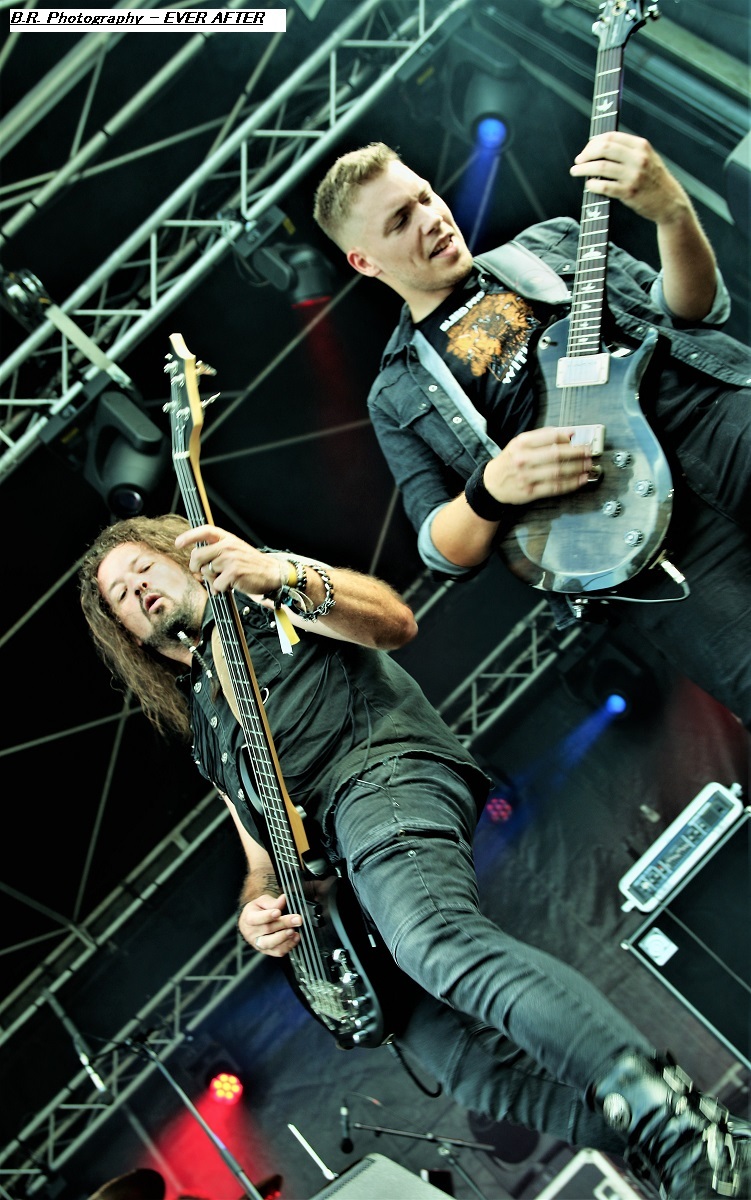 Cette p^lumière journée va nous offrir les prestations de EVER AFTER, AKIAVEL, SUASION, BLIND GUARDIAN, NIGHTMARE, MASS HYSTERIA, VERTEX et MYRATH. Huit groupes donc en alternance sur les deux scènes, le Terminal 01 et le Terminal 02, alors musique ! EVER AFTER lance le son en fin d'après-midi avec toujours au menu cette passion et ce souci du détail dans un registre metal symphonique aux rythmiques plombées sur lesquelles chant cristallin et growls se placent à l'envi sur le tarmac de Montcul, ambiance déjà ! AKIAVEL va investir ensuite le terminal 1 devant un, public aux anges (au diable pardon !) pour un envol machiavélique (sic) fait de death et de groove aux accents old-school mais avec des déviances riffues imparables flirtant parfois avec le hardcore. Bref, pas déçu du voyage avec eux et c'est mérité ! SUASION en « guenilles », mais rescapé du crash se présente sur le terminal 2 afin de nous, faire goûter à son metalcore Belge et ils ont la « frite », classique celle-là ! Leur menu nous jette dans les cages à miel un son futuriste inspiré et ça marche, bonne découverte donc ! Inutile de vous présenter nos cousins Germains de BLIND GUARDIAN. Cette formation de power-metal fait partie des vétérans de heavy-metal mélodique à l'Allemande des 80's. Leur recette, des épopées à la Tolkien évidemment, des rythmiques envoûtantes et bien sûr des power-ballades pour les nostalgiques de ce metal d'anthologie. Le public, vieux ou jeune a largement apprécié je crois leur set se posant avec douceur et fermeté sur l'Est Lyonnais. NIGHTMARE atterri ensuite sur le terminal 2 sans encombre. Cette formation de heavy-metal à l'ancienne qui a su se renouveler au fil des décennies se présente avec sur scène maintenant leur nouvelle chanteuse Barbara va su convaincre encore et même plus ! Moi le premier car leur prestation m'a vraiment surpris tant musicalement que visuellement, amen ! MASS HYSTERIA quant à lui, va mettre tout le monde d'accord la nuit tombée avec son rock énervé, plus que du metal si vous voulez qui nous fait « groover » depuis trente ans déjà, eh oui ! Alors ce soir c'est la même présence scénique, la même magie des mots de Mouss, la même hargne pour les furieuses et les furieux que nous sommes. Soyons donc toujours positifs à bloc dans l'enfer des dieux, sans contradiction mais avec une nouvelle pépite nostalgique « où sont tous mes amants, tous mes amis » avec la voix centenaire en guest de Frehel, titre qui va nous surprendre encore une fois. Alors oui Mass Hysteria est tenace (sic) et nous aussi ! Les Lyonnais de VERTEX vont ensuite ravager bruyamment le terminal 2 à l'aide d'un metal alambiqué, puissant, accrocheur, fait de riffs tordus et de contretemps imparables, le tout destructeur de neurones. Et l'on retrouve dans leurs envois les (bonnes) influences polyrhytmiques d'un Meshuggah et les déviance indus d'un Fear Factory, à la sauce vertex bien entendu, on aime ! Place maintenant sur le terminal 1 au metal oriental des Tunisiens de MYRATH (avec deux français l'un aux fûts et l'autre aux claviers). Ici tout est somptueux musicalement parlant, les lights aussi. Ici on joue avec le feu dans tous les sens du terme et des danseuses parcourent la scène en arabesques voluptueuses. Vous l'aurez compris Myrath mixe son metal avec la musique originelle de son pays de façon remarquable. Son énorme, technique irréprochable, mise en scène incroyable, toute leur musique nous a fait voyager sans crash ce soir ! Fin de la première journée tard dans la nuit et nous reprenons l’avion du sommeil réparateur afin d’atterrir à Montcul demain Samedi, même lieu sur la piste de Colombier-Saugnieu pour, qui sait, un nouveau crash musical en bout de piste sur les deux terminaux. |