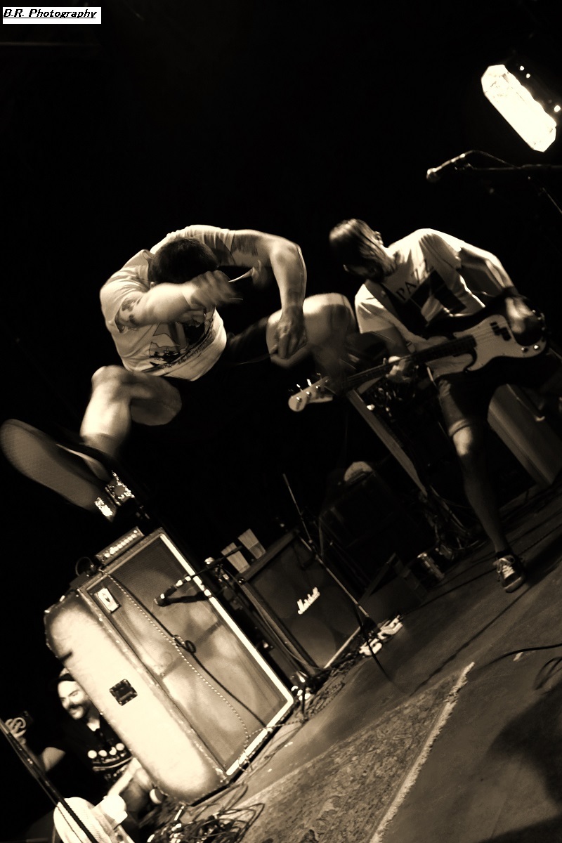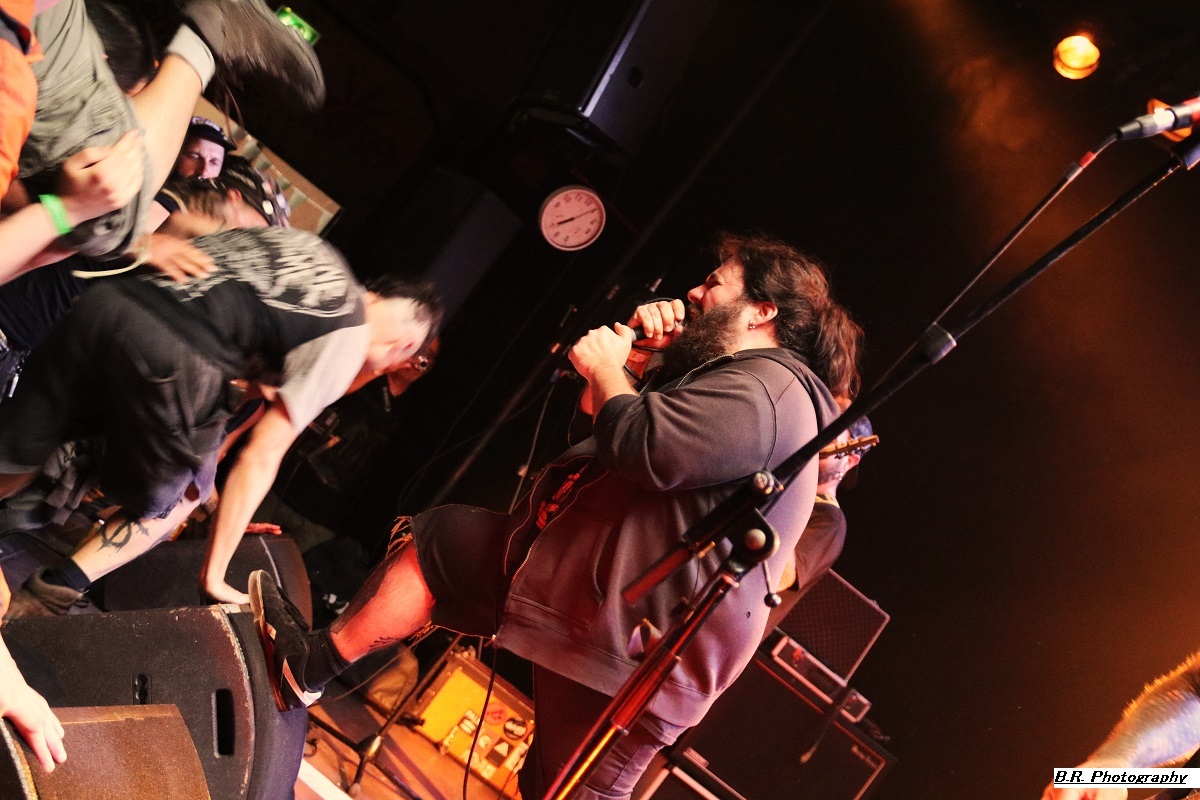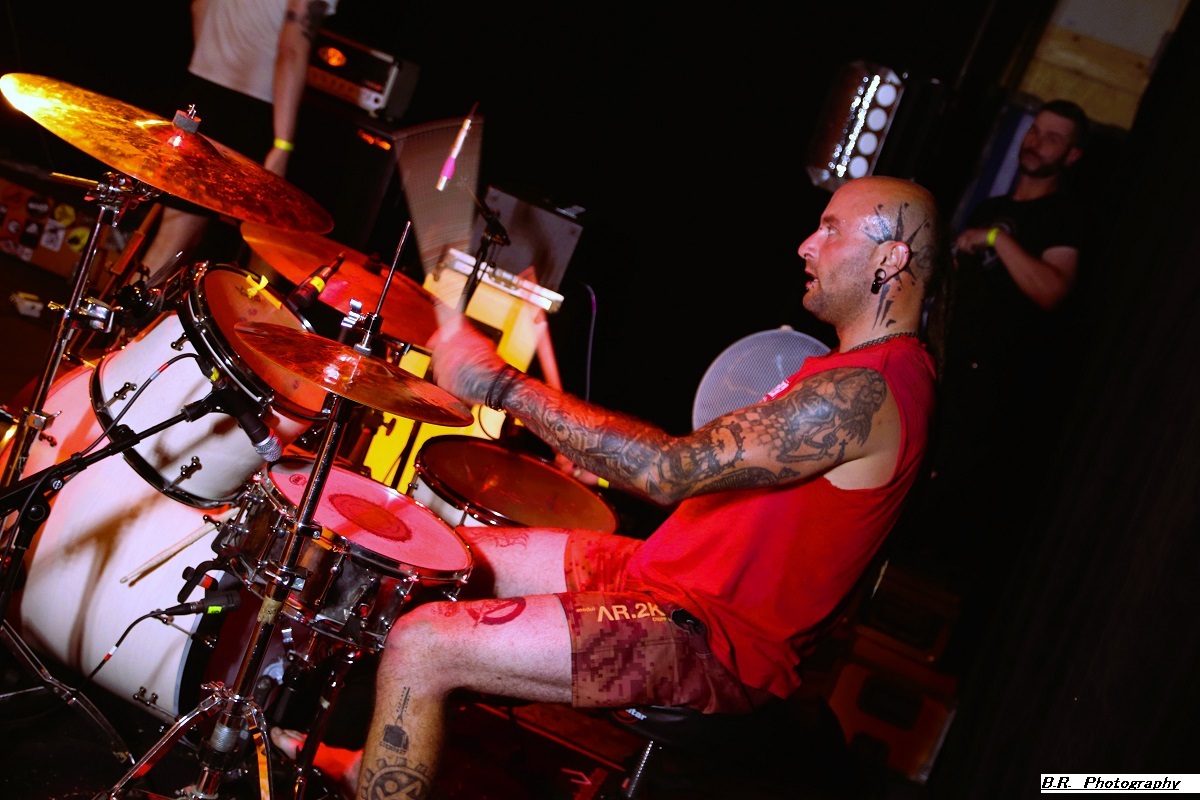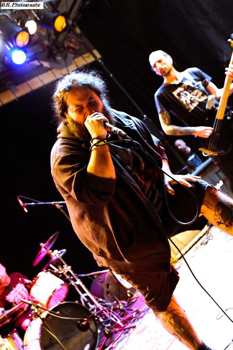 Ce sont les tchèques d'INTERPUNKCE qui nous interpellent dès 17 heures 30 avec leur punk-hardcore sur vitaminé. Ceux de Prague placent la barre bien haute cet après-midi dans un Grrrnd Zero déjà en ébullition. Leur punk se révèle simple mais très agressif comme la haine avec le cœur et l’amour avec le couteau, comme ils le disent ! Et hop encore des Tchèques sur les planches avec la venue de BRÜNNER TODESMARSCH. Ce quatuor de Brno prône la rébellion à l'intérieur et l’extérieur avec son crust punk bien buriné qui sévit depuis l'an 2012 et en live, ce n'est pas un pétard mouillé ! La power-violence des Lillois de MARTO nous tombe dessus sans crier gare en ce début de soirée. Et sur scène ils sont complètement marteaux (sic). Ça part dans tous les sens avec des envois propulsé par deux hurleurs et des musicos déchaînes. Ils prônent la lutte et la fiesta, aargh ! Les petits Suisses de Lausanne KAKOTHANASY sont remontés comme des coucous (Suisses !) et ils vont nous blaster la cervelle à l'aide d'un brutal death bien froovy. Le trio du bord du lac Léman ne fait pas dans la dentelle poussant leur death dans les recoins techniques sans compromis et leur dernier méfait « Initiating The Primal Cognising Display of Intrinsic Tangible Affliction est a écouter dans votre salon de toute urgence après le concert, conseil d'ami. Les Tchèques (encore !) de LICKSPIT pratiquent non pas le thrashcore des familles mais son ancêtre le « bandana thrash ». Mais finalement ces cousins de l'Est sont des punks tout simplement et envoient, la sauce keupone avec conviction sans se « masturber le cerveau » ou si peu, on aime ! SHEEVA YOGA nous vient d'Ostrava en République Tchèque (ah bon !) et il nous défonce ce qu'il nous reste de neurones à l'aide de leur fastcore, grindcore, power-violence et plus si affinité. Après une pause partielle de presque un an ces musiciens ont repris la route et ce soir nous les accueillons à Lyon pour un set semble-t-il très attendu. Et du coup ce fus très apprécié vu l'ambiance devant la, scène. À la suite de leur impossibilité de venir ici au fest ceux THE ARSON PROJECT seront remplacés par ceux de Nancy les incontournables BLOCKHEADS qui vont nous démolir, que dis-je, nous pulvériser la tête et les jambes (ou, autre !) avec leur grindcore tranchant comme une lame de rasoir et rebelle sur des rythmes hystériques. Ils sont toujours énervés, mais passionnés, content de retrouver devant eux les, amis du blast et de la rage, défouloir, garanti donc ! Depuis plus de trente ans, Blockheads n'a pas baissé la garde et leur brutal grindcore pimenté par des déviances punks fait toujours des ravages là où le groupe passe. Alors nous avons dégusté dans tous les sens du terme (qui a dit comme d’habitude ?), amen ! Plus de 30 ans d’activité aussi pour les Finlandais de ROTTEN SOUND qui ont influencé plein de groupes se réclamant du grindcore dans le monde entier. Avec une discographie longue comme le bras et des tournées pratiquement non-stop ceux de Vaasa blastent à nouveau comme des sauvages après une période aux envois un peu plus lourds et groovy. Rotten Sound remonte donc au créneau du grindcore pur et dur sans concession. Alors ça fait mal, très mal même, mais figurez-vous que l'on aime ça. Leur dernier album en date porte le joli nom d’« Apocalypse », alors tout est dit ! Après cette effusion sonore et physique, il est tard, mais nous ne partons pas car GROSSEL de Guérande (ça ne s'invente pas !) se présente à nous. Grossel nous propose son mince-core (si, si ça, existe), un « core » mariné dans la sauce punk des marais salants. Auteur d'un album « Mince Grind Conférence » et de splits avec divers combos comme Ghetto, Insect Terror et Agathocles, ce groupe dont les membres viennent de divers horizons du grindcore, nous a bien surprit dans le bon sens du terme, mention très bien. Il convient de remercier les organisateurs Lixiviat Records et toutes les formations qui nous ont blasté durant deux jours. Ce festival a confirmé la bonne impression que l'on avait pu avoir en 2023 et cette édition 2024 fut un succès que l'on se le dise dans les chaumières du grindcore. Nous attendons donc maintenant une troisième édition pour l'an prochain. Évidemment nous seront laà toujours plus nombreux ! |