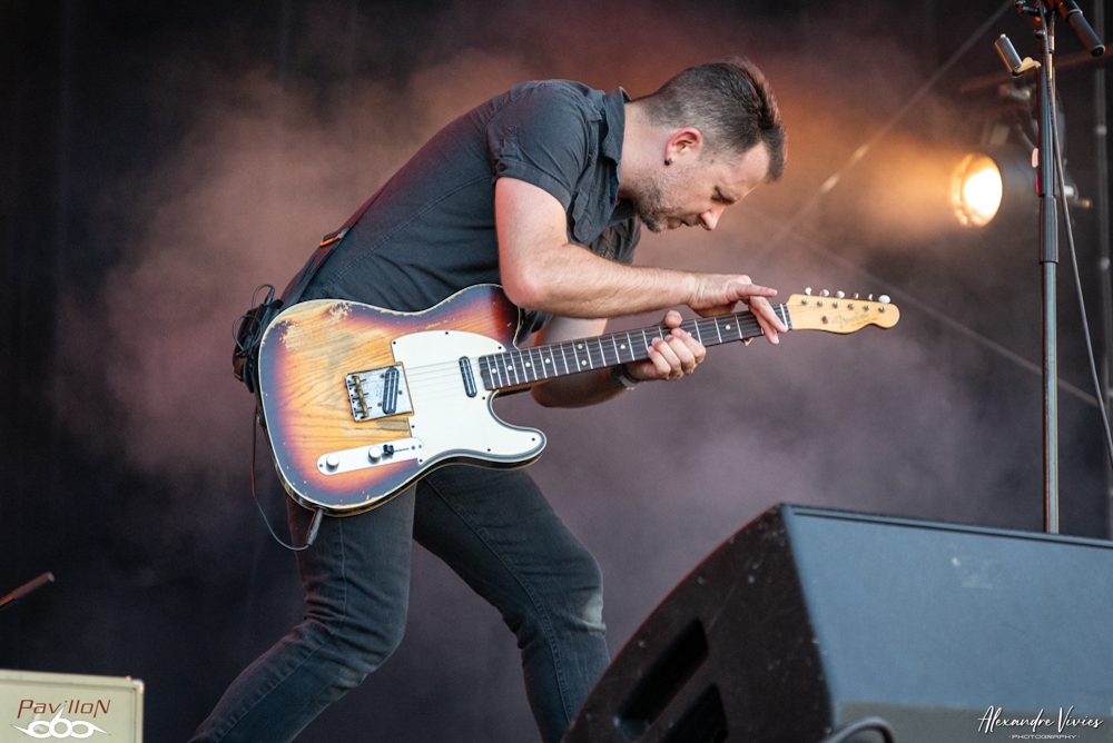 Venus d’Angoulême, c’est aux musiciens de BLACK’N RED que revient le plaisir d’ouvrir ce deuxième jour de festival. Le groupe propose un hard rock survolté aux forts accents de blues, de quoi mettre en jambes sans détour son public et démarrer la journée sous les meilleurs auspices ! L’énergie électrisante des quatre musiciens est communicative et les festivaliers présents, malgré un soleil de plomb, se régalent de la performance pêchue et déjantée délivrée par le combo.