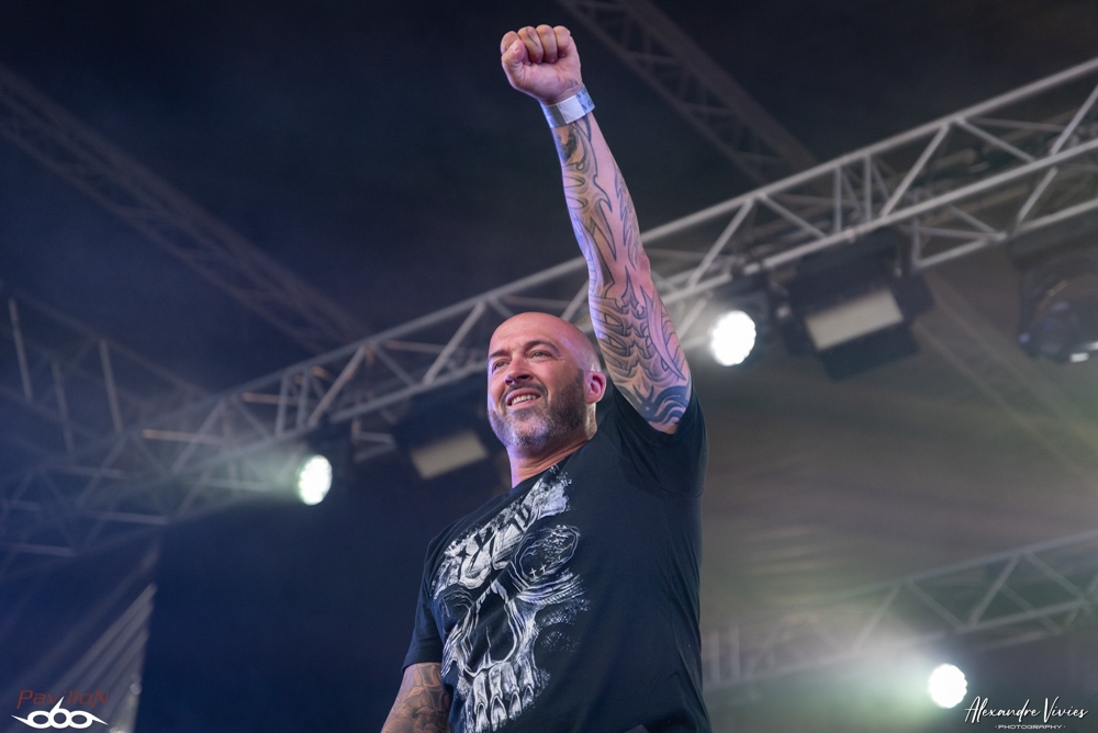 Très attendus par de nombreux fans, c’est sous une salve de hurlements que les Stéphanois de BENIGHTED font leur entrée sur scène ! Venus défendre leur excellent dernier album « Ekbom », Julien Truchan et sa bande ne sont pas là pour rigoler et semblent aussi bouillants, malgré une concentration à toute épreuve, que le public qui lui fait face. La performance s’annonce mémorable et le festival s’enflamme dès les premiers blast-beats de « Scars » ! Dès lors et pour l’heure qui suivra, c’est en un véritable champ de bataille que se transforme le parterre du site, entre circle-pits et slams incessants. C’est une pure décharge d’énergie, presque bestiale tant le public est transcendé, qui émane aussi bien du groupe que des festivaliers. Sans la moindre contestation possible : la « bagarre » du week-end !