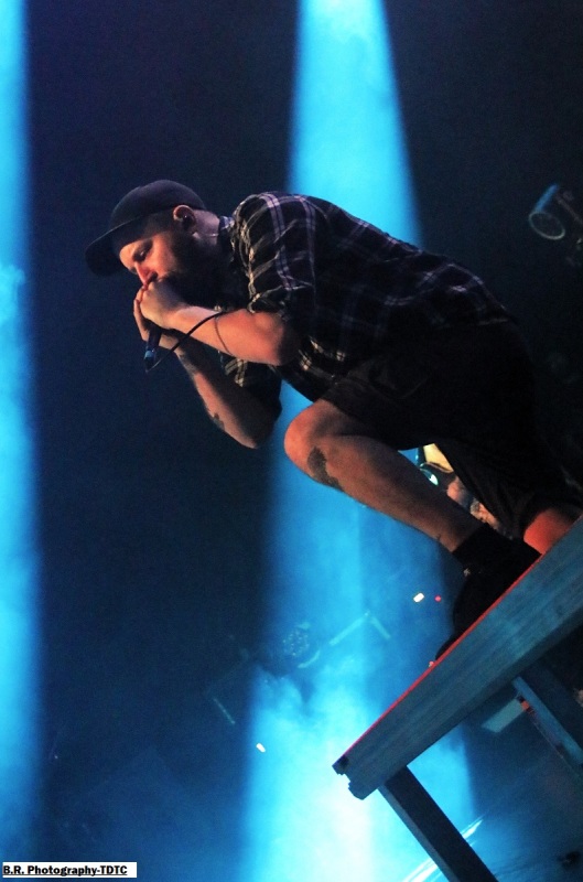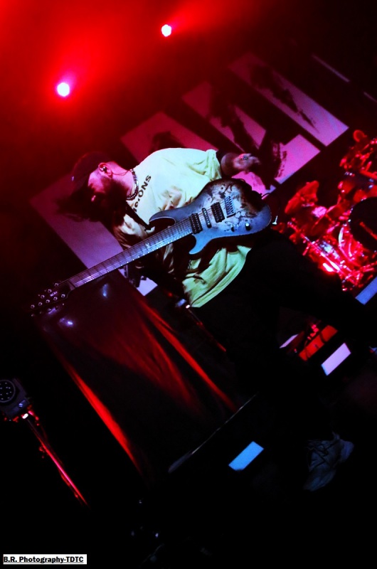 Alors nous avons pu apprécier les démonstrations de TEN 56,, DREAM STATE, THE DALI THUNDERING CONCEPT et SOLITARIS dès 19 heures 30, Ce sont les parisiens de SOLITARIS qui ouvrent la soirée dans une atmosphère sombre, des lumières noires et des musiciens masqués revêtus d'habits noirs. Mais pas de black-metal ici plutôt du trap metal avec des guitares massives dans une ambiance lourde de conséquences et dérangeante aussi. Solitaris qui d'aucuns qualifient de valeur montante a déjà donné plusieurs concerts en France et dans toute l'Europe après la sortie en 2023 de leur EP « Siwa », mais ce soir à Lyon ils ont sous leurs bras un nouvel enregistrement intitulé « Nahar » à défendre en live. Et durant 30 petites minutes nous avons apprécié une prestation qui nous a interpellé dans tous les sens du terme, et ce fus bien. THE DALI THUNDERING CONCEPT (TDTC pour les intimes) prend la suite sur la grande scène de la Rayonne afin de nous présenter en live leur nouvel enregistrement « Teargas » de 2025, mais pas que ! Né il y a 15 ans, ce groupe Parisien évolue dans un registre metalcore/deathcore pimenté de djent. TDTC sur scène c'est tout bonnement impressionnant avec ce mix jazzy, électro et rap bien cuisiné ,et donc varié, djent passé à la moulinette , nous oserons avance ce terme. Le public jusqu'ici bien calme va se prendre au jeu des rythmiques et l'ambiance « core » va faire son œuvre sous les coups de boutoir d'un mathcore/prog sans concession. Au final, très bonne prestation ce soir proposé par des passionnés qui grimpent, qui grimpent dans le petit monde du modern/metal/hardcore, on aime ça ! Changement de son, changement de style avec le post/hardcore/rock alternatif des Gallois de DREAM STATE qui nous interpellent fortement dès le début de leur set avec une frontwoman, Jessie Powell, énergique, motivée et parfois explosive. Elle va tenir le public « coreux » au creux de sa main durant une prestation qui va laisser des trace tout simplement ce soir. Fondé ,en 2014, ce groupe a subi moult changement de line-up soit, mais ce soir ces musiciens nous ont vraiment « scotché » et notamment avec des titres de leur dernier opus en date « Still Dreaming ». Ils nous ont envoyé une bouffée d'air frais post quelque chose avec en final la petite Galloise venue titiller le public dans la fosse, excellente prestation donc ! Dire que TEN 56, était très attendu ce soir relève d'un doux euphémisme. La pression monte donc d'un cran avec l'arrivée devant nous d'Aaron et ses sbires qui vont d'entrée de jeu nous coller au plafond ni plus ni moins ! Formé en 2020par Aaron Matts (ex-Betraying The Martyrs) Ten 56, va nous faire illico entrer dans son jeu de dark-core, deathcore bien sombre et très intense. Avec en toile de fond une optique nu-metal, voire indus, le groupe tient la scène de façon spectaculaire avec des compositions qui marquent les esprits. C'est puissant, souvent très lourd, destructeur de neurones bien évidemment. Ça vous, prend aux tripes assurément. Le groupe nous présente entre autres son dernier « méfait » discographique un EP 4 titres intitulé « Pig » et c'est de la bonne comme l'on dit communément. Alors oui, tout était bon à prendre ce soir à Lyon avec eux, énergie, compositions et lights assez incroyable, amen ! Merci aux organisateurs, aux musiciens qui ont retourné la Rayonne que nous remercions également pour l'accueil ! |
