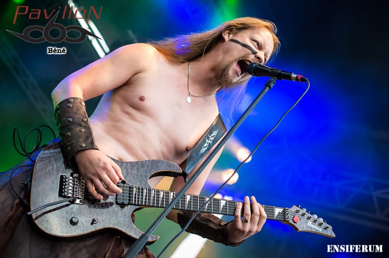 Le set commence avec « The Raven’s cry », alors que la pluie, qui a déjà bien pourri les stages pendant HUATA, revient et pas qu’un peu. Un peu trop même semblerait-il puisque des trombes d’eau tombent de la bâche supérieure.