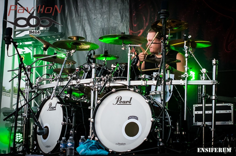 Pendant que l’orga et les techniciens tentent de résoudre le problème, les membres du groupes ne se laissent pas abattre et mettent le public en condition. Après 10-15mn d’attente (pas tant que ça au final), le groupe va pouvoir reprendre. Raf, au chant, en profite pour signifier la présence exceptionnelle de Nicolas BASTOS (Esprit du Clan) à la batterie.