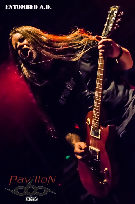 Les suédois d’ENTOMBED A.D. prennent d’assaut la Dave Mustage. Première fois que je les vois donc pas vraiment d’élément de comparaison entre Johan, le nouveau gratteux, et Alex Hellid, l’ancien.