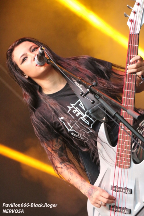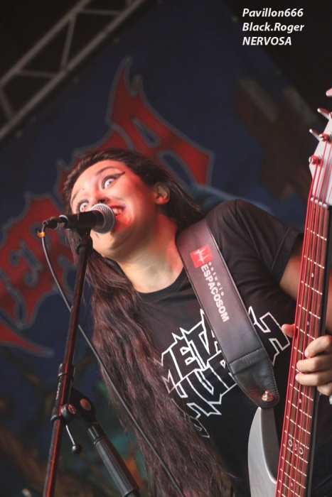 Sur la seconde scène à 20heures les Brésiliennes de NERVOSA vont nous donner une bonne leçon de thrash « couillu ». Les trois filles nous rentrent dans le lard direct, sans fioritures, sans faux semblants. Ici ça passe ou ça casse, mais ce soir à Tolmin ça va passer très bien merci !