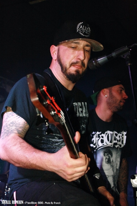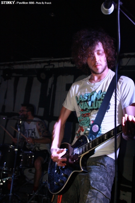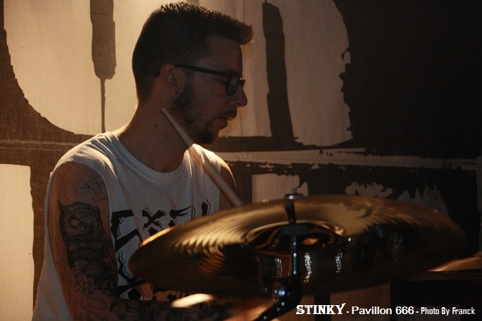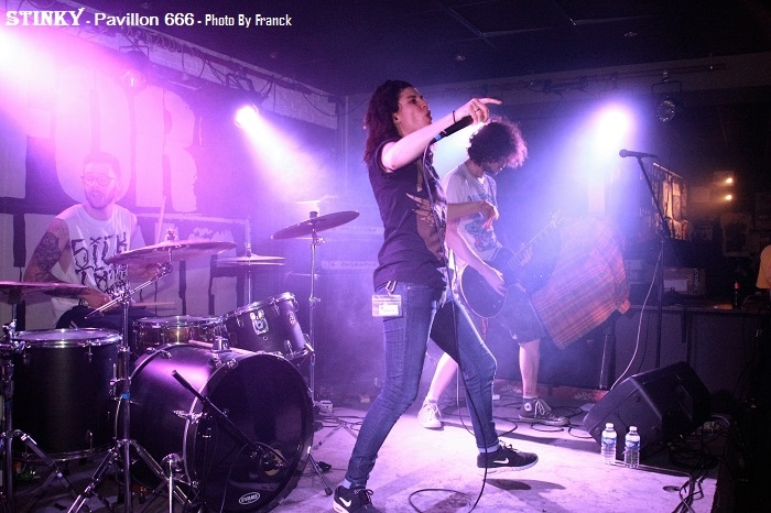 J’aime autant vous dire que lorsque ça a démarré, ce n’était pas du diesel. Radio Metal Sound ainsi que la totalité des groupes ont mis direct le pied sur l’accélérateur et je peux vous garantir que c’est pied au plancher que se sont enchaînés les sets des six combos en présence. La soirée démarre donc en force avec nos coreux locaux de Pit Disorder qui ne vont pas nous ménager les tympans en débutant cette soirée avec un gros set. Nos lyonnais sont en forme et c’est parti pour le gros son et d’emblée ils vont placer la barre assez haut et ça va être au tour des cinq autres groupes de faire aussi bien. Leur hardcore épais et furieux déchaîne déjà le pit où les séances hardcore, muscles et karaté commencent. Le chant rageur de Boris sait faire toute la différence et invite le public à se remuer. Pit Disorder a trouvé en la présence de Damien une guitare qui donne l’effet de coups de haches avec disto californienne totalement énorme à l’appui. La section rythmique composée d’Alex à la Basse et de Bij à la batterie est époustouflante. Ca cartonne un maximum comme à l’ancienne et c’est ultra puissant. Les garçons ne ménagent pas leurs efforts et sont déjà trempés comme des rats. Au Blogg ce soir, pas besoin de chauffage, dès le set de Pit Disorder c’est déjà une loge de sudation. Franchement, nos quatre lyonnais assurent à mort avec ce premier set hardcore extrême plutôt enlevé. On ne peut que se féliciter d’avoir un tel groupe dans notre ville. Vivement leur prochain concert !! En attendant, vous pouvez les retrouver via leur page facebook et découvrir leur premier Ep téléchargeable en ligne. https://www.facebook.com/PitDisorder/?fref=nf Les changements de plateaux vont aller à toute allure ce soir. J’aime autant vous dire que sur scène, ça pulse et ça transpire dur. Radio Metal Sound essaye de récupérer le temps perdu histoire de finir sans dépasser la marge et franchement ça le fait. Un coup de « one, two », « one, two » dans les micros, deux ou trois riffs à la basse et aux grattes, un sextolet sur la caisse claire, « boum, boum, boum… » un peu de pédale de grosse caisse et ça y est c’est parti. Ce sera le même menu express pour tout le monde ce soir. C’est donc reparti avec Parjure aux commandes et leur hardcore incisif a l’accent metal tranchant de chez tranchant. Oscillant entre le punk hardcore, le metalcore avec une pointe de death et le tout bien toasté, Hugo balance dans son micro des textes totalement enragés. Je me garde toujours de faire des comparatifs musicaux avec des tas d’autres groupes car j’estime que chaque groupe a sa propre empreinte, même un cover band. Et chez les savoyards de Parjure pour avoir de l’empreinte, il y en a. Parjure possède une très forte identité musicale surtout dans cette façon qu’ils ont d’interpréter leurs titres où les voix se répondent en permanence les unes aux autres, c’est un ensemble cohérent qui donne une grande force à l’image du groupe sur scène. C’est un groupe qui a de la puissance, les fondations sont solides et chaque riff vous écrase. Musicalement c’est impeccable, le son est également d’enfer, toutes les conditions météos sont réunies pour se prendre en pleine tronche un nouveau set absolument énorme et Parjure l’a fait, ils ont donc tenu leur serment… Si vous ne connaissez pas Parjure, alors c’est une erreur et pour vite combler cette lacune, vous trouverez leur lien Bandcamp ci-dessous pour vous en mettre plein les oreilles. http://parjure.bandcamp.com/album/keep-your-elbows-straight Encore un changement express de plateau et là, ce qui nous est tombé dessus les amis, c’est presque la foudre ou tout comme. Il s’agit des Stinky, un groupe résolument énorme originaire de Clisson. Toutefois ils ne seront pas au Hellfest, mais plutôt à l’Xtrême Fest du 29 au 31 juillet à Albi. Emmené par Claire au chant, ce combo vous retourne littéralement les tripes. La scène du Blogg va totalement prendre feu sous les baskets de la jeune chanteuse qui fout sans modération ses propres tripes sur les planches et c’est à nous de faire le tri au beau milieu de tant de puissance, c’est phénoménal. Claire hurle tout ce qu’elle a dans les abysses de son cœur et l’ouragan sonore se déchaine autour d’elle. Les textes ne sont pas bidons, ils sont vraiment poignant et démontre bien que le hardcore n’est pas réservé à des bourrins au crane rasé, en short NBA et tatoués de partout. Il peut y avoir dans les textes une vraie force qui découle d’une certaine fragilité et d’une poésie sombre et désenchantée. Ainsi des titres comme « Tears in the rain » ou encore « Between lies and life » et j’en oublie, sont les témoignages vivant du message que le hardcore aussi violent soit-il, peut faire passer. Les Stinky sont tout à fait dans l’esprit d’All For Nothing et de ce que Cindy essaye de transmettre au public. Il y a là dedans une forme de pureté et de simplicité qui est en parfaite cohésion avec l’énergie de la vie elle-même. Et de l’énergie, croyez moi que sur scène il y en a. Voyant à chaque titre le set monter en puissance, j’ai cru à un moment que tout allait disjoncter. Claire est de partout à la fois, sur scène, dans le public, chacun de ses mots percutent l’auditoire. Les autres musiciens sont au taquet et tous d’un excellent niveau. Seul un des guitaristes assure chœurs et contre chants donnant appui et réplique au chant de Claire. Les Stinky pratiquent un hardcore mélodique et sauvage aux tendances plus traditionnelles, bien que l’on soit déjà dans les concepts modernes du hardcore qui découlent de Madball. Les Stinky ont sorti un magnifique album en 2015, « Against Wind And Tide » qui sera bientôt chroniqué chez Pavillon 666. Afin de découvrir ce groupe résolument énorme qui dans l’avenir est destiné à pre