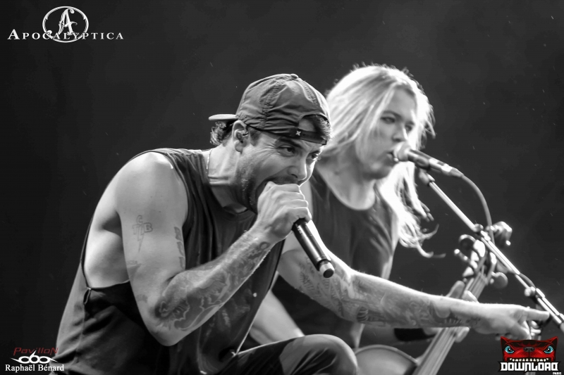 Après une nuit courte mais réparatrice, c'est reparti pour une deuxième journée de festoche ! Arrivée sur site vers 14h, je ne veux absolument pas manquer la prestation de SHINEDOWN, le groupe préféré de ma chère et tendre qui ouvre sue la scène 3. Je les ai vus à Londres alors qu'ils partageaient l'affiche avec BLACK STONE CHERRY en février et j'avais été très impressionné par la présence scénique du charismatique frontman Brent Smith. Il n'a pas failli à sa réputation en délivrant une prestation certe courte pour une formation hélas mal connue dans l'hexagone mais d'une qualité impressionnante avec en prime un bain de foule improvisé pour la plus grande joie des fans déjà nombreux sous la tente à cette heure. Nous aurons la chance d'interviewer Zach, le guitariste dans le tour bus du groupe pour discuter de l'avenir hexagonal du groupe. Une fois de plus la France est à la traîne, là où le groupe rempli des stades dans les pays anglo-saxon, les américains jouent sur la stage 3 pour ouvrir le bal...Grossière erreur vue la prestation du groupe, c'est bien dommage...(Frédéric) Je reste un peu pour écouter et faire un petit shooting d'APOCALYPTICA. Même si je reconnais la qualité des musiciens et leur envie, je continue à dire que ce groupe n'est pas fait pour la configuration d'un festival et encore moins sur une mainstage. Un peu trop mollasson en termes de puissance et les instruments traditionnels montrent vite leurs limites. A revoir dans une salle de concert plus modeste... (Raphaël) Nous nous retrouvons pour la furia devant la stage 2 pour le set de MASS HYSTERIA, programmé à 15h00, horaire bien trop tôt selon Mouss qui ne se prive pas de le faire savoir, on connaît son franc-parler, nous en aurons d'ailleurs la confirmation en interview un peu plus tard (à voir sur ce live report). En pleine tournée pour « Matière noire » leur dernier album, ils entament des festivals d'été dans toute la France, partageant même l'affiche avec des groupes mainstream, ça va faire bizarre aux bourgeois qui étaient venus « s'éclater » sur du Christophe MAE ou du Louanne !!! Greffe de tympans à prévoir !!! Un set d'une heure avec bain de foule et mosh pit, bref, du très bon MASS ! Le public venu en masse malgré cet horaire inadapté ne s'y est pas trompé et c'est tant mieux !!! (Raphaël et Frédéric) 16H00, direction la mainstage pour la dose obligatoire de British heavy métal avec SAXON un des groupes qui a bercé notre adolescence, toujours aussi bon, toujours aussi fort malgré les années, nous avons croisé Biff dans les loges, il nous a serré la main, depuis nous ne l'avons pas lavé... On attaque donc ensuite les interviews, Zach de SHINEDOWN, puis les Anglais d' ARCANE ROOTS très sympas suivi par Mouss de MASS HYSTERIA, interview d'anthologie que je vous conseille, on s'est bien marrés ! (Raphaël et Frédéric). Nous zapperons les Japoniaiseries de ONE OK ROCK et surtout l'imposture BABY METAL produit marketing et de contrefaçon metal dont la prestation fut catastrophique et vraiment pas très professionnelle. Son pas terrible et voix stridentes et insupportables. Dommage pour les fans de cette formation... Nous partons donc pour écouter de la vraie musique sur la stage 2 avec AMON AMARTH. Nous ne serons pas déçus. Une prestation à la hauteur de la qualité du dernier album. Scénographie Viking avec tête de Drakkar, pyrotechnie et flammes sur fond toilé bleuté à l'image de la pochette du dernier opus. Très bon concert, efficace, direct et jouissif... (Raphaël et Frédéric) Je perds mon binôme, sans doute est-il parti s'abreuver de houblon dans la taverne du coin et je suis seul devant JANE'S ADDICTION. Une prestation honorable en termes de son et de balance. Le décor est sobre. La musique aussi. Ca me semble poussif, le côté dandy décadant me semble surjoué. J'aurais pu néanmoins apprécier la plastique des trois demoiselles en tenues légères qui seront venues pour apporter un peu de piment à un show bien trop plat à mon goût. Uniquement pour les fans. (Raphaël) On termine par KORN, un show bien huilé, comme au Hellfest où nous avions pu apprécier leur prestation. Il est vrai qu'entre RAMMSTEIN et IRON MAIDEN, ce groupe talentueux, avec un frontman bien en voix a fait en sorte de faire changer d'avis ceux qui pensaient qu'ils n'avaient pas la pointure d'être tête d'affiche. Un état d'esprit que le public saura remercier d'ailleurs...(Raphaël et Frédéric). Nous nous excusons par avance des groupes que nous n'avons pu chroniquer faute de moyens et de temps avec les interviews... Allez, au dodo et à demain pour la dernière journée ! Pour des raisons de confidentialité YouTube a besoin de votre autorisation pour charger. Pour plus de détails, veuillez consulter nos Politique de confidentialité. Pour des raisons de confidentialité YouTube a besoin de votre autorisation pour charger. Pour plus de détails, veuillez consulter nos Politique de confidentialité. Pour des raisons de confidentialité YouTube a besoin de votre autorisation pour charger. Pour plus de détails, veuillez consulter nos Politique de confidentialité. |