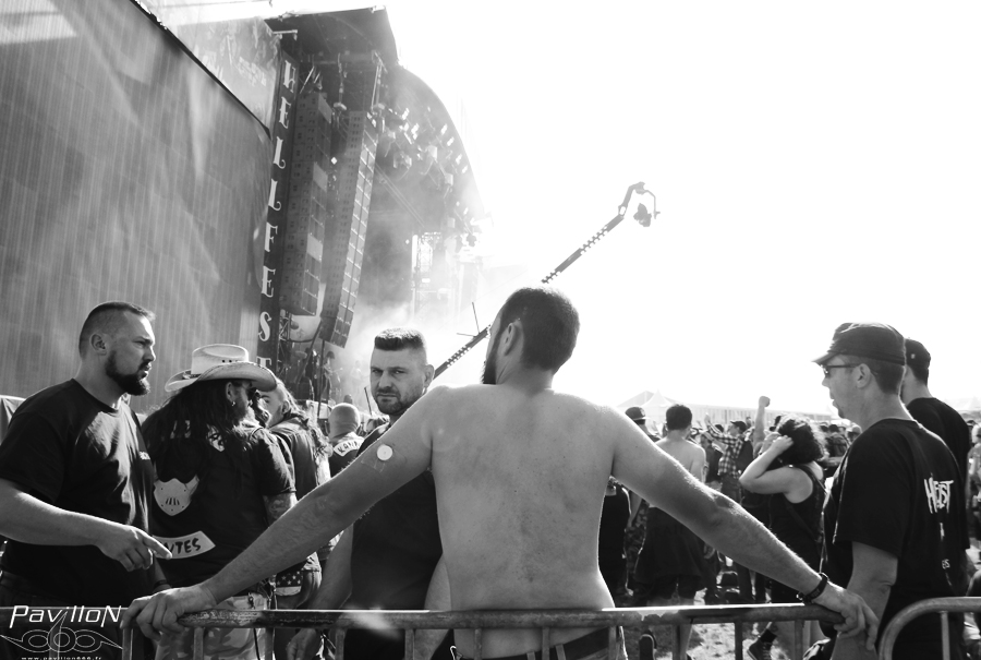 Comme toute bonne chose a une fin, le Hellfest se termine forcément à un moment. Quoi de mieux pour fêter ça en beauté que de se trémousser avec Carpenter Brut au son de ses compos sorties tout droit d'un univers 80's à coup de synthé et de rythmes sombres mais entraînants ? Chacun se laisse emporté par cette musique enivrante, fatigués mais heureux d'avoir passé un si beau moment. Chacun se laisse aller à remuer les hanches, histoire de garder un souvenir inoubliable de ces 3 jours en Enfer. Franck Hueso, accompagné d'Adrien Gousset et de Florent Marcadet nous offrent cet instant suspendu qui rassemble tous ces festivaliers si différents, venus pour écouter des genres musicaux très différents sur un même laps de temps et en un même lieu.
