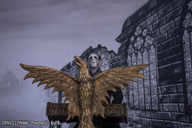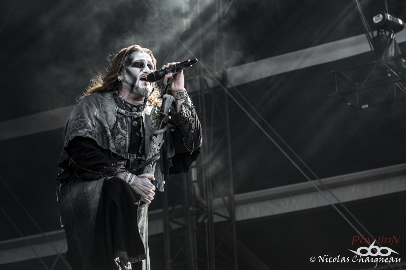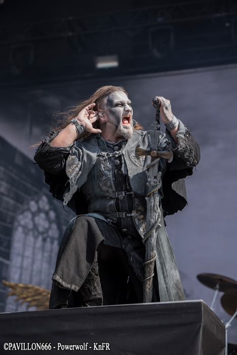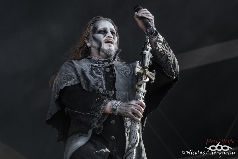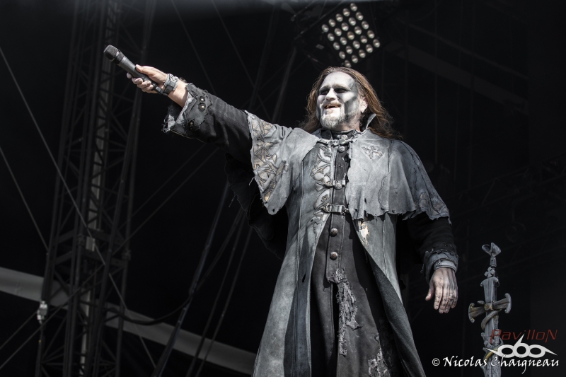 KnFR : C’est à 12h40, que je commence mon premier concert du Download avec le groupe français « Laura Cox Band » sur la scène Firefly du camping devant un très petit comité de spectateurs. C’est sur ‘Hard Blues Shot’ qu’elle débute son concert, et grâce à ses riffs très ‘ac/dciens’ la magie opère presque instantanément avec son public, sachant que pour beaucoup c’était une découverte, et au fil des chansons, son auditoire grossira à vue d’œil. Sa musique déborde d’énergie, et c’est ça qui est agréable, sur la dernière chanson, tout comme le faisait Angus il y a très longtemps, elle grimpera sur les épaules d’un road, et ira fendre la foule, tout en continuant à jouer sur sa guitare Bacchus. A la fin de leur concert, le groupe ira même à la rencontre de son public dans une ambiance très bon enfant, pour une longue séance de dédicaces, photos… NICO : Arriver au Download commence par la vieille habitude du festivalier : la randonnée ! Du parking ou de la gare au camping ou directement au site nous affrontons tous le soleil sur une bonne distance, certains s’abritant déjà sous leur tentes (repliées) en pensant à la chance qu’ont eu ce qui se sont garés plus près. Pour ma part je ne passe pas par la case camping et dès mon arrivée sur le site que je prendrai le temps de parcourir plus tard je fonce devant la Main Stage 2 pour voir démarrer le set d’Eluveitie. Les Helvètes sont très bien accueillis par les festivaliers pour l’instant peu nombreux. Qu’importe, ils nous produisent un set très agréable, je dirais même joyeux où les membres du groupe partagent entre eux et avec leur public nombre de sourires. Les fans ont apparemment passé le temps d’adaptation au nouveau line-up et reprennent en chœur le fameux Inis Mona qui clôt ces petites 40 minutes de folk metal suisse. Pas le temps de s’arrêter pour les nombreux fans communs qu’ont Eluveitie et Powerwolf. Les Allemands prennent possession de la Main Stage transformée pour l’occasion en église à ciel ouvert et la « Metal Mass » s’impose à Brétigny. Comme à leur habitude ils produisent un show grandiloquent, devant un public déjà plus dense que ce qu’on a pu voir plus tôt dans la journée. Le Download Festival se voit alors le lieu de la première mondiale live du dernier morceau de Powerwolf : « Demons are a girl’s best friend » sorti sur Youtube quelques semaines plus tôt. La foule reprend le refrain sans hésiter comme elle le fait pour les classiques « Resurection by Erection » ou « Sanctified with Dynamite ». La recette de Powerwolf marche, le live est excellent, dynamique, partagé avec les festivaliers. KnFR : Il est maintenant l’heure de rejoindre la Mainstage 2, pour un show très en couleur avec la joyeuse bande de pirates : d’Alestorm. Comment ne pas voir l’immense canard-sextoy qui trône au milieu de la scène… ainsi que le backdrop complètement farfelu avec des bananes ? C’est sur le titre « Keelhauled » qu’ils vont nous embarquer sur leur rafiot, et que l’on va naviguer sur un océan de chansons très porté sur la bibine… l’ambiance très festive nous ferait presque oublier que nous sommes au Download. Bowes le chanteur, claviériste en bandoulière flanqué de son kilt, s’amusera beaucoup sur scène à faire des farces en tout genre : demander à un des roads, de jouer de la guitare folk en caleçon sur scène, et le public ne se fera pas prier 2 fois, quand Bowes leur propose de faire un « wall of death ». Au bout de 40/45 minutes de show, il est malheureusement temps de siffler la fin de cette recréation. NICO : Loin des deux Main Stage le Download vit également sur la Warbird et la Sptifire. C’est sur cette dernière que vient se produire Sidilarsen. Le groupe qu’on ne présente plus aurait pu (dû ?) bénéficier d’une scène plus grande pour venir « Retourner la France », d’ailleurs le public est serré devant la toute petite Spitfire Stage. Peu importe, les membres du groupe donnent tout, sautant dans un joyeux bordel très communicatif. Ils sont rejoints par Poun et Arno de Black Bomb A le temps du morceau « Le meilleur est à venir », paroxysme de ce set endiablé hors de tout. KRIST : Sur la Mainstage 1, ce sont les suédois de Opeth qui investissent les lieux, avec leur métal progressif. Mis à part leur premier titre ‘Sorceress’ d’une durée classique de 4-5 minutes, nous aurons droit après à des titres assez long une dizaines de minutes chacun (comme ‘Ghost of Perdition’, ‘Heir Apparent’, ‘The Drapery Falls’) et si l’on ajoute à cela, le fait que les membres du groupe étaient tous assez statique sur scène, j’ai personnellement pas trop accroché à leur show, il manquait pour moi un dynamisme sur scène. Après Opeth possède en France une fan-base assez conséquente, vus le remplissage assez conséquent du pit devant la scène. NICO : Si les festivaliers sont allés se masser en nombre voir Opeth, il en reste tout de même devant la Warbird Stage qu’occupe à présent Underoath, inconnus pour moi. Les américains nous founissent un set de hardcore très sympa à un détail près… il n’y a aucune pèche sur scène, aucun charisme. L’énergie provient du son, pas du groupe, pas de la scène du coup c’est quelque chose d’assez décevant, qui laisse un petit gout de pas fini. Underoath est personnellement le petit bémol de cette journée de festival mais ils semblent tout de même avoir leurs fans qui profitent de leur passage. Le public n’est pas dense mais pas non plus clairsemé et bouge assez bien. Je quitte néanmoins assez vite la Warbird pour rejoindre la Main Stage 2 où va prendre place… Ghost. Nous ne parlerons pas des tractations de ces dernières années à propos du groupe, nous sommes là pour profiter du show, voir du grandiloquent… et attendre une heure que ça décolle. Bon, le principe de Ghost n’a