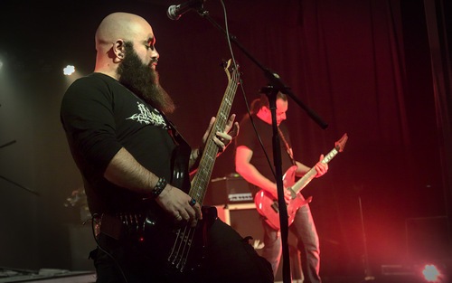 C’est l’association METAL IN VEINS, sous l’impulsion de l’infatigable John Correstan, qui présente cet événement. Dix groupes, tous français, se succéderont durant une douzaine d’heures sur la grande scène du Phaeton, certains dont la notoriété est bien établie, d’autres moins connus ou de création plus récente. Mais il faut le souligner d’emblée, ils ont en commun l’enthousiasme et le plaisir de jouer devant un public privé de concerts depuis de longs mois. Chacun de ces dix groupes fera tout avec son style propre pour que ce premier festival NEW BLOOD FEST soit une réussite. Et ce fut le cas, grâce aussi à une organisation impeccable, proche de la perfection, une équipe de bénévoles efficaces, sympathiques et dévoués, dotés d’un sens aigu de leurs responsabilités. Le plaisir des retrouvailles et la passion pour le rock metal expliquent aussi, bien entendu, l’éclatant succès de cette première édition du NBF, comme on dira désormais, peut-être. Il convient donc d’adresser de chaleureux remerciements à tous. Voyons maintenant le déroulement chronologique de la journée. Il est 11 heures lorsque le premier groupe prévu a le redoutable (!) honneur d’ouvrir la « cérémonie ». Il s’agit du quartette CRITICAL PINT, venu en voisin, d’Aix-les-Bains précisément.Ces musiciens qu’on devine chevronnés et heureux d’être là pratiquent un metal stoner avec des accents grunge, blues, voire punk , qui semble conforme au goût d’une douzaine de spectateurs (seulement), mais ce n’est que le début du festival. C’est une musique riche et variée que nos Savoyards nous ont gentiment servie pendant 40 minutes, une sorte de hors d’œuvre qui a donné le ton de la journée et réchauffé les frileux ! A midi, ce sont les jeunes Auvergnats de RED GORDON qui prennent le relais devant un public déjà plus étoffé. C’est d’abord leur jeunesse qui retient l’attention. Tao, le chanteur, et Aurélien (guitariste) ont créé le groupe en 2017 à Clermont-Ferrand, rapidement rejoints par leurs camarades Yohann (bassiste) et Noodle (batteur). . Ils sont des spécialistes du bon death metal, avec des accents néometal ou hardcore. Il n’échappe à personne que ces garçons jouent avec rigueur et grand sérieux un set bien préparé qui, manifestement, aura plu au public. Outre leurs qualités techniques, on découvrira en bavardant avec eux en fin de journée un côté attachant et fort sympathique. On reparlera de RED GORDON, les Clermontois, qu’on souhaite retrouver sur une scène de la région AURA. Bonne chance, les gars ! Dès 13 heures, le trio parisien NATURE MORTE investit la scène. Cette dénomination assez originale évoque pour moi le terme allemand « Stilleben » et certains grands musées.... Ces adeptes du black metal ont déjà une belle expérience (depuis 2015). On ne peut pas se tromper, il s’agit bien de BM comme on dit parfois. L’ambiance ne laisse aucun doute, deux flammes déposées au sol, lumière bleue et semi-obscurité sur la scène, un climat lourd, envoûtant, est ainsi créé. NATURE MORTE aura peut-être surpris certains spectateurs, mais plu à une majorité, pas nécessairement des fans de black metal. Belle découverte dans une région où ce style n’est pas souvent représenté dans les concerts. On souhaite les retrouver dans la région (en première partie de MARDUK ou MAYEM). Pourquoi pas ! 14 heures,déjà. Les régionaux de SHAYTAN sont prêts à nous délivrer leur set avec leur nouveau batteur, Vince,venu du punk rock. Les gars de Rumilly, en Haute-Savoie, se sont entraînés (!) fin août au Brin de Zinc (près de Chambéry), en compagnie de MORTUARY et CATALYST qu’on retrouvera tout à l’heure … SHAYTAN est une valeur sûre en matière de death-thrash, depuis 2011, un groupe suivi par un public fidèle. Ils sortent un « 12 titres », pour eux un événement qui compte dans leur parcours de 10 ans. Et ce n’est pas par hasard que cet événement ait lieu ici et maintenant. D’Jé (Jérôme), le chanteur, connu et reconnu, semble être le leader du groupe, mais y a-t-il un leader ? Un frontman, oui. On le connaît et on l’apprécie. Il annonce l’arrivée sur scène d’une « revenante » pour quelques minutes.Très applaudie, la sympathique Emilie, toute de noir vêtue, est connue dans la région. Elle était autrefois la chanteuse de L’EPOUVANTAIL, une formation savoyarde aujourd’hui disparue. Quoi qu’il en soit, le public adhère au répertoire de SHAYTAN, de plus en plus de spectateurs se massent contre les barrières un peu trop éloignées de la scène. Pas encore de pogo, mais on tient le rythme. Et maintenant c’est au tour des Grenoblois de HELLIXXIR de se produire devant un public de connaisseurs et d’amis, mais aussi de gens jeunes et moins jeunes qui n’ont jamais eu l’occasion d’apprécier leur spécialité, à savoir une sorte d’alliage de dark metal et de thrash avec de forts accents de black metal. Le groupe fut fondé en 2001 avec Matthieu Laforêt dit « le boss », toujours présent, il bénéficie d’une belle notoriété, dans sa région d’origine et bien au-delà. Plusieurs albums ont été produits au cours de ces 20 ans, « The Black Fortress » étant le plus récent. Les quatre musiciens (batteur, guitaristes et bassiste) laissent leur camarade Alexandre Manin, le chanteur, occuper la première place, accroché à son gros micro, il maîtrise brillamment tous ses textes, notamment ceux du quatrième album cité plus haut. Comme ses collègues, HELLIXXIR n’a pas eu beaucoup d’occasions de jouer en raison des restrictions liées à la situation sanitaire, notons par ailleurs que le groupe a connu ces dernières années quelques modifications de line-up. Chaleureusement applaudis, nos cinq Grenoblois garderont un bon souvenir de ce premier NEW BLOOD FEST. Le sixième groupe qui va se produire sur la scène du Phaeton s’app