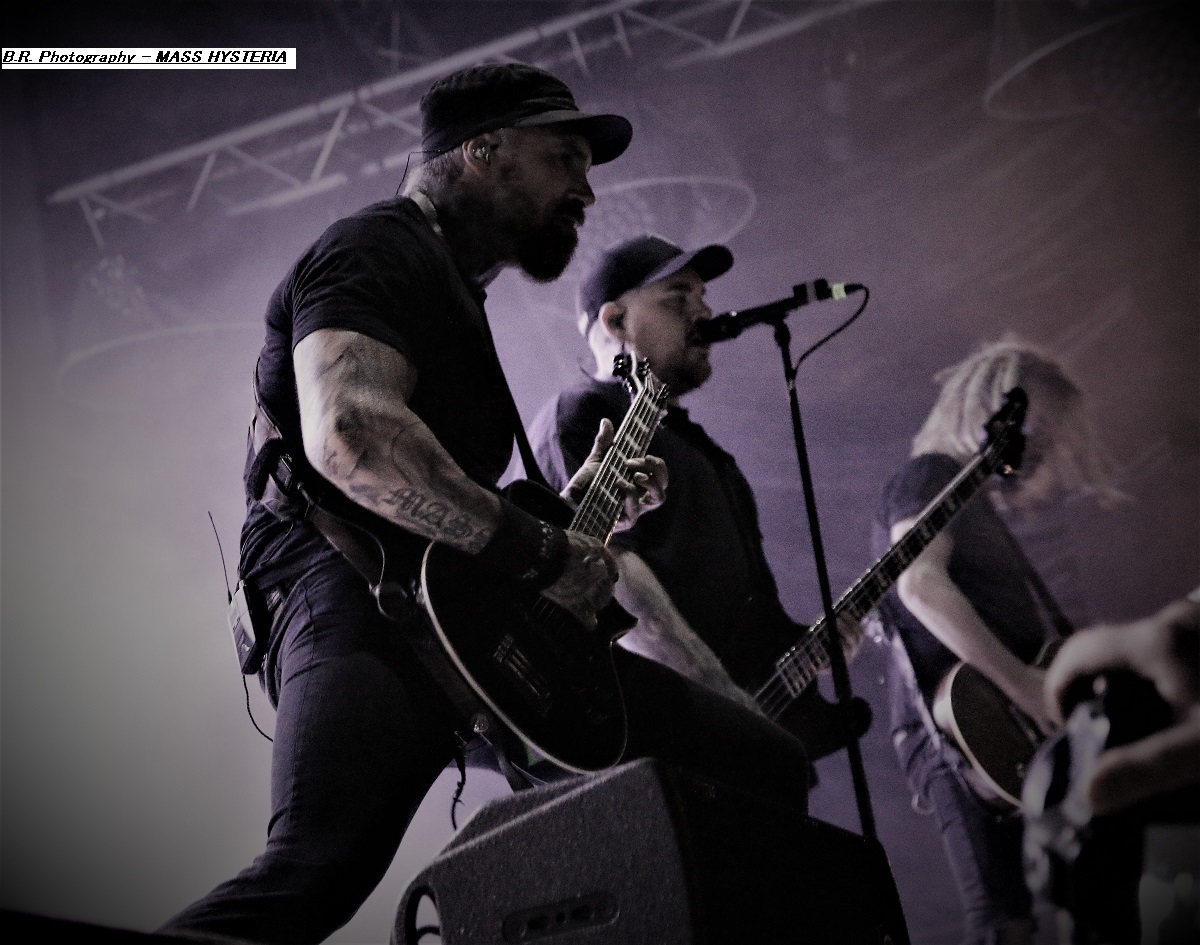 Cette p^lumière journée va nous offrir les prestations de EVER AFTER, AKIAVEL, SUASION, BLIND GUARDIAN, NIGHTMARE, MASS HYSTERIA, VERTEX et MYRATH. Huit groupes donc en alternance sur les deux scènes, le Terminal 01 et le Terminal 02, alors musique ! EVER AFTER lance le son en fin d'après-midi avec toujours au menu cette passion et ce souci du détail dans un registre metal symphonique aux rythmiques plombées sur lesquelles chant cristallin et growls se placent à l'envi sur le tarmac de Montcul, ambiance déjà ! AKIAVEL va investir ensuite le terminal 1 devant un, public aux anges (au diable pardon !) pour un envol machiavélique (sic) fait de death et de groove aux accents old-school mais avec des déviances riffues imparables flirtant parfois avec le hardcore. Bref, pas déçu du voyage avec eux et c'est mérité ! SUASION en « guenilles », mais rescapé du crash se présente sur le terminal 2 afin de nous, faire goûter à son metalcore Belge et ils ont la « frite », classique celle-là ! Leur menu nous jette dans les cages à miel un son futuriste inspiré et ça marche, bonne découverte donc ! Inutile de vous présenter nos cousins Germains de BLIND GUARDIAN. Cette formation de power-metal fait partie des vétérans de heavy-metal mélodique à l'Allemande des 80's. Leur recette, des épopées à la Tolkien évidemment, des rythmiques envoûtantes et bien sûr des power-ballades pour les nostalgiques de ce metal d'anthologie. Le public, vieux ou jeune a largement apprécié je crois leur set se posant avec douceur et fermeté sur l'Est Lyonnais. NIGHTMARE atterri ensuite sur le terminal 2 sans encombre. Cette formation de heavy-metal à l'ancienne qui a su se renouveler au fil des décennies se présente avec sur scène maintenant leur nouvelle chanteuse Barbara va su convaincre encore et même plus ! Moi le premier car leur prestation m'a vraiment surpris tant musicalement que visuellement, amen ! MASS HYSTERIA quant à lui, va mettre tout le monde d'accord la nuit tombée avec son rock énervé, plus que du metal si vous voulez qui nous fait « groover » depuis trente ans déjà, eh oui ! Alors ce soir c'est la même présence scénique, la même magie des mots de Mouss, la même hargne pour les furieuses et les furieux que nous sommes. Soyons donc toujours positifs à bloc dans l'enfer des dieux, sans contradiction mais avec une nouvelle pépite nostalgique « où sont tous mes amants, tous mes amis » avec la voix centenaire en guest de Frehel, titre qui va nous surprendre encore une fois. Alors oui Mass Hysteria est tenace (sic) et nous aussi ! Les Lyonnais de VERTEX vont ensuite ravager bruyamment le terminal 2 à l'aide d'un metal alambiqué, puissant, accrocheur, fait de riffs tordus et de contretemps imparables, le tout destructeur de neurones. Et l'on retrouve dans leurs envois les (bonnes) influences polyrhytmiques d'un Meshuggah et les déviance indus d'un Fear Factory, à la sauce vertex bien entendu, on aime ! Place maintenant sur le terminal 1 au metal oriental des Tunisiens de MYRATH (avec deux français l'un aux fûts et l'autre aux claviers). Ici tout est somptueux musicalement parlant, les lights aussi. Ici on joue avec le feu dans tous les sens du terme et des danseuses parcourent la scène en arabesques voluptueuses. Vous l'aurez compris Myrath mixe son metal avec la musique originelle de son pays de façon remarquable. Son énorme, technique irréprochable, mise en scène incroyable, toute leur musique nous a fait voyager sans crash ce soir ! Fin de la première journée tard dans la nuit et nous reprenons l’avion du sommeil réparateur afin d’atterrir à Montcul demain Samedi, même lieu sur la piste de Colombier-Saugnieu pour, qui sait, un nouveau crash musical en bout de piste sur les deux terminaux. |