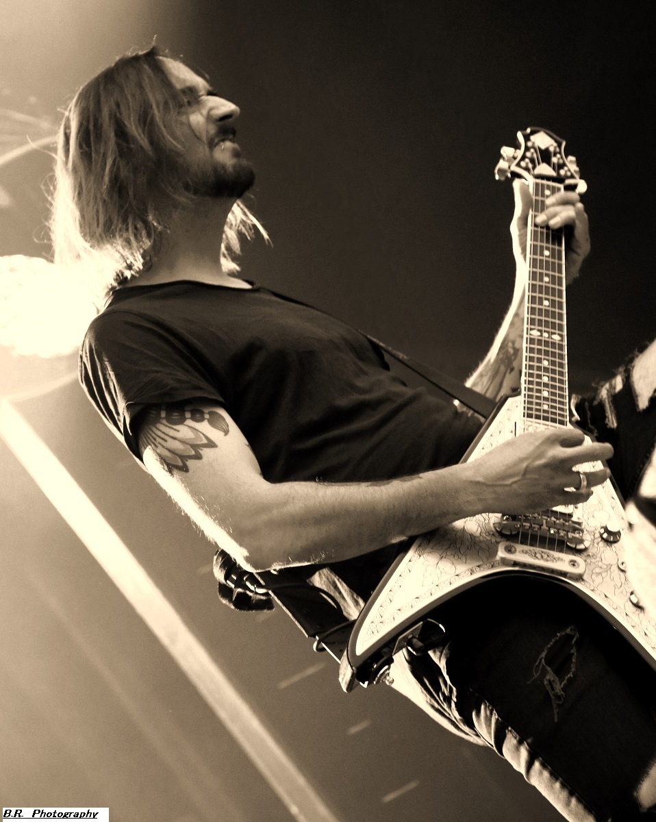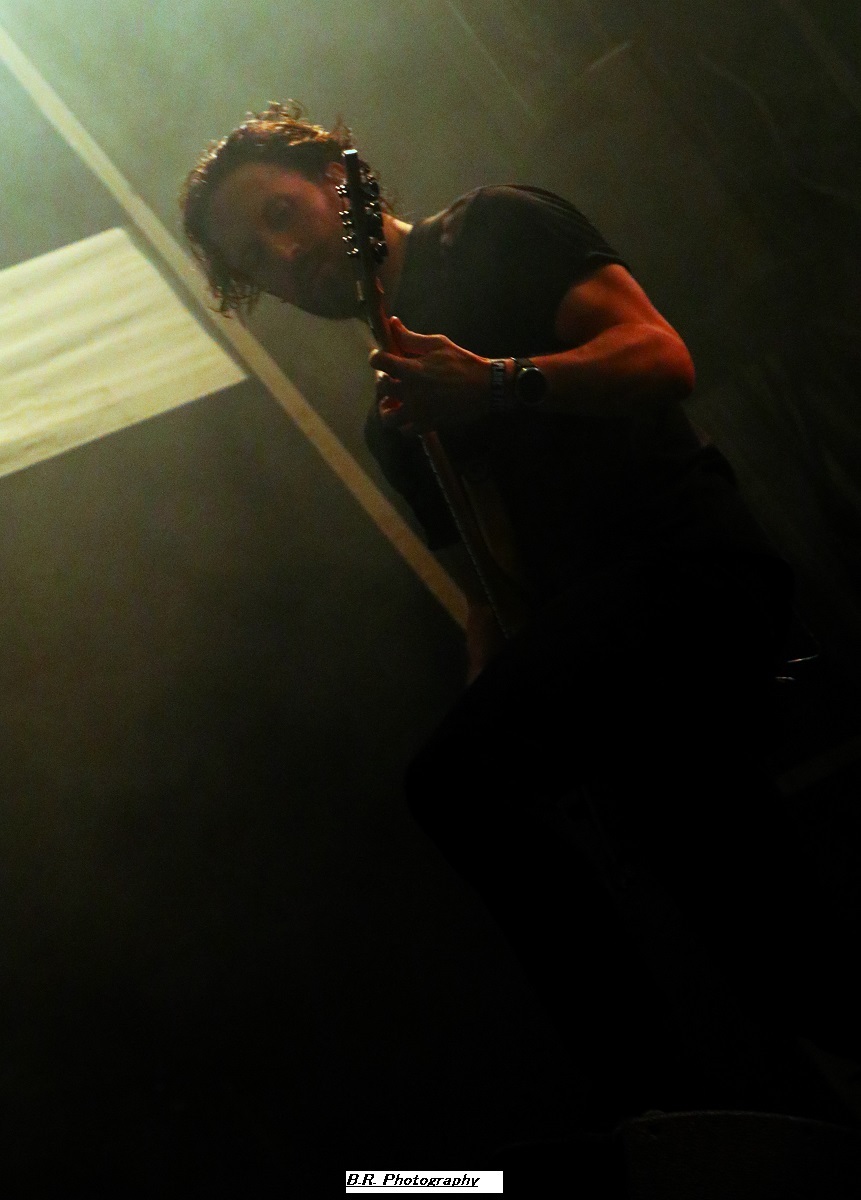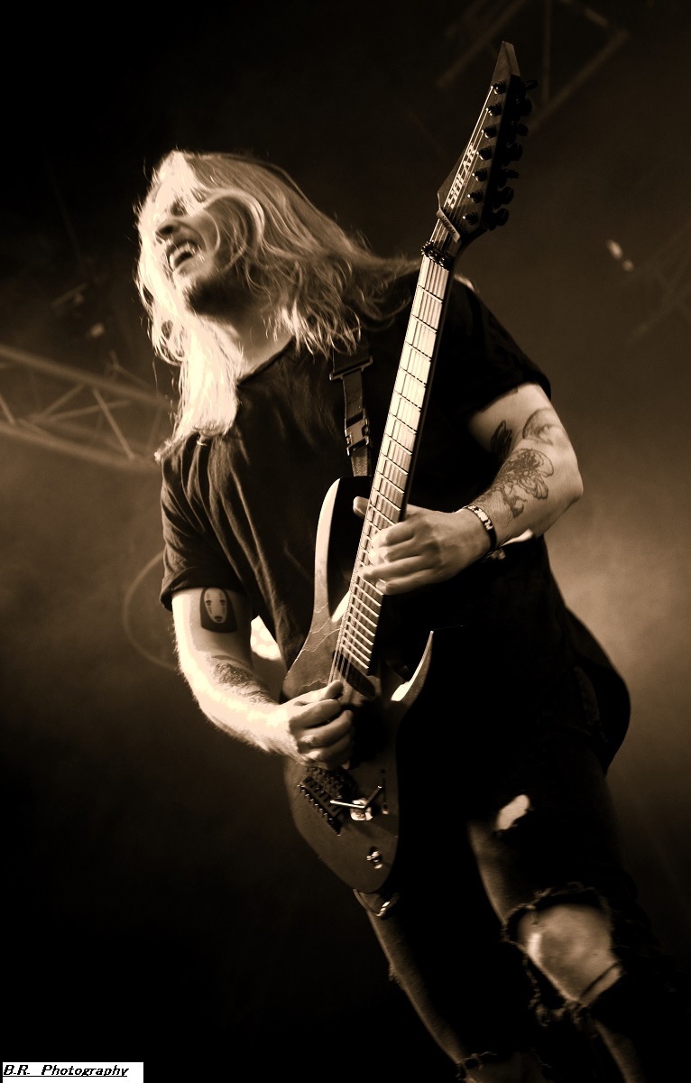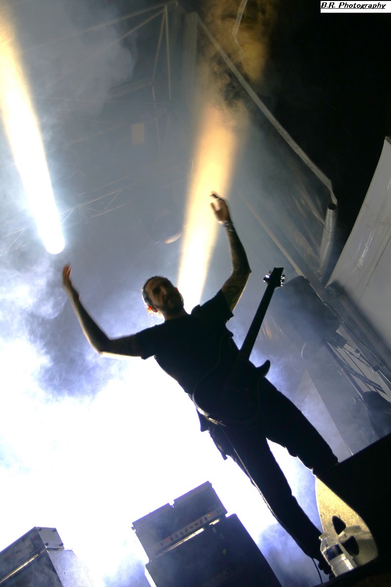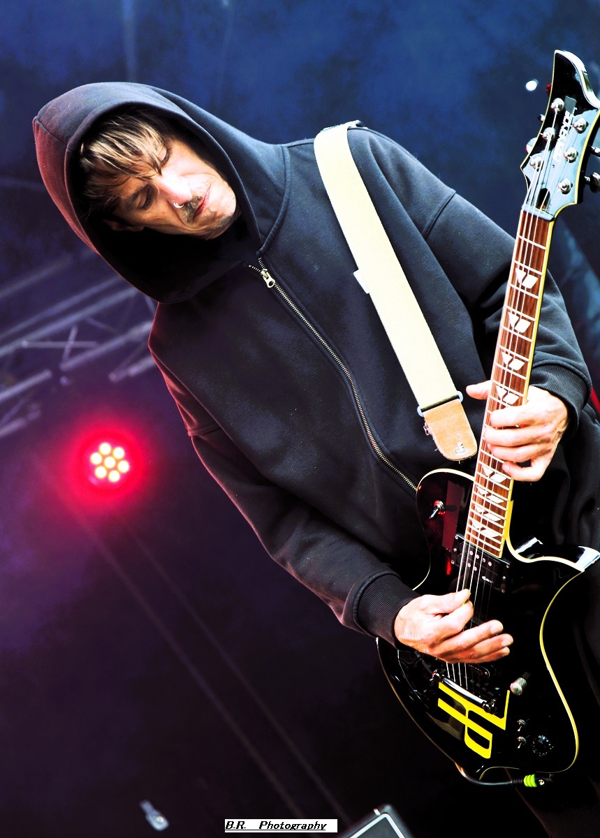 Allez, dès 15 heures, on se dirige vers les crash-barrières du Terminal 2 afin d'apprécier (ou pas) ceux de Bakü, leur post-metal dérapant à l'envi sur du black metal, mais pas que. Les titres sont longs, lourds et très ambiancés. Bref, la prestation de Bakü sort des sentiers battus de par son nom de groupe et de par sa musique où l'on ressent une certaine influence de Cult of Luna. Groupe intéressant en fait, et le public a certainement apprécié leur démarche. Changement de scène ensuite, changement de décor, changement de style avec, sur le Terminal 1, le heavy metal d'Animalize. Avec eux, nous retrouvons tous les clichés de la scène heavy des années 80 avec en filigrane des groupes qui ont marqué l'époque comme W.A.S.P, Annihilator, Tokyo Blade, ou encore Loudness et Warning. Animalize redonne donc un coup de jeune au heavy metal à la française en y ajoutant des avancées plus modernes lorgnant parfois vers un certain thrash et un certain hardcore (oui, oui !). Bien, après cette démonstration sans faute cet après-midi à Montcul, on peut dire que ces jeunes loups lyonnais en ont dans leurs « moule-burnes » et vont aller loin, il me semble ! Retour au Terminal 2 pour un certain rock-metal moderne, nerveux et coloré avec les Parisiens d'Ashen. Leur musique sort des sentiers battus du metalcore pour du « new core » si ce terme nouveau peut être avancé. C'est frais, nouveau, alternatif si vous voulez, avec des envois dynamiques. Sur scène, pas de lumières éteintes mais des envois puissants sans être dangereux, comme ils le disent ! Eh bien, nous avons aimé tout simplement leur set. Voici maintenant les Japonaises de Hanabie qui débarquent sur la scène du Terminal 1 en virevoltant et en brandissant le drapeau bleu blanc rouge ! Yukina, Hettsu, Matsuri et Chika viennent donc en France nous offrir un certain metalcore à la japonaise, alors kon'nichiwa les filles ! Ces filles ne font pas que chanter comme leurs compatriotes de Baby Metal. Ici, ça joue, ça joue plutôt bien même, et l'alternance de chant clair, de « growls » et de voix hurlée fait la différence. Et puis, quelle dynamique sur scène, quels visuels colorés et originaux avec des shorts bloomer, des jupes en tulle, et des salopettes, etc. Des tenues qui les font sentir jeunes et girly ! Niveau ambiance devant la scène, inutile de vous faire un dessin, l'accueil est survolté pour un public qui semblait impatient et curieux à la fois. Pari gagné encore une fois pour les filles de Tokyo nourries au wasabi ! Mais, déjà durant le set d'Hanabie, il a fallu couvrir les appareils photo sous un début de pluie. Et à la fin de leur prestation, peu avant 18 heures, l'orage a éclaté soudainement et ce fut le déluge. Alors pour nos amis de Smash Hit Combo, nous sommes (les photographes) restés à l'abri, dommage ! Pour le set de Ko Ko Mo, nous avons ensuite bénéficié d'une accalmie notable et nous nous sommes rendus devant le Terminal 1 à 19 heures 10. Ko Ko Mo, c'est un groupe de hard-blues nantais composé de deux musiciens : Warren Mutton, chant/guitare, et Kevin Grosmolard à la batterie et aux chœurs. Ici, nous naviguons sur les eaux troubles de la musique des seventies marquée notamment par Led Zeppelin, un Led Zeppelin qui a fortement influencé le duo. Sur scène, ce duo sait occuper l'espace et les compositions offertes vont du delta-blues au hip-hop en passant par l’électro. Ici, pas de « copie » de Led Zep ou encore de Rory Gallagher, mais des envois originaux et aventureux qui ne renient pas en fond d'écran les « bases » des années 70 comme dit précédemment. Tout ceci se révèle très intéressant en live, bonne musique, belle présence ! Les Grecs de Villagers of Ioannina City se retrouvent à 20 heures 15 sur la seconde scène afin de nous faire goûter à leur rock/metal/stoner/folk. Cette formation fait progresser un certain stoner-rock à l'aide de dérives folkloriques en utilisant, outre les classiques guitare/basse/batterie, des instruments plus traditionnels comme la clarinette et une espèce de cornemuse locale. Leur stoner/prog bénéficie d'une certaine originalité qui amplifie leur dérive psyché sur des rythmiques tantôt lourdes, tantôt bien enlevées, à l'aide d'une forte rythmique audacieuse. Prestation intéressante donc à plus d'un titre, nous avons aimé ! C'est toujours avec un certain plaisir que nous retrouvons en live nos « petits Suisses » d'Eluveitie. Leur compromis entre le folk et le death metal mélodique fait honneur à toutes les scènes depuis leur formation en 2003, il y a 21 ans déjà ! Bien sûr, il y a eu tout au long de leur carrière de nombreux changements de line-up, mais le groupe dirigé par Chrigel Glanzmann est resté fidèle quand même à ses racines celtiques pour les inspirations. Alors, ce soir, nous naviguons avec ces musiciens dans les méandres épiques de leur folk/metal avec toujours cette émotion particulière qui nous prend à la gorge parfois. Et durant 1 heure 10 de set, nous avons voyagé au fil du temps qui passe comme un rêve inachevé ! Il était attendu et il est arrivé pour la fin, le fameux titre « Inis Mona » fut repris en chœur par un public concerné, amen ! Le moment est venu ensuite de mettre sur vos têtes des lampes frontales afin de participer à la grand-messe post/hardcore de Celeste qui se produit sur le Terminal 2 dès 22 heures 20. D'entrée de jeu, la formation nous fait plonger en apnée dans une autre dimension, celle des ténèbres lumineux (ah bon !) et ses dérapages vers un black metal noir comme de l'encre qui ne vont pas arranger les choses. Au programme, noirceur, rythmiques lancinantes nous propulsant dans notre moi intérieur à l'aide de hurlements. Nous avons donc dégusté du Celeste dans tous les sens du terme, aargh ! Le groupe parisien Rise of the North Star, qui soit disant a fait de ses influences la vie des bas-fonds de Shibuya dans le Japon de
