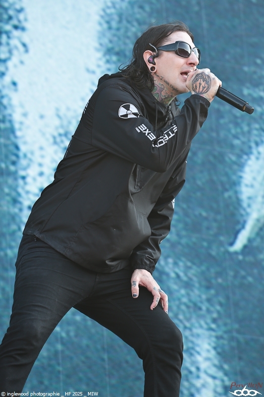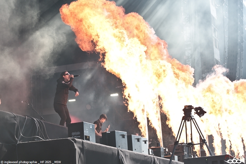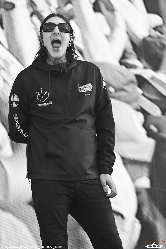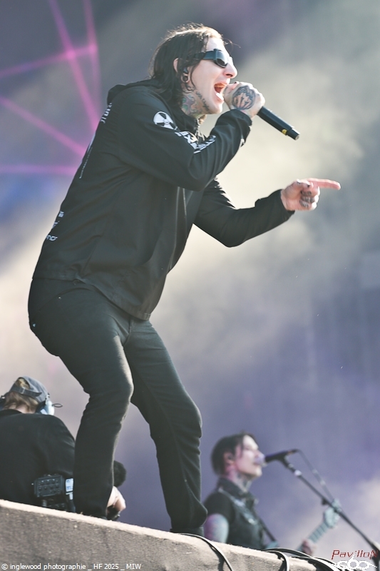Deux jours et deux ambiances, un samedi sans aucun passage sur les mainstages et un dimanche entièrement consacré à celles-ci, la vie d’un festivalier quoi, pleine d’éclectisme, d’envie de découverte et d’ouverture d’esprit, tant de qualités manquantes aux haters du festival. Samedi 21 juin : Lunar Tombfields - Atmospheric Black Metal Le (jeune) duo nantais m’a véritablement transporté. Une belle intensité mêlée aux dissonantes harmonies atmosphériques portée par les titres de l’excellent dernier album « An arrow to the sun », voilà ce que Lunar Tombfields a proposé à une Temple séduite et impressionnée. Les amateurs ont apprécié cette ½ de chaos, même si, à 11 h du matin, ça fait tôt. Witch Club Satan - Black Metal La sensation de mon HF, le trio Witch Club Satan. Une ½ de pure folie furieuse par trois sorcières norvégiennes. Un black metal/punk aride et brutal, des textes hurlés évoquant les ancêtres et les femmes brûlées vives sur les bûchers. Des musiciennes habitées et engagées qui ont conquis un public médusé mais ravi d’avoir assisté à une telle prestation. Merci au HF de nous proposer de telles pépites relativement underground. Urne - Progressive Metal J’avais déjà eu l’occasion de voir Urne en 1er partie de plusieurs groupes et je dois bien avouer qu’à chaque fois, j’ai été conquis, ce qui n’est pas toujours le cas de tous les groupes de 1ère partie. Un stoner/sludge bien rentre dedans, massif et puissant mené par un chanteur/bassiste impressionnant, voilà la recette des Anglais pour nous mettre K.O. C’est irrésistible, on ne peut qu’adhérer, une véritable réussite. Persefone - Progressive Death Metal Ne nous mentons pas, à 16 h sous l'Altar avec près de 40°, on commence à accuser le coup ! Cela n’entamera pas notre désir pour Persefone et son death metal mélodique. Séduits, nous le fûmes : un set parfait, des chansons poignantes et un chanteur souriant, j'ai beaucoup apprécié. Grima - Atmospheric Black Metal Grima, c’est clairement le groupe qui monte. Les Russes mêlent pagan/folk/black avec aisance et qualité. Ajoutez à cela une mise en scène et des costumes magnifiques, vous tenez une valeur sûre du genre. J’en suis resté charmé et ébloui. Abbath - Black Metal Bon, quand le patron décide de nous faire un set d’Immortal avec ses copains, afin de remettre les pendules à l’heure, on dit quoi ? Eh bah, rien, on se tait, monsieur, et on prend sa claque. Est-il vraiment besoin de vous dire à quel point c’était délectable ? Je ne pense pas, j’ai vibré, chanté et remercié Abbath Doom Occulta pour ce cadeau. Leprous - Progressive Metal Peu importe le nombre de fois que l’on assiste à un concert de Leprous, l’émotion reste intacte. Un chanteur charismatique, des titres épiques, de véritables épopées, la recette du bonheur en quelque sorte. Reste le mystère d’une programmation sous l'Altar !! pour, très clairement, un groupe de Mainstage. Turnstile - Hardcore Punk Alors, qu'en est-il de cet OVNI Turnstile ? Intronisés comme la relève de notre scène bien-aimée, les gamins de Baltimore allaient-ils nous en donner pour notre argent ? Ce fut pire que ça… Rarement une Warzone fut aussi bouillante et agitée que durant le set des Américains. Les titres hardcore/pop/punk aident bien à la fiesta, c’est sûr, mais là ce fut bien plus que ça, une communion menée par un Brendan Yates un peu autiste mais très charismatique, des vagues de slammeurs, du mosh, de la sueur et une énergie communicative. Un grand moment d’exaltation collective bienfaisante, merci les mecs ! Même le boss Ben Barbaud était devant la scène pour assister à ça. Dimanche 22 juin : Ashen - Progressive Metalcore Une belle découverte pour moi, un groupe bien en place qui avait certainement beaucoup travaillé sa prestation. Des titres efficaces et une présence sur scène digne des plus grandes pointures du style. Ashen a gagné des fans ce dimanche. Novelists - Progressive Metalcore Ce groupe est, pour moi, LE groupe du moment. Un album parfait, des textes puissants et des titres aux riffs marquants, Novelists est parfaitement positionné dans son époque et mérite une reconnaissance mondiale. Le show proposé en ce dimanche matin était parfait, rien à reprocher. Camille au chant avait sans doute la pétoche mais ça ne s’est pas vu et les autres étaient tout sourire, un excellent moment. Poppy - Alternative Metal / Electropop Bof, encore une sensation des réseaux sociaux, j’imagine ? Aussi vite vu qu’oublié, de la pop teintée de guitares (peut-être), une jeune fille qui ne communique pas et des titres calibrés, next ! Lorna Shore – Deathcore J’avais été déçu du passage de Lorna Shore en 2023, trop froid, pas de communication et aucun mouvement sur scène. Cela a-t-il été mieux en 2025 ? Un peu, oui, déjà sur les interactions avec le public, Will Ramos s’est considérablement réchauffé et nous emmène plus avec lui. Cependant personne ne bouge de ses 2m², ça, c’est une constante. Sinon, musicalement, c’est une boucherie, quelle incroyable débauche d’énergie et de violence, c’est un rouleau compresseur qui nous a terrassés, Lorna Shore c’est à ressentir au moins une fois. Eagles Of Death Metal - Hard Rock Que dire ? Ce genre de prestation n'est pas désagréable car le gars est sympa, avenant et super bon communiquant, les titres efficaces et tout est bien ficelé. Toutefois, on se dit qu’on s’ennuie un peu. Peut-être la fatigue, la chaleur ou les deux, je ne sais quoi penser. Motionless In White – Metalcore Un des fers de lance du metalcore, une référence du style, Motionless in White a cartonné sans peine, grâce à des tubes imparables, une bonne scénographie et un grand professionnalisme. J'étais entouré de fans enjouées qui chantaient absolument toutes les paroles, une joie communicative et même si ce n