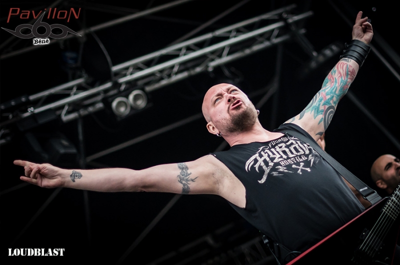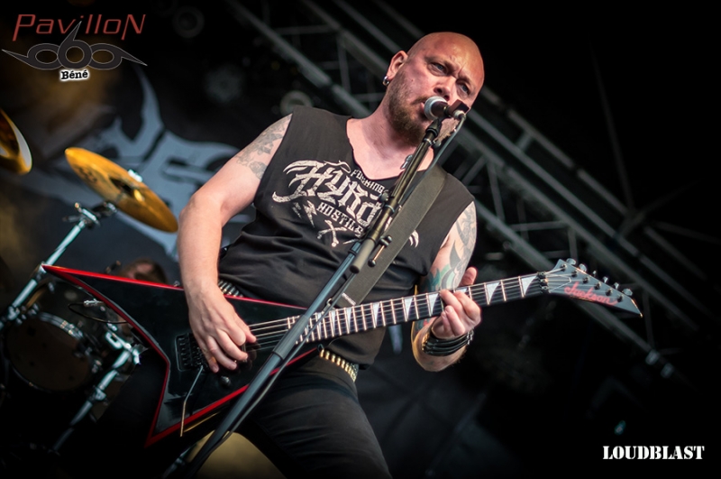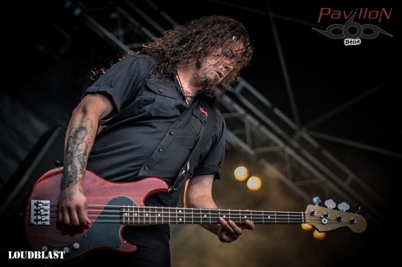 ANTICORPSE a pris place sur la Dave Mustage et est chargé d’ouvrir les hostilités pour ce troisième et dernier jour. Groupe de la scène locale, ANTICORPSE a donc pour mission de réveiller le public. Vraiment épars au départ, celui-ci va petit à petit se rassembler. Les bretons vont nous livrer un black/death vielle école efficace, dans lequel se fait tout de même ressentir un son trashy. Ils sont un peu trop statiques à mon goût, mais ça prend tout de même et leur set se boit bien. Dommage que le public soit long à se motiver pour rejoindre les scènes, ANTICORPSE aurait mérité un peu plus d’intérêt. C’est MOBÜTU qui enchaîne sur la Supositor Stage. Le combo va me mettre la première claque de la journée ! Y’a pas à tortiller des fesses ça envoie et pas qu’un peu. MOBÜTU c’est pas compliqué…tu prends du Motörhead, du punk, un chanteur avec des cheveux qui me rendent jalouse, une énergie de malade. Tu secoues bien fort et voilà ! Ils défendent aujourd’hui leur EP « Axl Rose is dead », à écouter de toute urgence ! Pour ceux qui n’étaient pas encore réveillés, c’est maintenant chose faite et les têtes se secouent du début à la fin. Retour à la scène principal pour assister au set des Caennais de HEADCHARGER. Forts de 5 albums, dont le dernier « Black Diamond Snake » est sorti en avril dernier, ils sont à l’aise sur scène et n’auront aucun mal à rallier le public à leur cause. J’ai passé un moment sympathique sans être pour autant transcendée. Leur dernier album reste cependant très bon, le meilleur des cinq selon moi, et c’est avec plaisir que j’ai retrouvé certains de ses titres en live aujourd’hui. Les parisiens de Qantice attendent leur tour sur la supositor, pour nous proposer leur symphonic power metal. Je tiens à te dire que j’ai longtemps cherché comment écrire les choses concernant Qantice de manière à ne pas être trop méchante. J’en suis arrivée à la conclusion que je ne suis pas méchante, j’émets juste un avis. Et si je suis méchante…et bien tant pis. Déjà la tenue kitsch à souhait du guitariste m’a bloquée d’entrée. Un ensemble de cuir blanc avec des bottes de moto blanches… Bon…soit…passe encore. J’ai ensuite vu une violoniste je me suis dit « tiens ça va peut-être être différent de ce que je peux connaître… Eh ben non ! Le problème c’est qu’ils ont joué… Ce groupe est à lui seul tout ce que je ne supporte pas. La voix qui va chercher des notes qu’elle n’est pas capable de gérer m’a filé des acouphènes, la tenue total white du guitariste m’a provoqué un décollement de la rétine, le jeu de scène surjoué du chanteur m’a juste exaspérée… Je pense que si j’avais eu un truc lourd sous la main je l’aurais lancé… Mais tout ce que j’avais c’était mon appareil photo… Tu comprendras que j’ai renoncé… Bref tout sauf ce que j’aime, je n’avais qu’une envie : que ça cesse. J’ai passé là les 45mn les plus longues du festival. A ma grande surprise le public a semblé apprécier, donc tant mieux pour Qantice je dirais. Les goûts et les couleurs tu connais la suite… Techniquement, si on isole chacun des zicos ils ne sont pas mauvais, ils sont même bons ! En particulier le guitariste. Mais Qantice c’est tout sauf mon truc tu l’auras compris… Je me rend donc à la Dave Mustage pour voir les japonais de Church of Misery. Je ne les connais ni d’Eve ni d’Adam. Certains les qualifient comme un groupe de doom d’autres les jugent indéfinissable… Je ne sais donc pas trop à quoi m’attendre… Ils arrivent. Le bassiste a sa basse sur les pieds (il doit coûter cher en sangle). Le chanteur arrive avec un large sourire et les doigts en « V »… Pantalons pattes d’Eph de mise…Peace and love quoi… Le public leur réserve un accueil plus que chaleureux et s’est regroupé en masse pour assister au show des japonais. Le set débute fort, et je dois reconnaître que sous l’aspect « on a fumé des trucs pas clairs » il y a des musiciens terriblement bons. Le bassiste joue directement sur le manche, le chanteur est habité du début à la fin. CHURCH OF MISERY fait dans le doom/stoner de qualité. Une belle découverte et un très bon moment à ma grande surprise! De retour sur la plus petite des deux scènes pour INQUISITION. Ils sont colombiens, basés à Seattle et font du black metal. Première surprise : ils ne sont que deux sur scène. Dagon à la guitare et au chant et Incubus à la batterie. La voix de Dagon est particulière mais j’accroche bien. Le show est carré de chez carré, aucune communication avec le public et aussitôt le set terminé, aussitôt nos deux comparses se sont fait la malle. Seul bémol technique : le son en début de set. Le duo est performant, tellement qu’au final on oublie au bout d’un moment qu’ils ne sont que deux. C’est froid, noir et glauque. Le public adhère, what else ? Au total le groupe jouera huit morceaux : 1. Force of the Floating Tomb 2. Nefarious Dismal Orations 3. Command of the Dark Crown 4. Those of the Night 5. Embraced by the Unholy Powers of Death and Destruction 6. We Summon the Winds of Fire (For the Burning of All Holiness) 7. Desolate Funeral Chant 8. Master of the Cosmological Black Cauldron 9. Astral Path to Supreme Majesties 10. Infinite Interstellar Genocide Nous avons maintenant rendez-vous avec le groupe KORITNI sur la mainstage. On passe à un autre genre musical avec un rock heavy aux sonorités blues. J’ai bien aimé la voix de Lex et le groupe fait preuve d’un dynamisme à toute épreuve. Un moment sympathique sans pour autant me marquer plus que ça. Le moment du set restera la reprise d’ « Antisocial » de Trust en anglais façon Anthrax. Le public quant à lui était vraiment emballé et les a ovationnés. 1. Take a Long Line (The Angels cover) 2. Down at the Crossroads 3. Tv's Just a Medium 4. Money Talks 