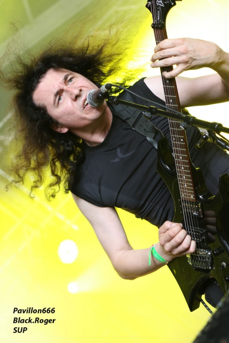 HYPNO5E 10h30 - 11h00 Quelle émotion de voir ce groupe, que j’ai vu jouer à Golbey devant approximativement cinq personnes en 2013, jouer cette fois devant autant de public (la Altar plutôt bien remplie). Quelle émotion de voir tant de gens attendre ce petit groupe à 10h30 et de me rendre compte que ce petit groupe réussit peu à peu tracer son chemin avec sa musique complètement folle… Passages sublimes (Gehenne) et passages ultra brutaux (Tutuguri), tout était présent pour faire découvrir au public la richesse de composition d’Hypno5e. Grande ambiance matinale, grand concert ! Ne ratez pas l’expérience Hypno5e sur album et en concert ! THE GREAT OLD ONES 12h15 - 12h45 Restons français avec le set de THE GREAT OLD ONES. Les bordelais d’atmospheric black/post-black qui ont joué sous la Temple n’ont pas échappé à la malédiction du son plus que moyen, ce qui a considérablement altéré la qualité du concert. Pour les avoir déjà vu à Arlon en 2014 avec Regarde les Hommes Tomber, je sais à quel point leur musique prend aux tripes et enveloppe lourdement le public dans ses ambiances magnifiquement sombres. Forcément, les mélodies n’étant pas aisément discernables, le concert normalement très bon a été quelque peu gâché. Je me rassure toutefois en me disant qu’ils n’ont pas joué la sublime My Love for the Stars (Cthulhu Fhtagn)… et qu’ils ont privilégié le nouvel album, que j’aime un peu moins qu’Al Azif. ETHS 12h15 - 12h45 Curieux de revoir les marseillais avec leur nouvelle hurleuse Rachel. Dix ans au compteur pour ce groupe majeur de la scène nu-métal de chez nous en France. Le groupe a évolué vers un métal plus « rentre dedans », moins tordu l’on va dire et cela lui va très bien, bon mélange de métal et de hardcore avec les riffs remarqués de Staif comme à l’accoutumée. Mais, car il y a un mais, difficile pour moi d’éffacer le souvenir de Candice. Non pas que je fasse du passéisme classique dans ce cas là, mais parce-que Rachel ne m’a pas satisfait du point de vue vocal car un peu trop souvent à l’ouest notamment dans les passages en voix claire, dommage… A revoir donc dans d’autres conditions car j’espère que ce n’était que passager. THE HAUNTED 12h50 - 13h30 Je repasse à la mainstage 02 après un petit tour de grande roue, et oui ! Sur cette scène THE HAUNTED lâche les chevaux thrash avec un son à décorner un troupeau de buffles en rut. Depuis presque 20 ans et 8 albums au compteur les Suédois n’ont jamais vraiment réussi à « décoller ». Et pourtant malgré les « allez-retours » de chanteurs le groupe cartonne dans un thrash/death mélodique qui a su nous accrocher les oreille à chaque fois, avec une tendance orientée métalcore assez groovy au final sans renier ses antécédents plus brutaux. Musiciens au taquet, compositions interèssantes et qui font mouche, on continue à les apprécier en live c’est certain. SUP 12h50 - 13h30 SUP à l’Altar, pourquoi pas ! Ce groupe frenchie s’appelant à l’origine SUPURATION hante depuis 26 ans la sphère métallique de l’hexagone. Pour ma part j’en étais resté à « The Cube » sorti en 1993 ! Alors quelles sont mes impressions 20 ans après ? Après tout ce temps les frères Loez ont sorti « CU3E » après « Incubation » afin de clore une certaine trilogie. SUP reste donc dans une lignée death-metal mais s’aventure comme toujours hors des sentiers battus et continue d’expérimenter. En ce début d’après-midi j’ai essayé de rentrer dans leur jeu en live. Et au final malgré l’alternance de riffs massifs et certaines harmonies en chant clair sur des compositions recherchées et de qualité, je n’ai pas réussi à m’extasier en fait, trop progressif peut-être. Est-ce grave docteur death-métal ? NE OBLIVISCARIS 14h20 - 15h00 le moment de NE OBLIVISCARIS est venu. Il s’agissait clairement DU groupe que je voulais voir sur cette affiche du Hellfest 2015. Pourtant à la suite de la diffusion du running order de cette édition, j’ai hésité à revendre ma place, ne supportant pas que les australiens jouent en même temps que Dark Tranquillity (l’un de mes groupes préférés que, certes, j’ai déjà plusieurs fois) et Russian Circles (groupe de post-rock/post-metal que j’écoute depuis des années et que je n’ai encore jamais pu voir sur scène). Après réflexion, j’ai donc décidé de voir Ne Obliviscaris. Il faut dire que j’ai découvert Portal of I peu après sa sortie en 2012 et j’ai été très impressionnée par cet album : par sa puissance et son esthétique musicale. Or, en 2014 est sorti Citadel, un chef d’œuvre majestueux, grandiose, que j’ai écouté en boucle pendant de longues semaines… Avec un pincement au cœur de manquer un possible Lethe dans la (trop courte) setlist de Dark Tranquillity ainsi que la fraicheur et le bonheur que Mikael Stanne transmet toujours à son public et avec une crainte de rater un possible Harper Lewis dans la setlist de Russian Circles, je me suis donc dirigée sous la tente de la Altar pour découvrir en live ce groupe d’extreme progressive metal que j’ai tant admiré (moi qui ne suis pas du tout fan de metal progressif, mis à part Opeth et Anciients). Malgré des défauts dans le son (quel dommage de ne pas bien entendre les growls de Xen qui ont l’air pourtant extrêmement puissants…), le set du groupe était absolument merveilleux. Le chant clair de Tim Charles était parfait (une bonne surprise, je craignais le contraire), ses parties de violon d’une grande beauté et son sourire éclatant – de quoi concurrencer ce cher Mikael Stanne et son éternelle bonne humeur et joie d’être sur scène, peu importe le public devant lui. Le set était par contre tellement court qu’il a été difficile d’admettre que le concert était fini (quatre morceaux seulement : Devour Me, Colossus (Part I): Blackholes, Pyrrhic, Painters o
