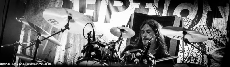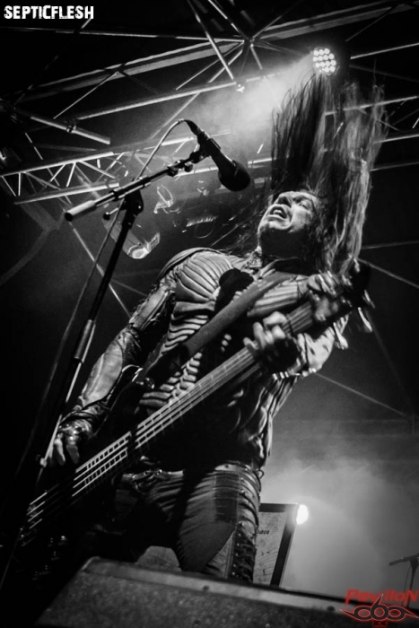 Les hostilités commencent avec un groupe de mon coin, dont je vous ai déjà parlé : DEFICIENCY. Ils ont rejoint l’affiche du fest un peu en last minute suite à un des désistements de groupe et ont donc la lourde tâche de motiver les troupes en ce dimanche matin. Et le moins que l’on puisse dire c’est qu’ils ne vont pas mâcher leurs efforts et qu’ils vont y arriver ! Les lorrains vont rassembler le public et un joli public se forme maintenant aux abords de la suppositor stage. DEFICIENCY provoquera le premier wall of death de la journée, j’ai fait ma flippée je me suis écartée ! Bah oui… j’avais l’appareil tout ça… hem… Bref nos quatre fantastiques vont secouer le Motoc à coup de thrash. Un thrash moderne, aux rythmiques efficaces et aux riffs accrocheurs. Anthony, habituellement batteur de son état est absent, mais est fort bien remplacé. Dommage pour le petit bug de son, mais celui-ci n’entachera en rien la prestation du combo. Vianney s’adonnera à un micro solo de basse improvisé qui aura le mérite de nous détourner du bug. Well done ! La setlist (merci Jérôme !) : 1. The Prodigal Child 2. Neverending Fall 3. Unfinished 4. The Experiment 5. The Introspection Of The Omnipotent 6. The One Who Possesses Me 7. The Fall Encore un super set que nous ont offert les DEFICIENCY, c’est toujours un régal de les voir en live. A droite toute pour assister à la prestation des CLITEATER. Avant toute chose laissons place aux vannes d’entrée en matière, on parle de chattes, de b****… bref le ton est donné ! Savant de mélange de goregrind, death et de… porno, CLITEATER ne fait pas dans la délicatesse ni dans la dentelle mais, même si on n’est pas dans un niveau technique de compète, c’est tellement bien exécuté qu’on ne peut pas leur en vouloir. Heureusement que Joost, au chant, saute partout et que Marten, à la batterie fait voler sa masse capillaire volumineuse façon Jackson 5 dans tous les sens, parce que le reeste du groupe est franchement figé. Mais bon, le groupe communique volontiers avec la foule et a un capital sympathie plus que notable. Direction la troisième scène pour les tchèques de GUTALAX. Ils devaient initialement jouer le premier jour du fest mais leur van est tombé en panne. Du coup, suite à l’annulation de DELAIN, GUTALAX a pu bénéficier du créneau. Bon si tu es en mal de douceur et de poésie ce n’est pas le moment. GUTALAX ne fait pas non plus dans la délicatesse, on va parler de caca, PQ et brosse de toilettes. Pour commencer nous assistons à un magnifique lancer de rouleaux de papier toilette, joyeusement envoyés par nos tchèques, vêtus de combinaisons anti-contamination recouvertes de…boue ou autre histoire de simuler de la…matière fécale… Avec des titres tels que « Licking The Brown Line Of Fat Old Granny Bitch », GUTALAX va littéralement déchainer le public avec leur grind/gore’n’roll, alliant chant porcin, screams et riffs puissants. Belle découverte que GUTALAX, en sortant du photo pit je me fais interpeller par un festivalier hurlant « LE CACA C’EST DE LA MEEEEERDE ! LE CACA C’EST DE LA MEEEEERDE » voilà tout est dit ! Retour à la mainstage où le changement est radical, nous passons d’un extrême à l’autre puisque c’est au tour des parisiens d’ALCEST de prendre place. Ils sont accueillis sont les acclamations du public. Neige, au chant, est d’un calme absolu. Il communique calmement avec la foule. Les mélodies sont savamment travaillées, justement exécutées… ALCEST nous fait voyager, où je ne sais pas vraiment mais au final est-ce important ? Dans la setlist on citera : Les Iris, Percées de lumière, Souvenirs d'un autre monde, Autre temps, Là où naissent les couleurs nouvelles et Délivrance. L’effet détente est absolu, je me dirige maintenant vers la Massey Ferguscene pour découvrir les québécois de DOPETHRONE dont m’a beaucoup parlé mon homologue canadien présent dans le photo pit. Difficile de définir DOPETHRONE, entre stoner et blues… La voix de Vincent se marie parfaitement aux sonorités du groupe, qui a cette petite touche en plus qui les démarque relativement bien des autres. Le chanteur harangue la foule régulièrement et cette dernière se fait un plaisir de lui répondre. Un très bon groupe, un très bon set, et une très belle découverte. Retour maintenant à la Dave Mustage pour découvrir MUEZLI, vainqueur de l’édition nantaise du headbang contest. Le public les accueille bien, le son est bon, le set est clean. Malheureusement, question de préférences personnelles, je n’accroche pas… J’ai essayé mais à aucun moment ils n’ont réussi à m’embarquer dans leur univers. Je leur reconnais cependant des qualités comme cité plus haut mais voilà la sauce n’a pas pris. Une autre fois peut-être qui sait… La foule elle semble conquise puisqu’elle s’est regroupée en masse devant la scène et les applaudit de bon cœur. Petit break le temps de boire un coup et de manger un morceau et je retourne vers la scène principale qui va je pense être sauvagement mis à mal puisque d’autres canadiens s’apprêtent à venir nous poutrer le crâne, j’ai nommé : KATAKLYSM ! Vus en juillet au Metaldays, KATAKLYSM avait fait trembler la Slovénie. Inutile de te dire que ce soir l’effet sera le même puisque les canadiens vont nous mettre une sacrée déculottée. On a tenté de prévenir la sécurité contre le raz de marée de slams qui allait arriver, les mecs l’ont pris à la rigolade. Mais pas longtemps. Bah ouais, Maurizio a titillé la foule en leur demander de se bouger, précisant que nous n’étions pas à un concert des Backstreet Boys (#rires). Du coup tu penses bien que les métalleux se sont déchainés et la sécu a été secouée elle aussi. Dix titres au programme : 1. To Reign Again 2. If I Was God... I'd Burn It All 3. As I Slither 4. At the Edge of the World 5. The Black Sh