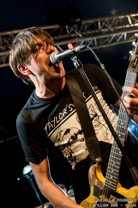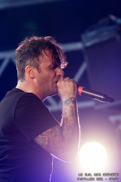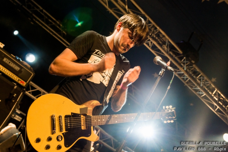 J’ai donc filé vers le petit chapiteau pour voir ce que deviennent nos trois p’tites betteraves se nommant GERILLA POUBELLE. Ils étaient déjà en train de sauter partout en criant. Ces mecs-là ne changeront jamais et resterons de grands adolescents toute leur vie. C’est rafraichissant. C’est juste dommage que les morceaux soient parfois introduits maladroitement par des tirades plutôt niaises. C’est souvent l’occasion d’entendre dans le publique un mec gueuler « Ta gueule et fais de la musique !!! ». J’ai trouvé cette interjection somme toute pertinente malgré tout le respect que j‘ai pour ce groupe depuis longtemps.