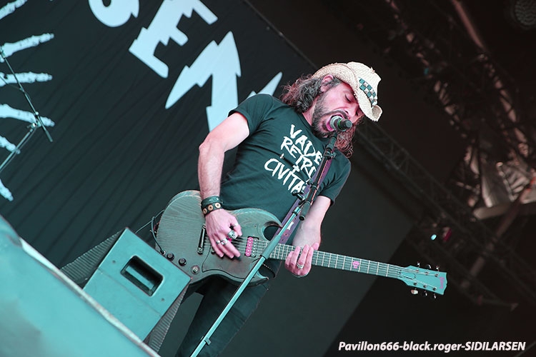 SIDILARSEN Sortis de la zone « tiède », les Toulousains de SIDILARSEN nous surprennent avec leur dernier opus « dancefloorbastards ». Et moi qui avait rangé le groupe dans une boite « boaf », je l’enlève de la poussière et je reçois en pleine poire leur prestation ce Vendredi 16 juin devant la Mainstage 1 du Hellfest. Tout y est enfin, le son, les compositions qui font mouche car riches d’idées et ces tempos version électro qui vous tabassent à 11 le matin. Set excellent tout simplement. THE DECLINE Je débute le vendredi par la Warzone et THE DECLINE, punk-rock breton. Plus rock que punk surtout dans les vocaux le quintette semble prometteur avec un quatrième enregistrement « heroes on emptystreets » bien apprécié par la critique. Belle occasion pour eux de jouer sur une scène du Hellfest, ils le méritent. MYRATH Fan de MYRATH je m’empresse ce vendredi midi de rejoindre la mainstage 1 qui les reçoit. Groupe Tunisien avec à la batterie un français, Morgan Berthet, Myrath nous offre un certain metal oriental progressif qui nous accroche de plus en plus depuis bientôt une dizaine d’années et quatre albums. Entre par exemple Symphony X et Dream Theater, ce groupe a su trouver sa place en introduisant un certain côté mélodique où tout un chacun peut reprendre les paroles. Ce midi devant déjà une foule importante Myrath a su convaincre encore une fois. BOOZE & GLORY Des mainstages à la warzone je traverse le site pour du street-punk avec les britishes de BOOZE & GLORY. En dix ans les Londoniens n’ont pas chômé en terme d’enregistrements et leur petit dernier de 2017 « chapter IV » va nous « péter » à la gueule au repas de midi et des poussières. Cette poussière parlons-en car elle sera présente devant la warzone durant tout le fest, alors les masques de toutes-sortes vont être indispensables. Mais revenons- en à nos keupons de la perfide albion dont la devise est « pas de triomphe, mais la lutte ». Et la lutte sera présente devant les barrières de sécurité avec un drapeau anglais qui surnage sur les flots des punks déchaînés. Booze& Glory attire donc toujours er c’est tant mieux ! BETRAYING THE MARTYRS Sens inverse Warzone-Mainstage 1 pour BETRAYING THE MARTYRS. La bande à Aaron poursuit sa lancée avec un troisième album plus ambiancé métalcore avec plus de mélodie et riffs variés. Mais le lourd reste bien présent également. Alors en live c’est très bon avec un bon son c’est encore mieux, exit la prestation de Lyon dernièrement où le groupe fut désservi justement par le son et les lights. Aujourd’hui sur scène au Hellfest,Betraying the Martyrs nous a comblé, point barre. ANIMALS AS LEADERS Concentrés de part les compositions complexes et techniques qu'ils présentent à une foule garnie, le trio est à son aise sur cet espace surdimensionné pour l'expression scénique proposée. Tosin et Javier, les virtuoses de la guitare, développent des lignes précises et mathématiques. La tenue rythmique assurée par Matt est à l'image de ses compères, soit propre et parfaite. Ce metal instrumental n'est pas des plus simple à appréhender mais il sait se faire captivant et entraînant. Force est de constater que l'assistance présente reste tout au long du set. VALKYRJA Direction la Temple maintenant pour apprécier (ou pas) la prestation de VALKYRJA. Les Suédois vont nous envoyer un black brutal de chez brutal. Ici on ne rigole pas, leur black est donc pur et dur même si par endroits les guitares s’essaient à un soupçon de mélodique pour calmer le jeu. Mais les blasts sont de rigueur et reprennent vite le dessus, c’est infernal, normal nous sommes au Hellfest. Ces Suédois ne se sont donc pas trompés de scène en démolissant la Temple. Ce fut brut, sans grande finesse, mais bordel que ce fut bon pour nous réveiller de la sieste en ce début d’après-midi. EVERGREY Malgré un set appliqué et des compositions accessibles, le challenge n'est pas simple pour les suédois. En effet, le public est convaincu et réceptif mais ce dernier ne se met pas en action. La communion ne se réalise pas entre la scène la fosse. Ce n'est pas faute d'avoir tous les ingrédients pour mettre l'euphorie et la liesse dans l'assistance. Le son est clair, les morceaux dégagent une certaine puissance, la présence scénique est consistante pourtant les spectateurs venus apprécier ce show restent discrets. EXHUMED Les vétérans du death « made in USA » EXHUMED on été « déterrés » afin de venir sur la scène Altar ce vendredi à Clisson. Après 27 années passées à nous égorger, nous dépecer et nous écraser les tympans, les Californiens de San-José ont toujours de quoi satisfaire nos envies de gore-grind-death avec subtilité parfois sur des rythmiques variées pour notre plus grand plaisir. Parfois des envois binaires donnent une touche groovy et rock n’roll à leur metal de la mort qui tue. Loin d’être « has been » ces ricains ont toujours leur place dans le brutal metal et c’est tant mieux. AVATAR La scène dite de Gôteborg en Suède ne produit pas que des groupes de death mélodique. Ainsi AVATAR s’est éloigné de cette scène en faisant preuve d’une certaine originalité de par un chant atypique, une musicalité accessible à beaucoup de monde et un côté théâtral particulier avec tenues et maquillages adéquat. Alors ça roule pour eux et c’est tant mieux, cela vaut le déplacement. TYR Le quartette sait être fédérateur sans tarder. De part des tires efficaces, garnis d'influences folkloriques, puissants et dynamiques, les musiciens embarquent toute la tente sur leur passage. Ce plaisir de fouler les planches, cette présence sur scène, cette intensité savent transpirer vers le public qui sait faire comprendre au groupe combien il apprécie cet instant. QUEENSRYCHE Depuis le départ de Geoff Tate, les membres du groupe ont su rebondir et entamer une seconde partie de carri