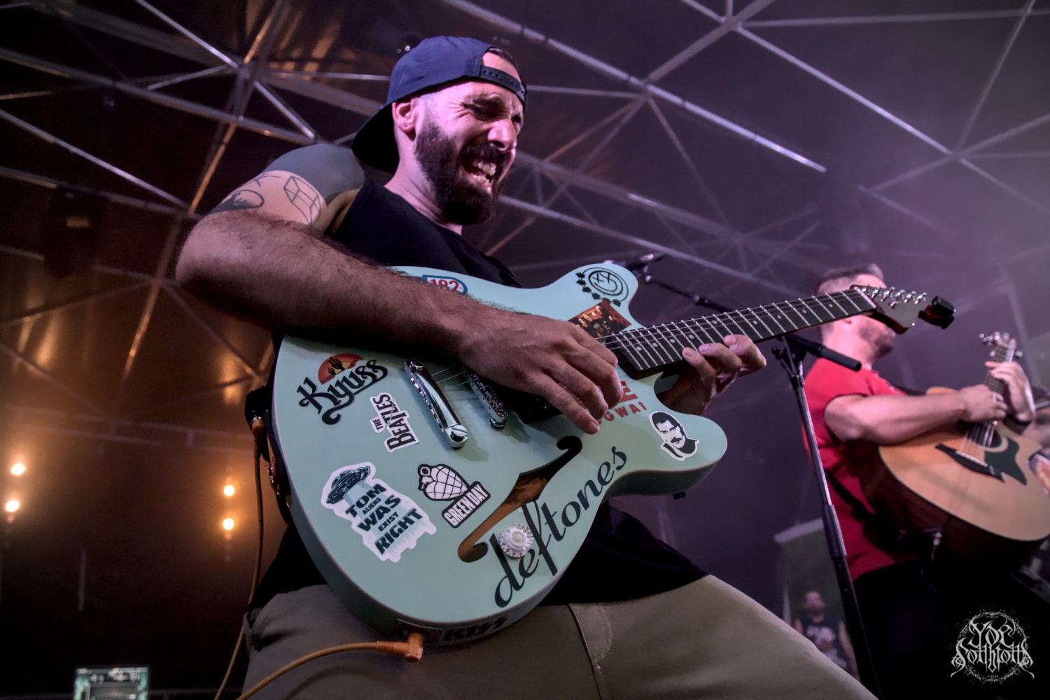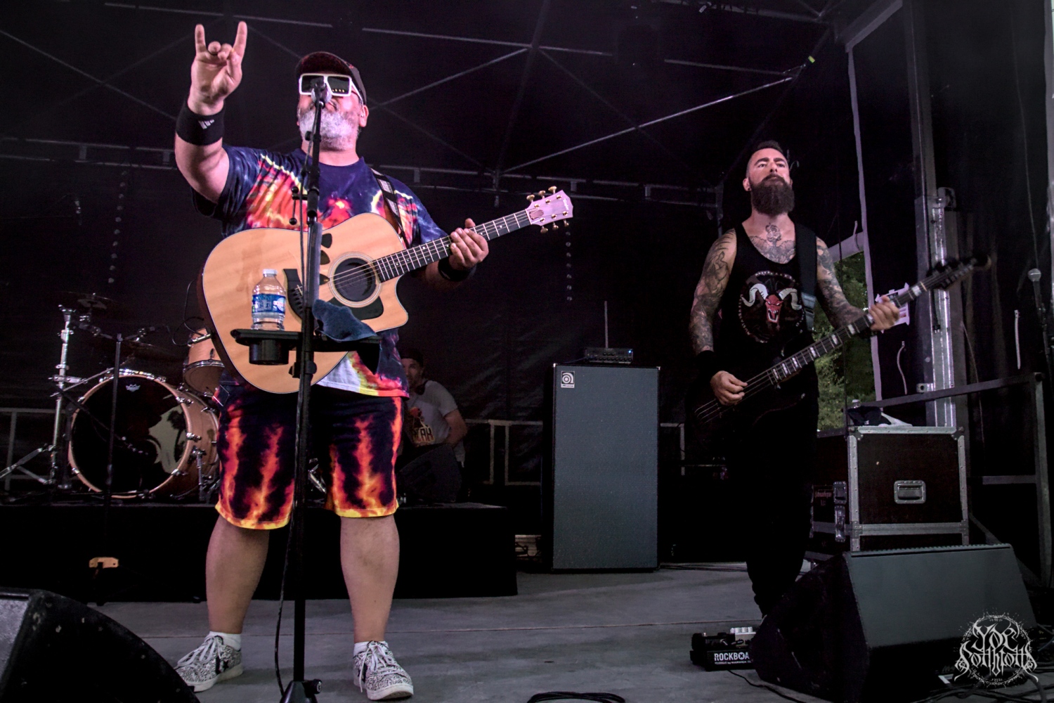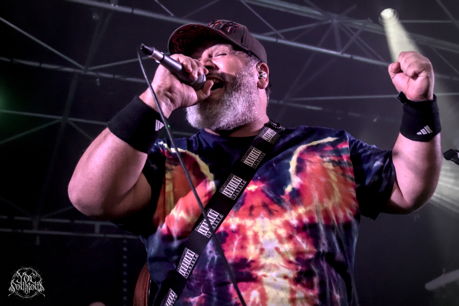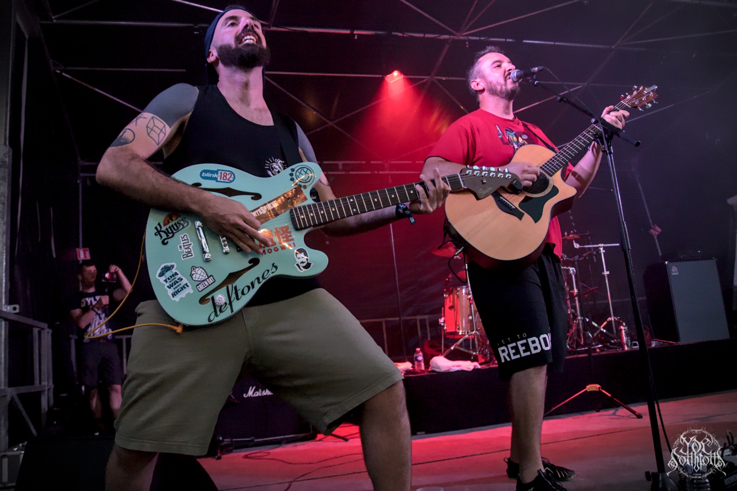 Open Air « Support Your Local Artist Krew » Festival métal emblématique de la région Rhône Alpes affichait encore une fois,Sold Out depuis pratiquement un mois. comme c’est le cas depuis 4 ans. Basé sur les berges de l’Ain sur le stade de la commune de Saint-Maurice de Gourdans , ce festival rassemble environ 10 000 personnes sur les trois jours , il dispose d’une organisation rodée et fluide des plus agréables pour les festivaliers. Vendredi 16h30 ouverture des portes, on file au cashless puis au bar pour se désaltérer avec quelques boissons houblonnées, à peine le temps de finir les verres et de discuter un moment que ça attaque. 17:30 – Perseide En ce début août période d’observation des étoiles filantes , qui de plus approprié que les lyonnais de Perseide pour donner le coup d’envoi cette 12 em édition. Cette bande de potes d’enfance originaires de Saint Laurent de Mure nous offre un show carré, leur Deathcore moderne assez mélodique, parfois même teinté de pop dégage une certaine énergie, le public captivé dès le premier titre ne si trompe pas et commence déjà à bouger ! 18h35 _ Bind Torture Kill Faisant référence au tueur en série américain Dennis Rader ce trio local est composé d’ Olivier au chant, Benjamin aux fûts et Yann à la guitare. Après quelques minutes d’attente juste le temps de remplacer la tête d’ampli défaillante et c’est parti pour un set des plus puissant et ravageur avec des sons alliant grind et hardcore qui nous ravage les neurones. Les festivaliers sont ravis ils se déchaînent joyeusement faisant monter une énorme poussière depuis le pit.C’est le moment choisi pour lancer les premières salves de canon à mousse 19h45: Cuissardes de pêche, épuisette en bandoulière, tête de brochet sur le pied de micro, le décors est planté c’est ainsi accoutré que débarque le trio Francs-Comtois Les Bracos, la contrebasse est également de sortie pour nous servir un punkabilly sauce forestière bien épiucée, le tout dans une ambiance des plus festive et décontractée, un set atypique et entraînant ! 21h00 _ C’est au tour de The Roadies Of The D de s’emparer de la scène. Formé par Carlos Jeldes et Antoine Pelle, ce tribute band Montpelliérain se revendique comme un hommage humoristique au groupe satirique Tenacious D.Ils nous déroulent un set de reprises assez variées, toujours dans la bonne humeur sans tomber dans le cliché, le public semble apprécier et reprend en cœur ! 21h15 _ Princesses Leya Complètement décalé, évoluant dans un multivers peuplé de kangourous vampires ce quatuor alterne entre le concert, le stand up et la comédie musicale une prestation plutôt décérébrante. 23h35 _ Le moment tant attendu par nombres de festivaliers. Loudblast siffle la fin de la recréation , les vieux briscards pionnier du death métal français prennent possession de la scène pour une performance explosive. Leur son puissant et leurs riffs accrocheurs vont faire vibrer le pit. Stéphane Buriez et sa bande nous transmettent une énergie sans commune mesure tout au long de ce dernier set qui clôtura en beauté cette première soirée |