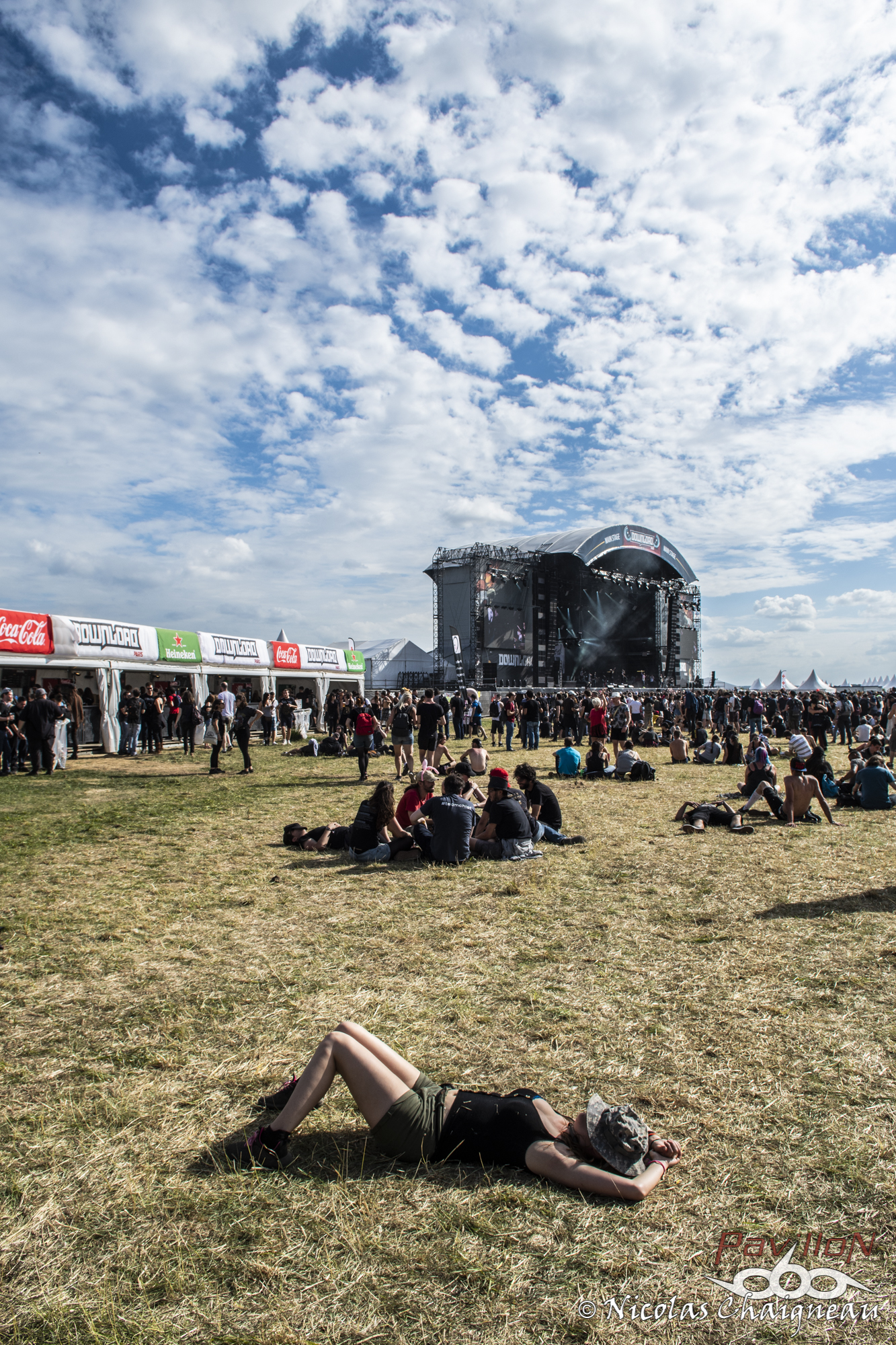Deuxième jour de cette troisième édition du Download Festival France. La température monte, éloignant d’autant les craintes de pluie formulées les semaines précédentes