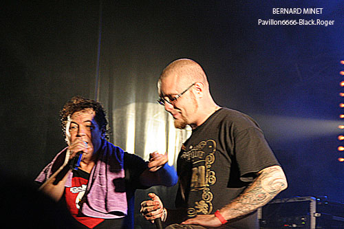 C'est un OVNI qui s'installe sur la scène du Sylak peu avant 22h. Quel rapport avec le rock , me direz-vous ? Aucun a priori. Eh bien si , vous verrez ! L'ancien chanteur des Musclés , complice de Dorothée à la télévision dans les années 80 et 90 , interprétera quelques-uns de ses refrains , repris en choeur par les métalleux poing serré , notamment les trentenaires émus aux larmes !!! C'est Bernard Minet en personne qui chante , presque sexagénaire. Goldorak, Bioman , Albator..., on n'oublie pas les heures passées devant le petit écran quand on avait dix ans, les mélodies qui vous trottent dans la tête. Question de générations. Mais l'émotion sera à son comble lorsque Bernard Minet s'installera à la batterie pour jouer quelques morceaux connus de DEEP PURPLE , AC / DC , LED ZEPPELIN...Autre moment fort , l'irruption sur scène (fausse surprise) de Flo et Romain de DEATHAWAITS , mélange de l'eau et du feu ? ! Oubliés les problèmes techniques qui ont interrompu le spectacle durant de longues minutes. L'artiste ému,homme sensible, a démontré par son registre à prendre au deuxième degré (au moins) et son numéro derrière les fûts qu'il a une certaine ouverture d'esprit et le sens de l'humour.Il nous a confié après sa prestation son plaisir d'avoir été invité à un tel festival et son émotion devant l'accueil qu'il a reçu. Et pour ceux qui en doutaient encore , "les gros durs tatoués , avec leurs chaînes et leurs piercings , amateurs de bière et de décibels" peuvent aussi avoir le coeur tendre. Cliché ou réalité ?