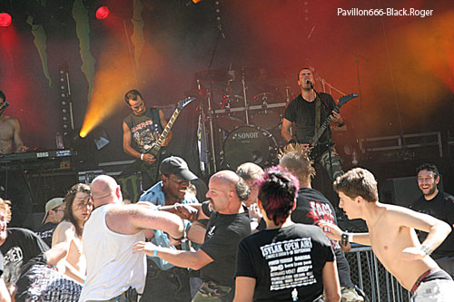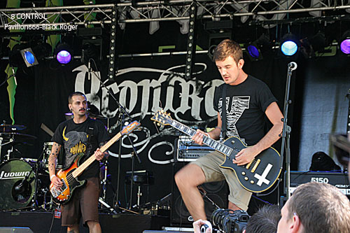 8 CONTROL – (report Black.Roger) Quittons la région Lyonnaise pour le Toulousain avec 8 CONTROL. Avec eux nous repartons sur les terres brûlantes du hardcore/métal se situant grosso-modo entre HATEBREED et MADBALL. Voici donc le paysage sonore qui nous est projeté sur la scène. Tout cela parait bien classique et simple dans le style. Tout irait plutôt bien dans le meilleur des mondes brutal, si nos lascars ne s’amusaient pas à en faire des tonnes avec des samples pas toujours bien compris. Leur prestation semble du coup bien molle et décalée. Alors, se pose une question que nous pouvons lire sur les visages de ceux du public, était-ce un show mal organisé ou une prestation sans réelle motivation, était-ce « du lard ou du cochon ». Pas de réponse, mais ce fut un concert court sans intensité, sans accroche palpable.