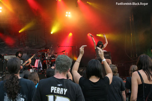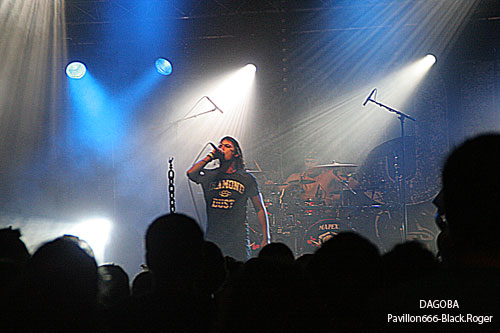 Enfin DAGOBA arriva. Après les Stéphanois les Marseillais. De 23h à minuit , c'est l'un des plus grands groupes de rock metal français , en tout cas l'un des plus connus à l'étranger , tête d'affiche de ce premier numéro du S.O.A., qui logiquement mettra un point final à ces deux journées. DAGOBA,classé "power thrash", écume les scènes de France et de l'étranger depuis plus de 12 ans , on a pu les voir à plusieurs reprises à Lyon ces dernières années , de même que dans divers festivals, au Hellfest 2011 par exemple. Le public reconnaît en particulier le batteur Franky Costanza et le chanteur Shawter. Si le style a évolué au cours des années , la ligne directrice de DAGOBA n'a pas vraiment bougé.C'est pourquoi le terme "power thrash" me semble un peu réducteur. Puissance,énergie,décibels,efficacité, sont des mots clés qui s'appliquent à nos amis de la cité phocéenne. DAGOBA donne toute sa mesure sur scène , même si leurs trois derniers albums "Poséidon" , "Face The Colossus" et "What Hell Is About" sont des oeuvres soignées et agréables à écouter. En cette chaude soirée d'été finissant , dans le cadre champêtre du Sylak Rock Fest, les festivaliers qui tiennent encore debout se défouleront une dernière fois au gros son des fûts de Franky, à la voix unique du fougueux Shawter, aux riffs sauvages de la guitare.Un spectacle grandiose se déroule également sur ce vaste espace situé entre la scène et la console, l'enthousiasme des métalleux passionnés , jamais fatigués, fait plaisir à voir et réconforte ceux et celles qui sont déjà saisis par une sorte de nostalgie alors qu'il ne reste plus que quelques minutes avant la fin du set. Les irréductibles,torse nu, se livrent à un ultime circle-pit , couronnement de cette soirée . Un rappel s'impose , il sera bref. Il est minuit.Tout s'arrête brutalement (Ah! ce mot!) Le Sylak 2011 a vécu.