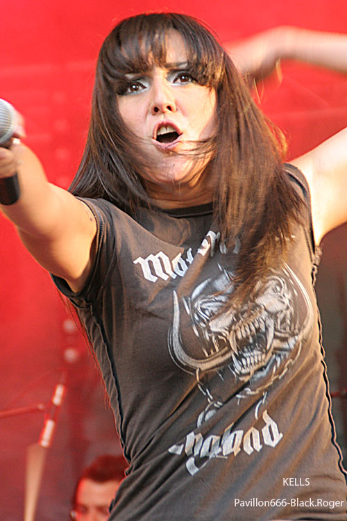 KELLS - (report Black.Roger) Je n’avais pas encore eu l’occasion d’assister à un concert de KELLS et me demandais ce qu’il allait se passer devant nous. Avec mon éternelle méfiance vis-à-vis des groupes métal à chanteuse, je m’attendais au pire. Et bien non, d’entrée de jeu Virginie, la chanteuse fille cachée de Lemmy de MÖTÖRHEAD m’a cloué contre les barrières de sécurité. Voici un groupe lourd et métallique à souhait, une frontwoman qui arrache, un baiser empoisonné envoyé avec un gant de velours, KELLS c’est tout ça à la fois. Energie, présence, variété des compositions, charisme, communication avec le public, tout y est. Et puis c’est le chaud et froid (profitérolles ?), le sucré-salé (ketchup ?) avec le chant tantôt aigu (limite parfois), tantôt éraillé, tantôt crié voire même growlé à certains moments. Evidemment on pense au sudistes de ETHS, car KELLS emprunte une voix alambiquée similaire, mais ici on essaie de marquer ses différences et on y parvient très bien c’est évident. L’ambiance est au rendez-vous devant un public, en nombre maintenant, qui apprécie cette démonstration bien métal avec du punch et de l’efficacité à revendre. Pour ma part ce sera le « coup de cœur » de la soirée avant le trio tête d’affiche qui ne devrait pas faire dans la dentelle non plus.