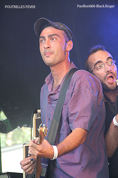 La formation suivante , LES POUTRELLES FEVER , s'appuie sur son chanteur Julien , qui lui non plus, ne cherche pas à dissimuler sa conception des choses. A partir de 18h10 et pour trois quarts d'heure, les Bugistes vont tester ici leur popularité ,à quelques kilomètres de chez eux. Le contraste est saisissant avec le groupe précédent , même si les chanteurs respectifs expriment une certaine révolte.Il y a le fond et la forme. LES POUTRELLES, ce sont six musiciens expérimentés , tous issus de la région , habitués des concerts où ils donnent toute leur mesure , que ce soit en France ,comme au Printemps de Bourges ou en Espagne , en Catalogne , avec un premier concert en 2008 , à Barcelone , devant 2000 personnes. "On est où là ! ?", leur dernier album en date (13 titres) reflète parfaitement l'étendue de leur répertoire et de leur talent. Julien Tissier, au chant et à l'accordéon, initiateur de la Tahoua dans les Bois , festival alternatif qui avait lieu naguère sur les hauteurs d'Ambérieu , prématurément disparu, est un peu le leader du groupe, même s'il s'en défend. Ici et maintenant,selon la célèbre formule, LES POUTRELLES FEVER vont interpréter une série de chansons dans un style "rock manouche , décalé et déjanté" , comme on dit aujourd'hui , dont les textes sans concession s'en prennent aux injustices de la société tout en défendant les causes humanitaires , ils sonnent un peu "anar" ,dans la même veine , avec des nuances , que ceux de feu Mano Solo ou LES TETES RAIDES. Quelques exemples: la police , l'identité nationale, Michel chômeur consommateur etc. Certes,ils ne font pas l'unanimité , mais le Sylak 2011 n'est pas un festival 100% metal. Devant un public relativement nombreux , plus emporté par l'ambiance qu'attentif aux paroles ou sensible à l'humour absurde du chanteur , par ailleurs excellent comédien,clown,satiriste, les ex-PIPE ARRUSTUT créent en utilisant les cuivres et l'accordéon une ambiance ska qui ne déplaît pas aux spectateurs. Nonobstant les applaudissements , LES POUTRELLES préfèrent jouer , on peut le penser, là où ils sont totalement en synergie avec ceux qui les écoutent. Ils iront loin...