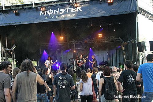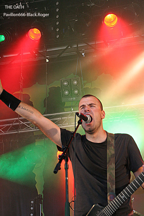 THE OATH – (report Black.Roger) Puis vient le tour de THE OATH. THE OATH de Lyon qui tient depuis déjà pas mal de temps une place particulière avec ses compositions alambiquées où se mélangent black, death, thrash avec un peu de heavy en border line. Tout un programme donc. Frontman passionné, claviériste donnant parfois dans le chant clair (attention limite !), guitariste inventif, batteur précis et enfin nouveau bassiste à signaler. Onze ans après sa formation, THE OATH interpelle de part ses morceaux et nous fait profiter d’une musique parfois hargneuse, originale en diable. Déjà trois album au compteur, et ce n’est pas fini, THE OATH a encore assuré cet après-midi et fait de nouveaux adeptes à sa démarche métallique.