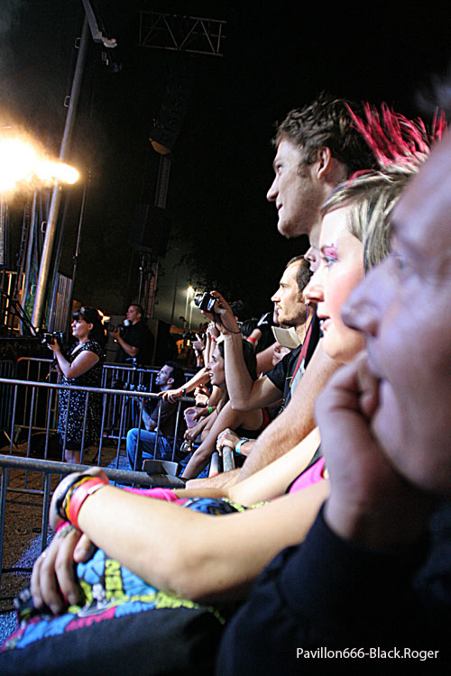 Pour une heure entière , les Toulousains de PUNISH YOURSELF concluront - tête d'affiche oblige - cette première journée par un vrai show son et lumière (noire) , ambiance dance , disco ou psychédélique. Pour simplifier , rangeons-les dans la case "électro-punk indus". Crânes rasés ou crêtes iroquoises , ils jouent en général dans l'obscurité, leurs corps peinturlurés et leurs maquillages fluorescents sont ainsi mis en valeur.PUNISH est typiquement un groupe de scène , axé sur les extravagances visuelles et les jeux de lumières. Le groupe qui tourne depuis 1994 a connu une grande instabilité concernant son line-up. PUNISH YOURSELF a participé à des festivals grand format comme le Sziget à Budapest , les Vieilles Charrues , les Eurockéennes de Belfort , le Hellfest de Clisson etc., chaque fois avec le même succès. Cette formation - rock à part entière , mais entièrement à part - a inventé un véritable concept où l'érotisme et tous les extrêmes ont toute leur place. Le public est enthousiaste , s'agite , danse, crie, remue en tous sens, l'ambiance devient carrément folle lorsque de jeunes personnes légèrement vêtues - ou dévêtues - au devant de la scène, se mettent à envoyer des gerbes d'étincelles crachées par une sorte de meuleuse. Tels des robots ,les Toulousains nous auront gratifiés d'un spectacle grandiose, cadeau pour les yeux et à un degré moindre (affaire de goût) pour les oreilles. Ainsi s'achève cette première soirée. Les hommes de la sécurité ,sans doute fatigués, prient le public d'évacuer rapidement l'enceinte du festival.....A demain pour d'autres aventures.
