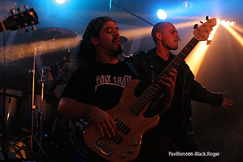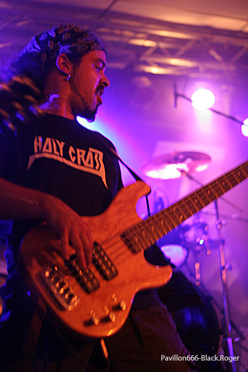 En effet, ne partez pas, nous quittons maintenant le domaine du rock pour celui du heavy-metal avec HOLY CROSS de St-Etienne. La salle se vide quand même pas mal, le métal ne fait pas encore recette à Serpaize en Rock, et puis il est déjà bien tard. Mais, qu’à cela ne tienne, les métalleux présents et les rockers curieux sont suffisamment nombreux pour accueillir comme il se doit le quintette Stéphanois qui ne va pas décevoir son auditoire (qui à dit comme d’habitude ?). Ceux d’HOLY CROSS tiennent la scène c’est une évidence, avec toute la chorégraphie et les clichés inhérents au power-métal de qualité. Pour l’intro, ils ont choisi de reprendre le fameux « the Number Of The Beast » de IRON MAIDEN pour que les nouveaux auditeurs ne soient pas « perdus » en quelque sorte, bonne idée. Le show est carré, précis, en place, le son est bon, les musiciens en forme, que demander de plus. Au milieu des compositions du groupe une reprise de AC/DC ramène le public en terrain connu, et puis, le guitariste cracheur de feu fait son effet, sympathique en diable. Pour terminer ce set, voici le titre emblématique « Holy Cross » et puis rappel tout de même avec le fameux « Aces Of Spades » de MÖTÖRHEAD. La messe heavy-metal est dite, j’espère que beaucoup ont apprécié la prestation qui fut à la hauteur de nos espérances.