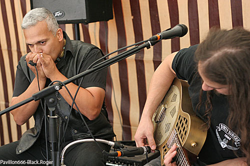 Nous voici donc à Serpaize, village situé à 5 km de Vienne en Isère, ce Samedi 17 Septembre pour la 3ème édition de SERPAIZE EN ROCK, soirée (bien) organisée par l’association Rock’n’Bike United qui fête ses dix ans d’existence. Programme chargé avec du rock, du rock, encore du rock, mais aussi avec un peu de heavy-métal cette année. Les organisateurs n’ont pas fait les choses à moitié. Dès dix sept heures des stands de cuirs, t-shirts et disques, extérieurs à la salle de concert sont installés sous chapiteau. De plus à 18 heures, LITTLE MAN & Nico (from DIESEL DUST) nous offrent un apéritif musical fait de blues et de rock évidemment. Ambiance donc qui ne sera pas perturbée par un court mais violent orage de saison.