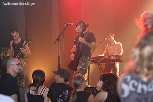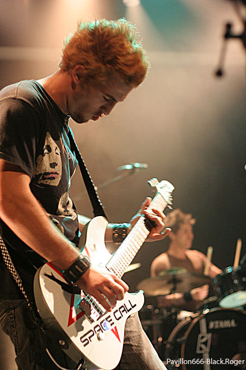 Dès 20h, c'est un quintette assez méconnu dans la région, SPACE CALL, groupe de metal industriel, qui va donner le ton de la soirée. Quelle agréable surprise, car méconnu, SPACE CALL ne le restera pas longtemps. Un chanteur très doué, capable de moduler sa voix en fonction des chansons interprétées (en anglais), un habitué de la scène, son charisme en atteste, entouré de ses quatre collègues et amis, va retenir l'attention du public déjà nombreux pendant 40 minutes. Voix rauque, plus aiguë ou plus claire, des mélodies sombres ou des morceaux plus rapides, tous ces éléments font qu'on a affaire à un subtil mélange des genres, en général réussi et apprécié. SPACE CALL s'est forgé une identité propre, qu'il sait mettre en valeur sur scène. On le constate notamment à la fin du set, lorsque le chanteur - avec sa casquette de policier soviétique, tête de mort en plus - fait reprendre en chœur "Super Star", titre de l'album de 2009, ou à l'occasion d'une séquence instrumentale où chaque musicien apporte sa touche personnelle, ce qui fait de SPACE CALL un groupe atypique et original. Ecoutez leur album sorti le 28 septembre, "Synchrotron", et sachez qu'ils ont déjà eu l'occasion de se faire apprécier, depuis 2006, année de leurs débuts avec le line-up actuel, sur les scènes parisiennes et que plusieurs magazines et webzines français et étrangers se sont intéressés à eux. Par ailleurs, leurs goûts musicaux personnels sont assez éclectiques, d'ALICE IN CHAINS à RAMMSTEIN. On entendra parler de SPACE CALL....
