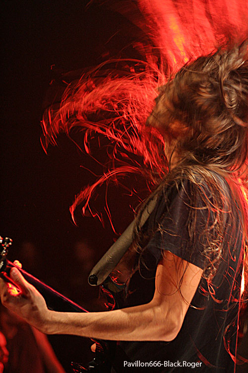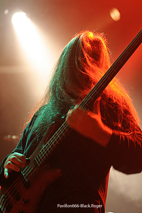 Avec THE OATH, c'est encore un autre concept. Bientôt 23 heures, le temps passe vite, c'est bon signe. Le groupe lyonnais de black-death-thrash dont le frontman Pierre s'adresse régulièrement avec modestie et sensibilité à son public, car THE OATH gagne à chacun de ses concerts de nouveaux adeptes. Le combo a de l'expérience, de l'originalité, notamment avec son claviériste, qui intervient vocalement avec bonheur. Notons aussi la présence de Christian, nouveau bassiste discret, mais efficace. Servi par un chant énergique, hargneux, teinté de growl, THE OATH est aussi capable de nous livrer de belles compositions mélodiques. On retrouve le charme de ces combinaisons et de ces nuances dans les chansons de leur album "Self-Destructed", dont sont issus la plupart des titres de ce soir. Ce groupe ne cède pas à l'autosatisfaction, se remet apparemment sans cesse en question. Nul doute que THE OATH est en train de monter en puissance, plusieurs concerts sont programmés, en attendant le prochain album ?