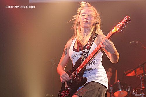 Le groupe suivant est un trio féminin originaire de Vienne et du Nord-Isère. Il s'agit de RAZ' ROCKETTE, trois jeunes femmes, chanteuses et musiciennes de haut niveau, qui viennent de remporter le Tremplin Inter-Ecoles 2011 Rhône-Alpes. Elles chantent en anglais dans un registre que l'on pourrait appeler "pop punk rock", rafraîchissant et "vitaminé", en tout cas agréable à l'oreille. Ces filles, promises à un bel avenir professionnel dans le chant et la musique en général, ont le sens de la rigueur et de l'esthétique. La titulaire de la batterie possède un talent rare, et le trio nous gratifie de rythmiques incisives de toute beauté. Jamais ennuyeuse, car très variée, leur prestation a visiblement plu aux spectateurs qui les ont applaudies des deux mains à l'issue de leur set de 35 minutes. Les filles de RAZ' ROCKETTE jouent et chantent ensemble depuis quatre ans, elles ont à leur actif trois démos et plusieurs participations à de grands concerts ou festivals. Un premier album est prévu pour le printemps 2012. Intelligentes, sympathiques et ambitieuses, elles sauront, n'en doutons pas, se faire connaître sur la scène nationale.