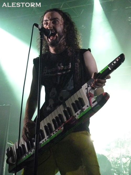 L'intermède du changement de plateau est bienvenu pour un public parti rapidement se réhydrater au bar, voire même parti faire quelques provisions afin d'être prêt à accueillir Alestorm. Les ambassadeurs du « True Scottish Pirate Metal » s'élancent joyeusement sur scène avec leur style enjoué à faire danser un amiral sur jambes de bois. Cependant, le frontman semble moins bondissant qu'à l'accoutumée. Le capitaine aurait-il le mal de mer ? Toujours est-il qu'à mi- parcours, la prestation d'Alestorm s'embarque dans une sorte de linéarité sonore dangereuse. Les titres s'enchainent et se ressemblent, les musiciens peinent pour redonner un coup de fouet à l'ensemble. Heureusement, le groupe rattrape la barre pour s'élancer dans un final nettement plus convaincant, plus engagé et énergique. Les pirates peuvent donc regagner leur taverne satisfaits, bien que les fans de longue date auront pu assister à des shows d'Alestorm un peu plus mordants.