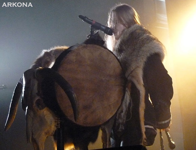 Autant dire qu'avec l'arrivée d'Arkona, l'humidité ambiante ne risque pas de se dissiper. Car les russes sont biens connus pour leurs shows mouvementés et leur chanteuse Masha a tôt fait de confirmer cette réputation. Au revoir les vikings, Arkona transporte l'Aeronef vers d'autres ambiances, sur les terres de Russie. Conduits par leur chanteuse intenable et au timbre de voix si particulier, les russes prouvent (si besoin était) que leur présence sur de nombreuses tournées n'est pas le fruit du hasard. Entre polka endiablée ou chansons plus mystiques, les musiciens combinent leurs meilleurs titres, les tubes comme « Goi rode goi » étant toujours redoutables pour les premiers rangs. Le groupe présente également son jeune multi instrumentiste qui vient assurer toutes les parties flutes/cornemuses, quelques nouveaux ajouts bien intégrés qui viennent enrichir un set déjà varié. Solide et entrainant, Arkona maintient l'atmosphère crée par Trollfest : une serre propice au développement de plantes tropicales. Qui a dit qu'il faisait froid dans le Nord ?
