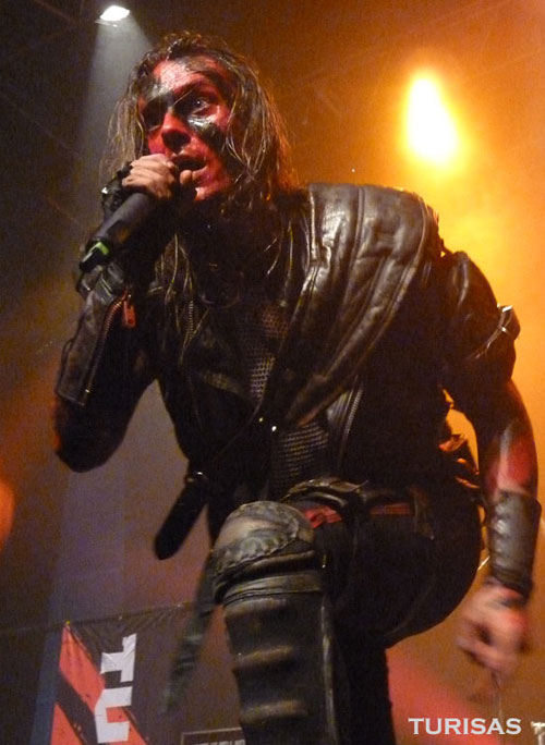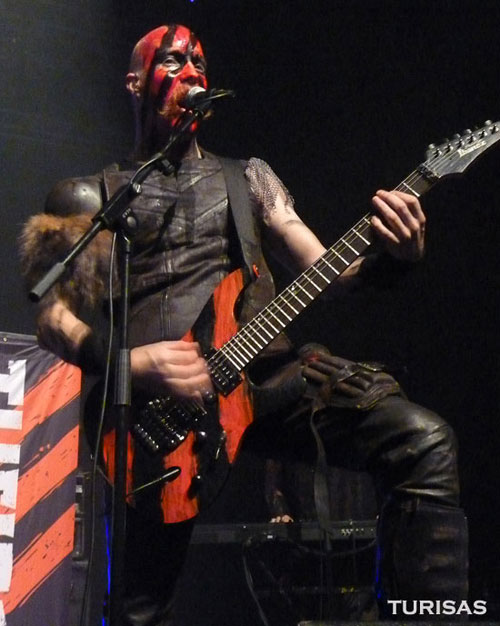 Mais pour beaucoup, le grand moment de la soirée approche. Car si beaucoup de spectateurs ont le visage peint de noir et rouge, ce n'est pas par un culte quelconque au seigneur Sith de Star Wars, mais bien en l'honneur du groupe à suivre. Au tour de Turisas de venir gouter à l'hospitalité lilloise, et à première vue, le chanteur semble apprécier absolument la bière locale, un choix bien légitime. Mais retour à la musique, où il ne faut que quelques notes aux finlandais pour soulever la foule. Pas vraiment folk, malgré la présence d'un violoniste, Turisas développe plus un climat d'ambiances épiques par l'utilisation de force chœurs et synthés et les titres tels que « Stand up and fight » ne manquent pas à faire dresser le poing de toute l'assemblée. Camarades métalleux, n'oubliez pas que si dresser le poing, c'est bien, le déodorant, c'est mieux. Car l'atmosphère est loin de s'être rafraichie ! Mais progressivement, derrière ce masque guerrier, Turisas révèle un visage étonnement beaucoup plus consensuel. De nombreux éléments, comme la voix claire parfois trop théâtrale viennent aplanir les débats. Quelques compositions pourraient également paraître trop propres pour être honnêtes aux oreilles de certains et manque peut être à Turisas un semblant de rage pour être réellement plus crédible. Cependant, ces hymnes taillés sur mesure motivent le public et la reprise de Boney M « Rasputin » enflamme le pit. Très sollicité et acclamé Turisas vient se regrouper pour saluer la foule, un beau geste d'échange à souligner.