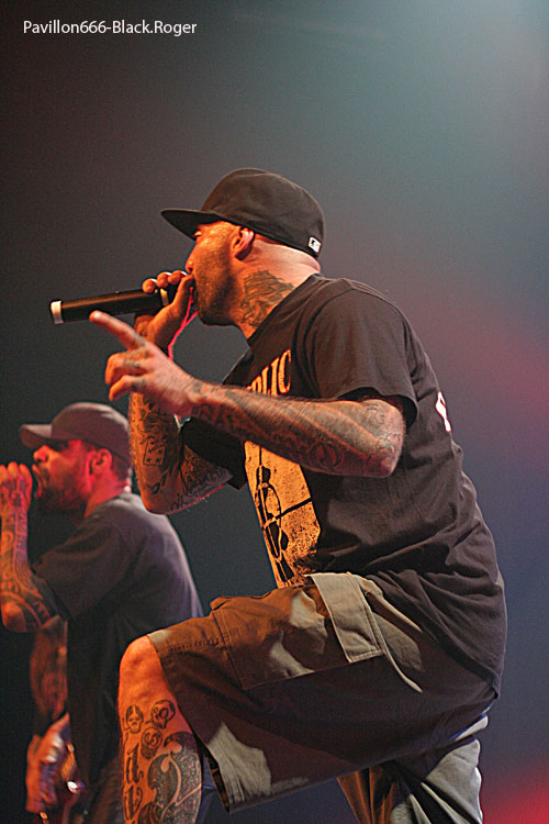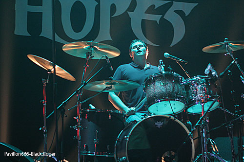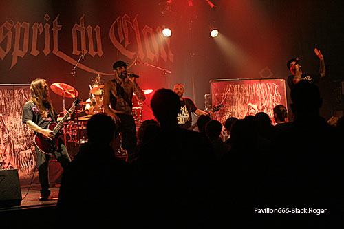 L’ESPRIT DU CLAN s’installe maintenant sur la grande scène en n’oubliant pas de disposer de chaque côté du kit de batterie les grand panneaux représentant l’artwork (réussi) de leur dernier chapitre, le cinquième, intitulé « Drama ». Cet album qui démontre que les parisiens n’ont pas perdu leur mordant depuis dix ans passés à prêcher la bonne parole engagée, enragée, choquante parfois, politique souvent, mais tellement réaliste, pour égratigner nos certitudes et nos cerveaux embués et endormis. Et ce soir, le sextette va nous réveiller encore une fois avec un son à décorner le malin, des obus métal tirés à bout portant et une énergie hardcore flirtant avec le hip-hop. L’hydre bicéphale constituée par les deux « aboyeurs-grogneurs » relance à chaque fois le débat, et derrière, et sur les côtés, les musiciens nous mijotent une sauce piquante thrashcore qui renverse tout et nous oblige à nous « dénnuquer ». Dommage qu’il n’y ait qu’une poignée de jeunes « coreux » devant l’estrade pour accompagner le groupe avec des moulinets bien sentis. Chambéry semble bien froid au goût de l’ESPRIT DU CLAN, « vous êtes morts, bougez-vous un peu ». Mais l’ambiance n’est pas là, le public présent est trop absent physiquement. Alors, il convient de laisser de côté cette mauvaise impression et de savourer, « Atheist Metal », « le Jour des Saigneurs », « Fils de Personne » et le bien nommé « l’Enfer, c’est Le Notre » tiré du chapitre précédent, pour finir avec le « Noir Sidéral », bien vu et surtout bien envoyé. L’ESPRIT DU CLAN a encore une fois frappé très fort pendant 45 minutes et ce fût donc la « quécla dans la chétron » comme diraient nos amis keupons. En ce qui me concerne, après les avoir vu en live très souvent, je considère sans parti prit, que les parisiens placent encore et toujours la barre bien haute lors de leurs prestations, c’est une évidence qu’il sera difficile de contester cet état de fait, amen.