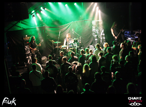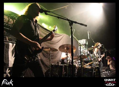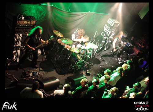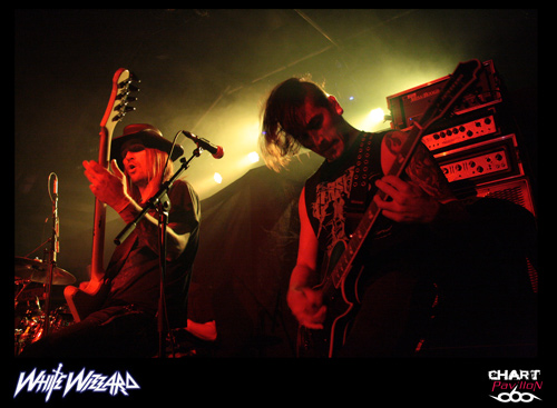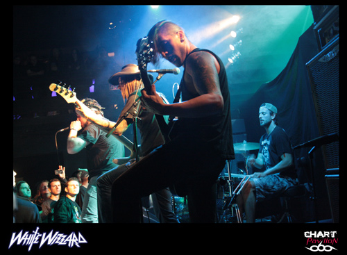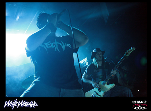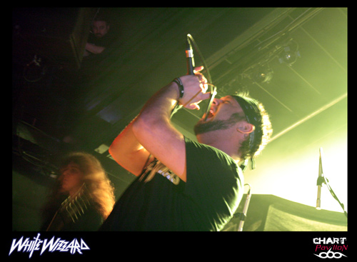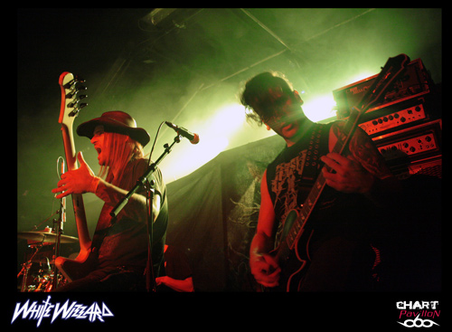 Avant d’accueillir le groupe de heavy américain, il convient selon l’usage de passer un peu de temps avec les groupes de première partie. Ce soir, ce sont FURY UK et WHITE WIZZARD qui respectivement ouvrent la soirée. FURY UK, comme son nom l’indique nous vient du Royaume-Uni. Le groupe officie sous la forme d’un trio. Le début de leur parcours est assez récent mais compte déjà 3 albums depuis 2007 ainsi que des tournées en compagnie de SAXON, BLAZE BAYLEY, MICHAEL SCHENKER… Ouvrir pour ICED EARTH n’est qu’une étape de plus pour ce combo. Le style musical est somme toute assez classique, dans un heavy relativement énergique et efficace. Le côté dépouillé des lights et du son encore assez imparfait rend le set intéressant mais pas inoubliable. Cette première prestation me fait plus penser à une bonne petite tête d’affiche dans un petit club qu’à un groupe prêt à conquérir le monde.