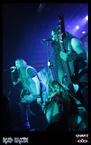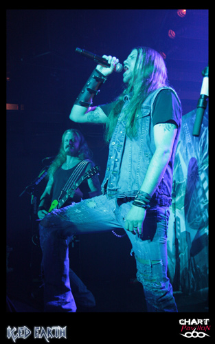 En plein promotion de « Dystopia », on comprend un peu pourquoi le groupe ait pu ressentir une certaine déception en découvrant ce lieu dans lequel il allait devoir se produire. Mais c’est aussi le prix à payer pour être proche de ses fans les plus fervents car à peine le premier morceau lancé, « Dystopia », le public se lance furieusement dans des pogos. L’histoire d’ICED EARTH est longue et pleine de rebondissements. Le line up du groupe n’a jamais été réellement stable. Tous ces musiciens se sont retrouvés au fil du temps autours du pilier central, John SCHAFFER. Cela n’a jamais vraiment nuit à l’impact du groupe mais c’est tout de même assez compliqué à suivre. Après un retour très bien accueilli par les fans et la presse, Matt BARLOW retrouvait sa place de chanteur en 2008. Mais finalement, son retour a été bref, 3 ans. Remplacer un chanteur tel que lui n’est pas une mince affaire. Si Tim « Ripper » OWENS avait fait l’affaire entre 2003 et 2008, il convenait de trouver quelqu’un avec les épaules suffisamment solides pour accomplir la tâche. Et bien, c’est dans le groupe INTO ETERNITY que John SCHAFFER est allé chercher un remplaçant à BARLOW. Il s’agit donc en plus de voir le groupe sur scène, de découvrir ce nouvel arrivant Stu BLOCK.